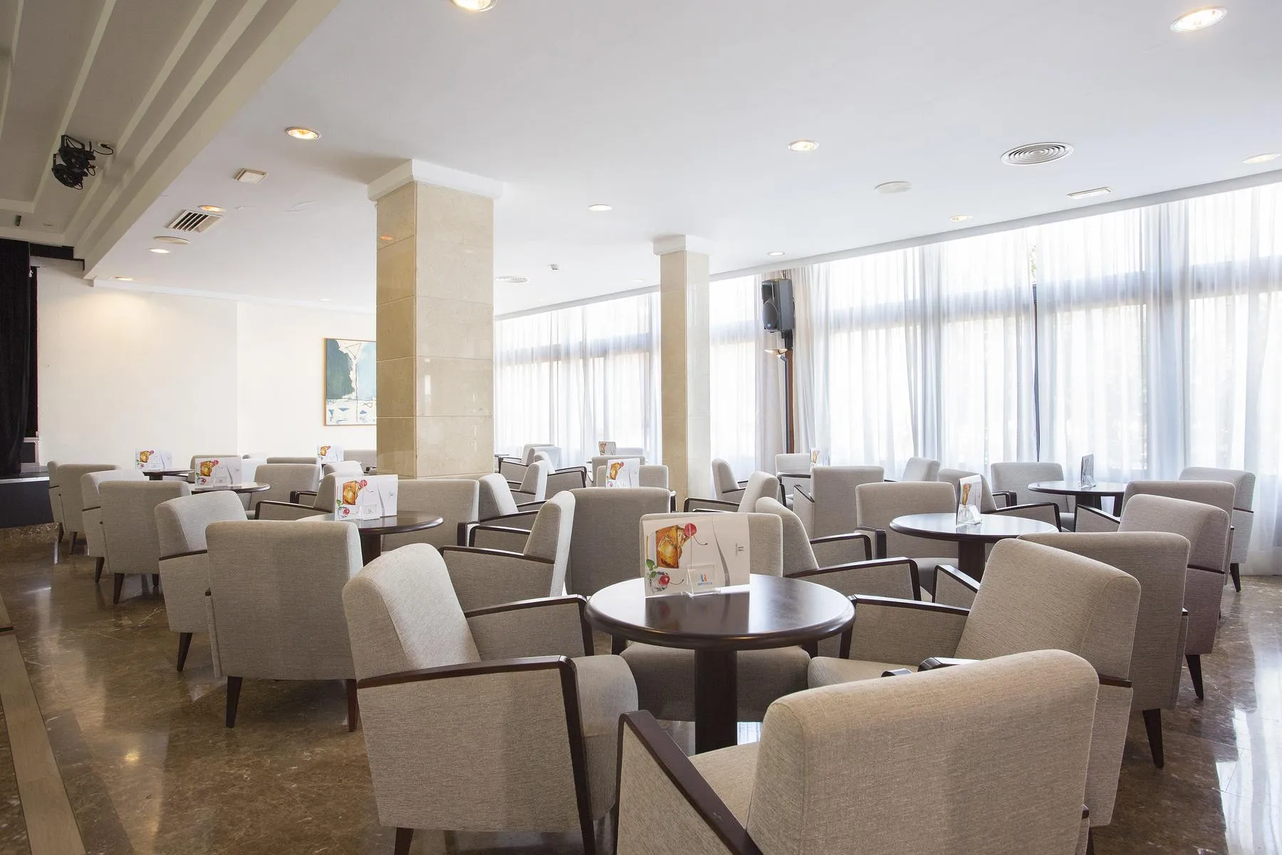 The 7-storey hotel has 187 rooms. It offers its guests a 24h reception (check-in from 14:00, check-out until 12:00), a lobby with bar, 2 lifts, air conditioning, a safe (for a fee) and a money changing facility. For the meals, there is a restaurant (air-conditioned) and a snack bar. You can relax in good company in the hotel bar. WiFi is available for free. For guests dependent on a wheelchair the accommodation provides a barrier-free access and a wheelchair accessible lift. Laundry / ironing service and medical service are available for a fee. Pool: In the outdoor area of the mediterranean-style hotel you will find 2 fresh water pools (approx. 320 m²) with a separate children´s pool (open from May to October). Here, there are sun umbrellas and sun loungers for free available. At the pool bar you can get refreshing beverages.