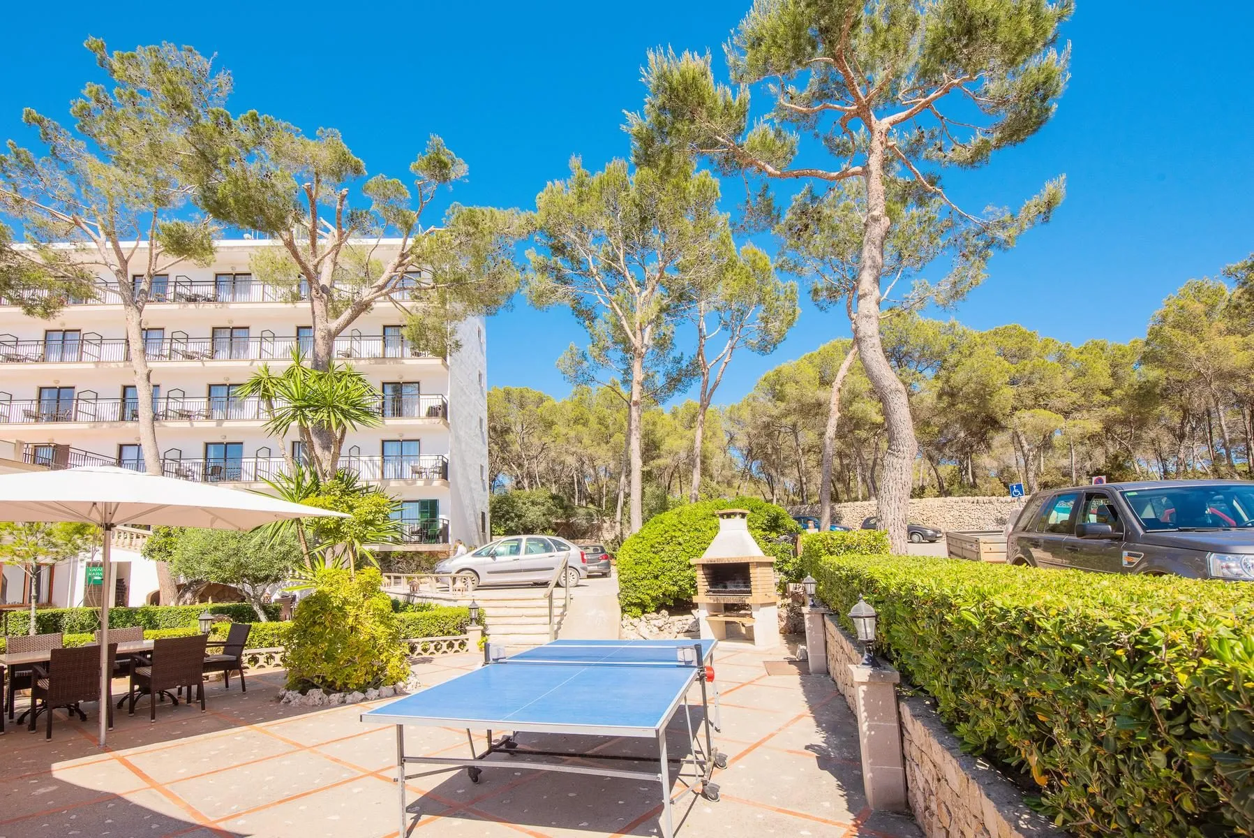 Descriere generală Hotelul Playa Mondrago este situat in Cala Mondragó, direct pe o plajă cu nisip. Pe plajă sunt disponibile umbrele de soare și șezlonguri la un cost suplimentar. Hotelul dispune de serviciu de rentacar. Aeroportul (PMI) se află la aprox. 65 km. Facilități Hotelul dispune de 5 etaje și peste 49 camere repartizate între o clădire principală și o clădire secundară. Acesta oferă oaspeților săi recepție deschisă 24h (check-in de la 14:00, check out până la 11:00), lobby cu bar, lift, aer condiționat, seif (contra cost), chioșc, minimarket, parcare (gratuită) și birou de schimb valutar. Pentru a satisface apetitul aveți la dispoziție în hotel un restaurant cu aer condiționat și un snackbar. Accesul la internet WiFi este disponibil gratuit pentru oaspeții hotelului. Pentru oaspeții cu dizabilități fizice, unitatea de cazare oferă un lift accesibil pentru scaune cu rotile, băi parțial accesibile pentru scaune cu rotile și acces fără bariere. Room service este gratuit. Spălătorie, călcat și serviciul medical sunt disponibile la un cost suplimentar. Piscină În grădinile acestui hotelul decorat în stil mediteranean există 2 piscine cu apă dulce precum și o piscină separată pentru copii (deschise din mai până în octombrie). Acolo sunt disponibile gratuit șezlonguri și umbrele de soare. Catering Mic dejun bufet suedez. Demipensiunea include micul dejun și cina. Sport/Leisure Oferte pentru sport și divertisment: Tenis de masă (contra cost). Există serviciu de închiriere de biciclete. Oferte de wellness: Masaje contra cost. Informații suplimentare Pentru anumite facilități sau activități se pot aplica taxe suplimentare. Unele servicii depind de anotimp și de condițiile climatice locale. Limbi de serviciu: engleză, germană, franceză, italiană și spaniolă. Carduri de credit: American Express, Visa, Diners Club, card EC și Euro/MasterCard. Standard Apartment (Meerblick, Balkon oder Terrasse): Dotate cu living, pat twin, pat pentru bebeluși (contra cost), pardoseală cu gresie, chicinetă, încălzire reglabilă individual, balcon sau terasă, acces la internet (contra cost), seif (contra cost) și TV prin satelit precum și aer condiționat reglabil individual (din mai până în octombrie). Doppel Standard Apartment (Balkon): Cameră cu living, pat twin, pat pentru bebeluși (contra cost), pardoseală cu gresie, chicinetă, încălzire reglabilă individual, balcon, acces la internet (contra cost), seif (contra cost) și TV prin satelit precum și aer condiționat reglabil individual (din mai până în octombrie). Standard Zimmer (Balkon): Dotate cu pat twin, pat pentru bebeluși (contra cost), pardoseală cu gresie, încălzire reglabilă individual, balcon, acces la internet (contra cost), seif (contra cost) și TV prin satelit precum și aer condiționat reglabil individual (din mai până în octombrie). Superior Zimmer (Meerblick, Balkon): Dotate cu pat twin, pat pentru bebeluși (contra cost), pardoseală cu gresie, încălzire reglabilă individual, balcon, acces la internet (contra cost), seif (contra cost) și TV prin satelit precum și aer condiționat reglabil individual (din mai până în octombrie). Doppel Standard Studio (Meerblick, Balkon): Dotate cu pat twin, pat pentru bebeluși (contra cost), pardoseală cu gresie, încălzire reglabilă individual, balcon, acces la internet (contra cost), seif (contra cost) și TV prin satelit precum și aer condiționat reglabil individual (din mai până în octombrie).