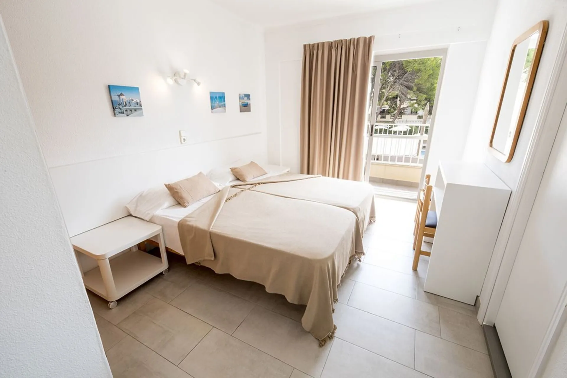 The accommodation Hotel Lliteras is located approximately 600 m from a beach and about 400 m from the sea. The nearest restaurants and bars can be found within 500 m. The old town is around 3 km away. The nearest shops you can reach within around 700 m, a supermarket is around 300 m away. On the beach are beach towels available. The air-conditioned hotel is equipped with a 24h reception (check-in is possible around the clock), a lobby bar, Wi-Fi (for a fee), internet access as well as a TV lounge. In the outdoor area you will find a supervised pool, where sun loungers, sun umbrellas and pool towels are available for free. Your valuables can be stored in the hotel safe. In addition, the hotel Hotel Lliteras is video-monitored 24h a day. For your entertainment, the hotel offers a library/reading room. For very young guests, cots can also be provided. If necessary, you can contact the medical centre at any time. If you want to explore the holiday region, you can use the car and motorbike rental service close to the hotel (extra fee). At the reception, tickets are offered for excursions in the area. In your hotel, a lot of focus is placed on sustainability. This includes the hotel`s own recycling bins, organic food and ecological meals and environmentally-friendly cleaning. Euro/Master Card, Visa and EC cards are accepted as means of payment. Due to its barrier-free facilities , such as barrier-free entrances, wheelchair accessible rooms and wheelchair-accessible bathrooms, the hotel is also suitable for wheelchair users. Catering As catering services the hotel offers breakfast only and self-catering. Breakfast is offered continental or from the buffet. For the meals, there are a buffet restaurant with terrace (vegetarian dishes) and the cafeteria, a 24h snackbar as well as the pool bar. The drinks menu of the hotel includes water, soft drinks, coffee and tea, beer and wine. Distances