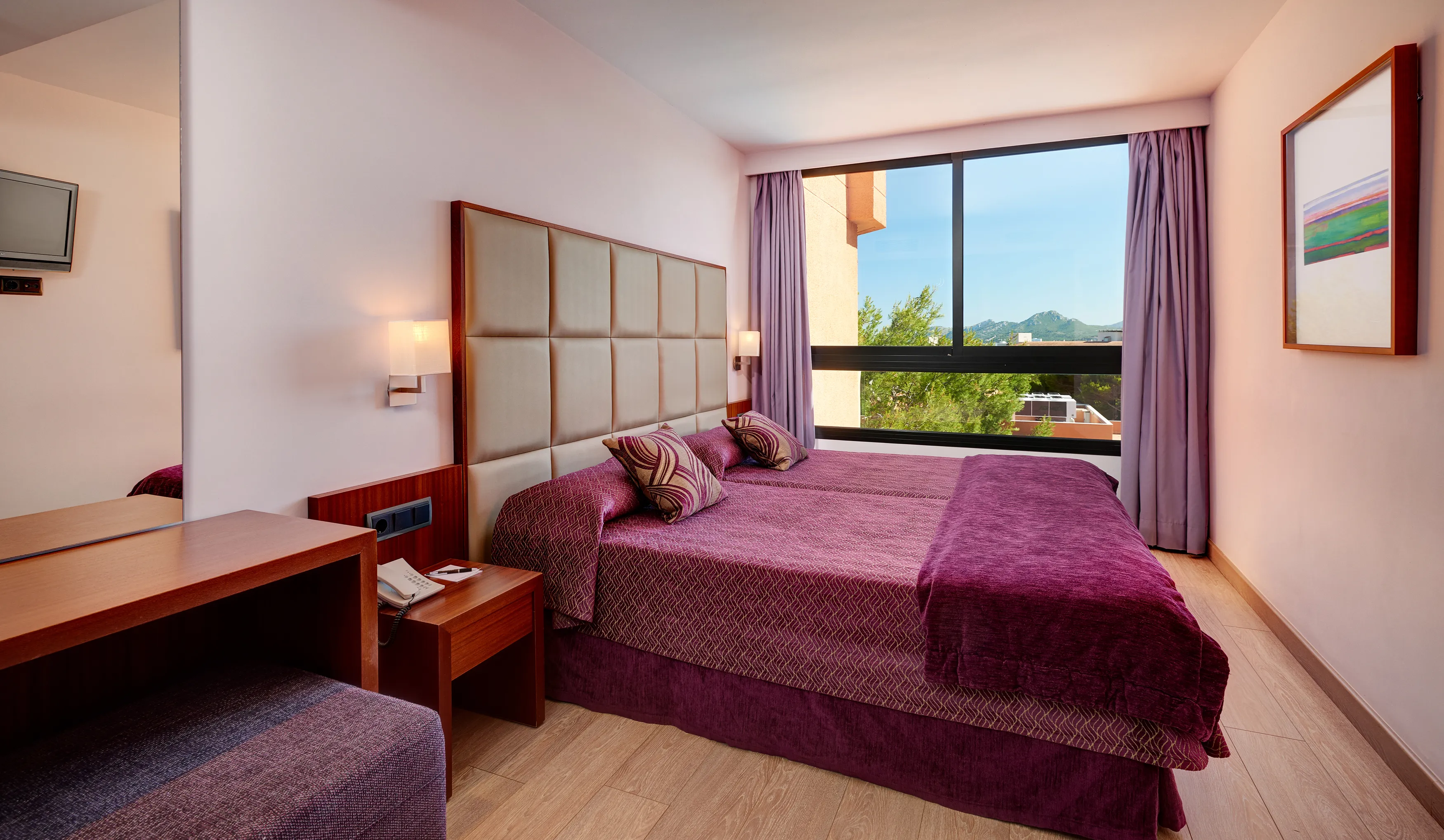 The newly upgraded 4 star Protur Turó Pins Hotel is just a ten minute stroll from the unique Cala Agulla beach. In this hotel in Cala Ratjada guests can enjoy a variety of options to help relax them and unwind during their stay in Majorca. The decoration throughout the hotel has been carefully chosen, taking into account even the smallest detail, thus guaranteeing a perfect stay. The spacious junior suites offer guests all they may need to enjoy a restful stay, making sure that they are made to feel comfortable from the very start of their stay. It's ideal location on a mountain incline allows guests to take advantage of the tranquility of its outdoor pool, set in well tended gardens in an atmosphere of complete relaxation that is the tonic throughout the hotel. True relaxation at the Protur Turó Pins Hotel comes in the form the Biomar Spa Turó, a place that transmits tranquility & peace from the moment you go inside. The hydro massage pool with jacuzzi and water shoots will help you relax every muscle of your body. And not forgetting the therapists of the Biomar Spa whose expert hands work wonders and in both the treatments & massages on offer at the SPA, they will take care and pamper you, giving a whole new dimension to the meaning of well being and relaxation. Location:1989 Year of construction; 2012 Year of most recent renovation; 136 Total number of rooms; 3 Number of floors (main building); 116 Junior suites; 18 Suites; 6 Disability-friendly rooms Hotel type:hotel Methods of payment:American Express; MasterCard; Visa; Visa Electrón Distances (in meters):City centre (200); Nearest Bus / Metro Stop (30000); Beach (200); Golf course (500) Facilities:Wheelchair-accessible; Car park; 24-hour reception; Check-in hour; Check-out hour; Mobile phone coverage; Wi-fi; Car hire (Extra Fee); Airport Shuttle; Room service; Laundry service; Medical service; Bicycle hire service; Air conditioning in public areas; Hotel safe; Currency exchange facilities; Cloakroom; Lift access; Garden; Terrace; Bicycle storage; Partner’s bike shop/workshop; Concierge; Sun terrace; Gym; Luggage room; Clothes dryer Catering:Café; Bar; Restaurant; Non-smoking area; Highchairs; Poolside snack bar; Swim-up bar; Air conditioning in Restaurant Business:Conference room Entertainment:1 Indoor freshwater pool; 1 Outdoor freshwater pool; Sun loungers; Parasols; Children playground; Kids’ club; Entertainment programme for adults; Entertainment programme for children; TV lounge; Pub Health:Sauna; Steam bath; Hot tub; Turkish bath (hamam); Solarium ; Massage; Spa treatments