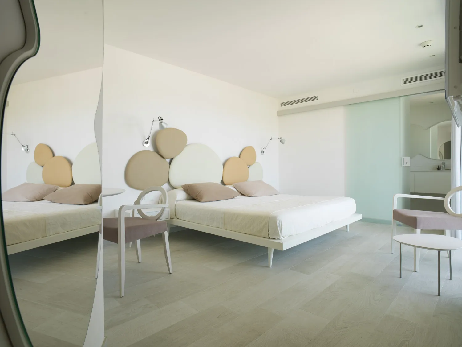 It is a small design hotel, located directly on the sea front, separated only by a walk. Located on the outskirts of Cala Ratjada, just 10 minutes from downtown and the fishing port, next to the Playa de Son Moll. In the vicinity are shops, bars and restaurants Location:2014 Year of construction; 125 Total number of rooms; 11 Number of floors (main building); 14 Single rooms; 99 Double rooms; 8 Junior suites; 1 Suites; 3 Disability-friendly rooms Hotel type:hotel Methods of payment:American Express; EC; MasterCard; Visa; Maestro; Visa Electrón Distances (in meters):City centre (500); Bus/Train station (1700); Nearest Bus / Metro Stop (40); Airport (80000); Harbour (700); Beach (20); Golf course (4000) Facilities:Wheelchair-accessible; Car park; 24-hour reception; Check-in hour; Check-out hour; Mobile phone coverage; Wi-fi (Extra Fee); Car hire (Extra Fee); Airport Shuttle; Room service (Extra Fee); Laundry service (Extra Fee); Medical service (Extra Fee); Bicycle hire service (Extra Fee); Multilingual staff; Bellboy service; Air conditioning in public areas; Currency exchange facilities; Cloakroom; Lift access; Shop; Terrace; Concierge; Sun terrace; Gym; Golf desk (Extra Fee); Luggage room; Clothes dryer Catering:Café; Bar; 2 Restaurant; Non-smoking area; Smoking area; Poolside snack bar; Show cooking; Air conditioning in Restaurant Business:Business centre Entertainment:1 Indoor freshwater pool; 1 Outdoor freshwater pool; Sun loungers; Parasols Health:Sauna; Steam bath; Turkish bath (hamam); Massage (Extra Fee); Spa treatments (Extra Fee); Beauty salon (Extra Fee); Spa centre (Extra Fee)