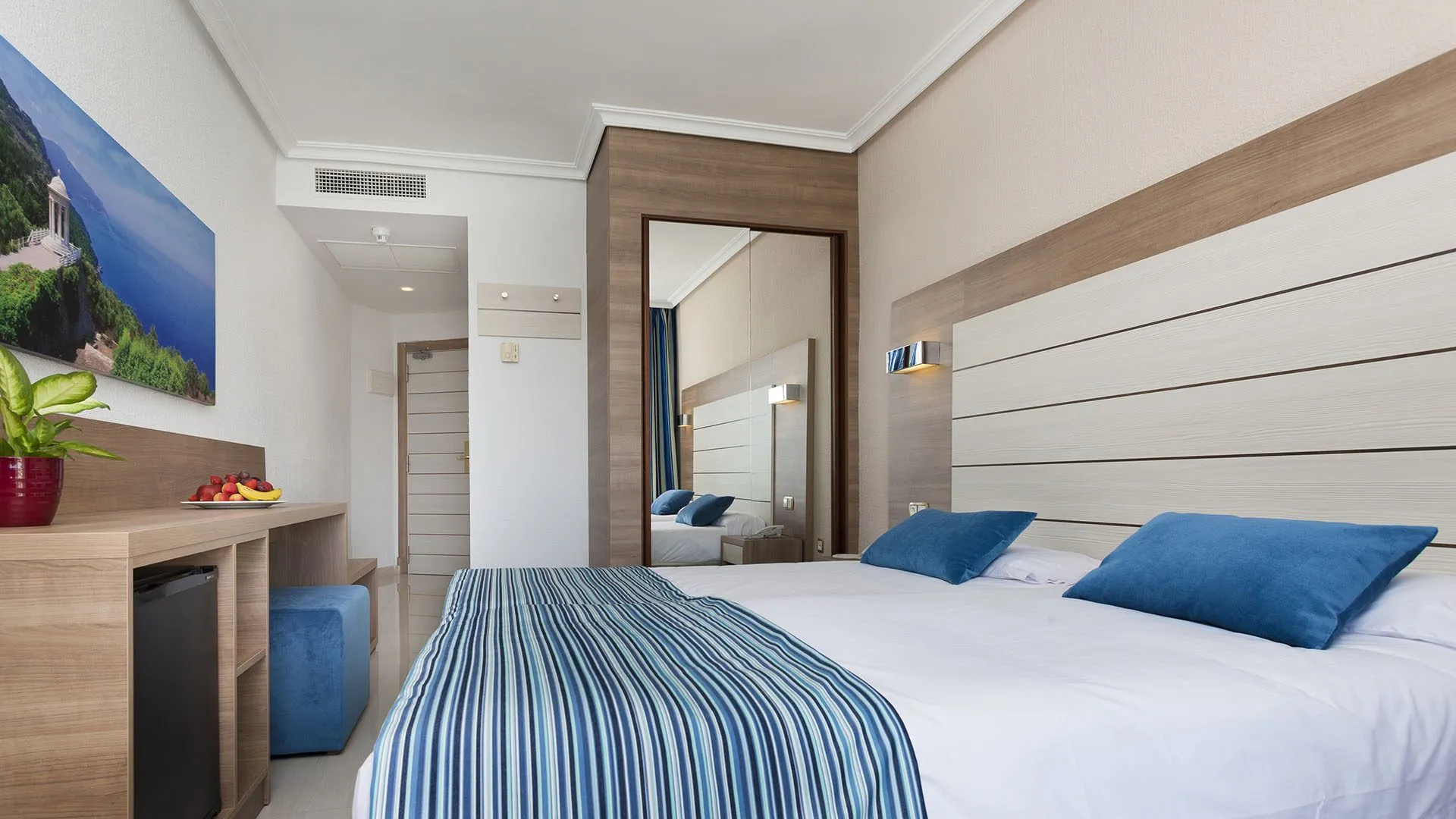 The hotel Hotel Globales America is located approximately 50 m from a beach. The hotel has a 24h reception, a lobby bar, Wi-Fi as well as 4 lifts. In the outdoor area you will find a garden as well as a pool that is open seasonally, where sun loungers and sun umbrellas are available for free. For children there is also a separate children's pool. Furthermore, outside you can find a terrace. For the young hotel guests there is a playground. There is also a laundry service available at an additional cost to customers. If necessary, you can contact the medical centre (for a fee). The energy supply is 220 Volts. If you want to explore the holiday region, you can use the car rental service close to the hotel (extra fee). At the reception, tickets are offered for excursions in the area. Euro/Master Card and Visa are accepted as means of payment. Catering Breakfast is offered from the buffet. Lunch and dinner are also served from the buffet. For the meals, there are a restaurant and several bars as well as the pool bar. The drinks menu of the hotel includes water, soft drinks and wine. Distances