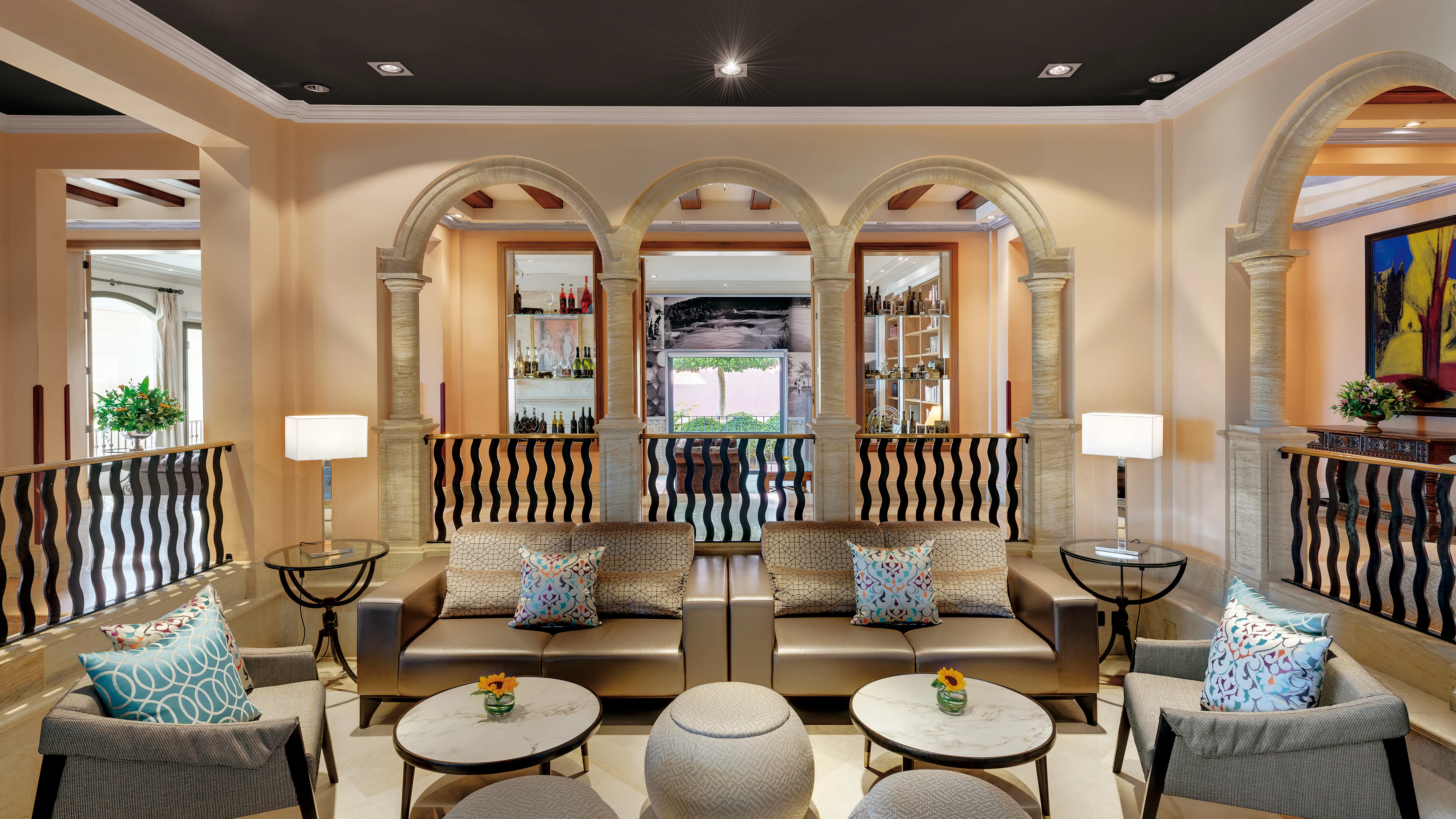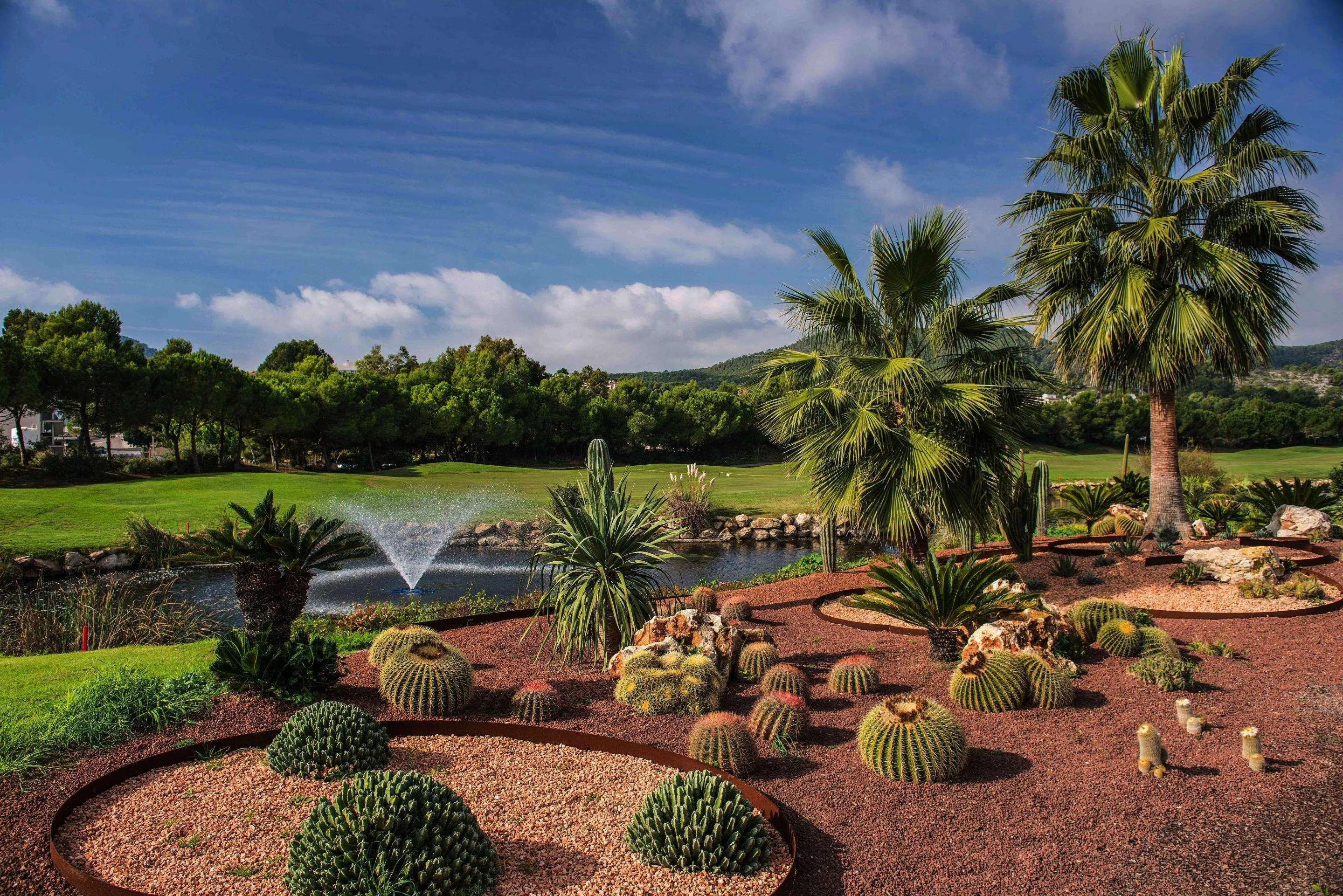 It is a quiet and luxurious resort, located in the bay of Camp de Mar, close to the Port of Andratx and only 300 metres away from the sandy beach of Camp de Mar. The hotel building, inspired by the traditional Majorcan Country estates, is surrounded by the famous 18-hole golf course “Golf de Andratx”. The hotel offers exclusive accommodation in a stylish Mediterranean taste in all of its room types, overlooking either golf course, the pool or the sea side. Location:2011 Year of most recent renovation; 164 Total number of rooms; 3 Number of floors (main building); 160 Double rooms; 2 Suites; 2 Disability-friendly rooms Hotel type:hotel Methods of payment:MasterCard; Visa Distances (in meters):City centre (200); Nearest Bus / Metro Stop (250); Airport (25000); Beach (250); Golf course (100) Room facilities (Standard room):45 Room size (sqm); 1 Number of bedrooms; Disability-friendly bathroom; Wi-fi; Internet access; Balcony; Wheelchair-accessible; Smoking rooms Facilities:Wheelchair-accessible; Car park (Extra Fee); Garage (Extra Fee); 24-hour reception; Check-in hour; Check-out hour; Late Check-out (Extra Fee); Mobile phone coverage; Wi-fi; Car hire (Extra Fee); Transfer service (Extra Fee); Secure parking (Extra Fee); Valet parking (Extra Fee); Airport Shuttle; Room service (Extra Fee); Laundry service (Extra Fee); Medical service (Extra Fee); Bicycle hire service (Extra Fee); Babysitting service; Multilingual staff; Bellboy service; Air conditioning in public areas; Fireplace; Hotel safe; Currency exchange facilities; Cloakroom; Lift access; Newspaper stand; Garden; Terrace; Bicycle storage; Hotel’s own bike shop/workshop; Sun terrace; Gym; Newspapers; Golf desk; Luggage room; Dining area; Clothes dryer; Grill/BBQ; Library; Bikes available Catering:Café; Bar; 3 Restaurant; Poolside snack bar; Air conditioning in Restaurant; Breakfast room Business:Conference room; 3 Meeting room; Photocopier (Extra Fee); Audio-visual equipment rental (Extra Fee); Fax (Extra Fee) Entertainment:1 Indoor freshwater pool; 1 Outdoor freshwater pool; Sun loungers; Parasols; Children playground; Kids’ club; TV lounge; Pub Health:Sauna; Steam bath; Turkish bath (hamam); Massage (Extra Fee); Spa treatments (Extra Fee); Hairdressing salon; Beauty salon (Extra Fee); Spa centre