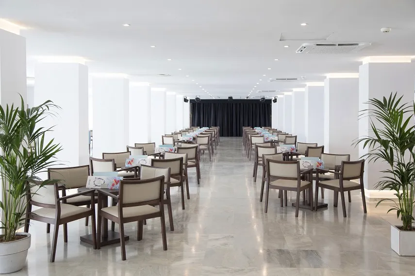 The hotel Alua LEO is located approximately 100 m from a beach. There is a shuttle service between the hotel and the airport. The air-conditioned hotel is equipped with a 24h reception, a lobby bar, Wi-Fi (for a fee), a lift as well as parking spaces (for a fee). In the outdoor area you will find a garden as well as a pool that is open seasonally, where you can rent pool towels for a fee and sun loungers and sun umbrellas are available for free. There is also a children's pool. Furthermore, outside you can find a sun terrace. Your valuables can be stored in the hotel safe (extra fee). For very young guests, cots can also be provided. If necessary, you can contact the medical centre. For conventions and other business meetings, the hotel offers a conference area. If you want to explore the holiday region, you can use the car rental service close to the hotel (extra fee). At the hotel reception, tickets are offered for excursions in the area. Pets like cats and dogs are allowed in the hotel (for a fee). Catering As catering services the hotel offers half board, full board and breakfast only. Breakfast is offered from the buffet. For the meals, there are a buffet restaurant with terrace and the cafeteria as well as the pool bar. Sports & Leisure To keep your fitness up on holiday, there is a gym for guests to use. A minigolf course offers fun for the family. There is also the option to play billiards. Also darts is offered at the hotel. For cyclists there is a bicycle rental as well as a bicycle workshop. In terms of adult entertainment, shows are organized in the evening. Additional information The accommodation has a total of 285 rooms.