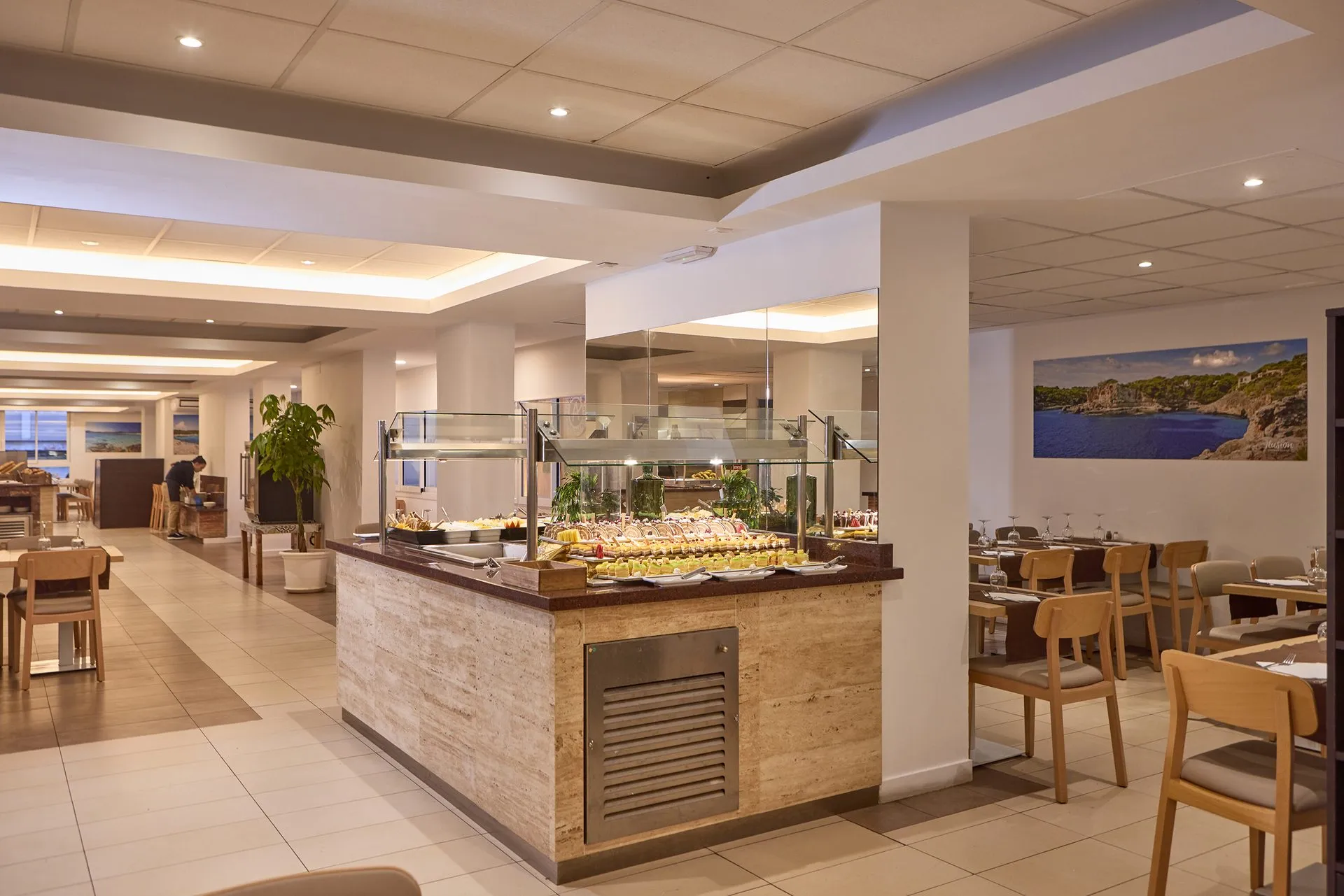 The accommodation Hotel Ilusion Calma is located approximately 250 m from a public sandy beach. The nearest restaurants and bars can be reached in a few minutes on foot. The old town is around 10 km away. You can find a range of shops and a supermarket directly on your doorstep. Nearby there is a disco which offers entertainment in high season. The beach is patrolled by a lifeguard. Directly next to the beach there is a promenade where you can take leisurely walks. The seasonally air-conditioned, GPS-verified hotel has a 24h reception (check-in is possible around the clock), a lounge, a lobby bar, Wi-Fi, internet access, 2 lifts, a jacuzzi, showers and changing rooms as well as a first aid kit. In the outdoor area of the property you will find a garden as well as a supervised pool, where sun loungers, sun umbrellas and pool towels are available for free. For children there is also a separate children's pool with a non-swimming area. Furthermore, outside you can find a terrace. Inside the hotel you can use a heated indoor pool. You can store your valuables in the safe, and your luggage in the hotel`s storage room. In addition, the hotel Hotel Ilusion Calma is video-monitored 24h a day. For very young guests, kid`s chairs, highchairs and cots can be provided. For the smallest children prams can be rented in the hotel. There is also a laundry and ironing service. Ironing equipment can also be borrowed at the hotel. For your comfort there is a concierge service. Guests at the accommodation can get a wake-up call from the hotel personnel. The energy supply is 220 Volts. At the hotel reception, tickets are offered for excursions in the area. Pets are only allowed in the hotel with a maximum weight of 5 kg. For guests on their honeymoon, the hotel has special offers such as champagne or a basket of fruit in the room. In your hotel, a lot of focus is placed on sustainability. This includes the hotel`s own recycling bins, the provision of soap and shampoo dispensers, organic food and ecological meals and environmentally-friendly cleaning. That is why the hotel Hotel Ilusion Calma was also awarded a sustainability certificate. Euro/Master Card, Visa and EC cards are accepted as means of payment. Due to its barrier-free facilities , such as a sliding door in the entrance area, barrier-free entrances, wheelchair accessible rooms, a wheelchair accessible lift, a handrail in the elevator and wheelchair-accessible bathrooms, the hotel is also suitable for wheelchair users. Catering As catering services the hotel offers all-inclusive and full board. Breakfast is offered from the buffet. Lunch and dinner are also served from the buffet with starters, salads and desserts. Half board includes breakfast and dinner. When booking half board plus, breakfast, lunch and beverages during meals are included. For the meals, there are a buffet restaurant (Mediterranean, calorie-reduced and gluten-free dishes) and a bar, the cafeteria as well as the pool bar. The drinks menu of the hotel includes soft drinks, coffee and tea, beer and wine. Appropriate clothing is required for lunch and dinner. Distances
