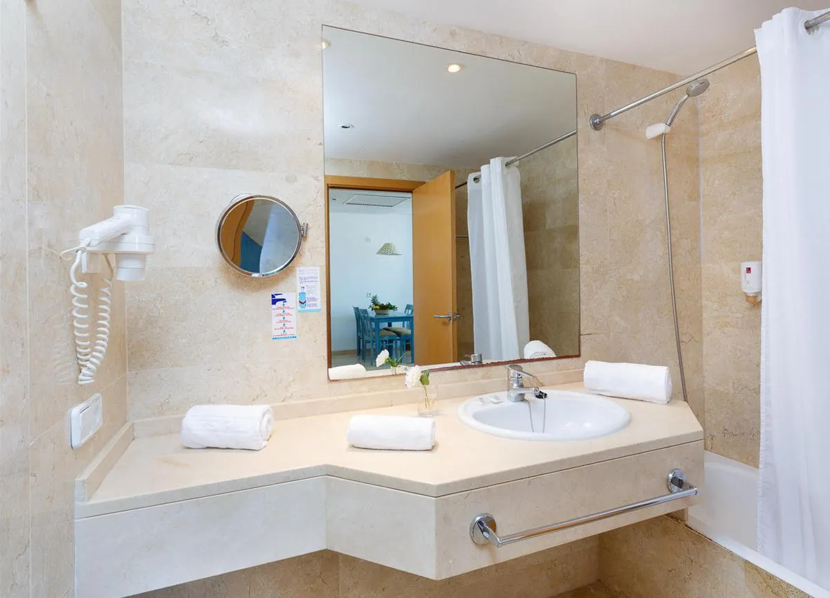 Descriere generală Hotelul Dunes Platja Aph este foarte aproape de cele mai apropiate baruri și restaurante. Cea mai apropiată plajă, o plajă cu nisip se află la doar câțiva metri distanță. Pe plajă sunt disponibile șezlonguri și umbrele de soare la un cost suplimentar. Locul de cazare se află la doar câțiva metri de centrul turistic al stațiunii. Orașul Port De Alcudia este la aprox. 10 km (Pollensa cca. 20 km, Palmde De Mallorca cca. 60 km). Chiar lângă hotel sunt diverse magazine și un magazin alimentar. O discotecă aflată la aprox. 300 m vă invită la dans. Următoarele atracții pot fi accesate de la hotel: PN S'Albufera (cca. 6 km), Roman Ruins Alcudia (cca. 12 km), Hidropark (cca. 12 km) și Necropolis Son Real (cca. 10 km). Hotelul dispune de serviciu de rentacar. De asemenea, aveți în apropiere o stație de autobuz (cca. 20 m) cea ce vă garantează mobilitatea pe insulă. Aeroportul (PMI) se află la aprox. 65 km. Facilități Hotelul dispune de 3 etaje și peste 47 camere. Acesta oferă oaspeților săi recepție deschisă 24h (check-in de la 12:00, check out până la 12:00), lobby, 2 lifturi, aer condiționat, seif (contra cost) și parcare (gratuită). Pentru a satisface apetitul vă stau la dispoziție un restaurant cu aer condiționat și un snackbar. Accesul la internet WiFi este disponibil gratuit pentru oaspeții hotelului. Pentru oaspeții cu dizabilități fizice, unitatea de cazare oferă un lift accesibil pentru scaune cu rotile și acces fără bariere. Călcat este gratuit. Spălătorie și serviciul medical sunt disponibile la un cost suplimentar. Este posibil să se perceapă un cost suplimentar pentru room service. Piscină În grădinile acestui hotelul decorat în stil mediteranean există o piscină cu apă dulce precum și o piscină pentru copii integrată în piscina principală (deschisă din aprilie până în octombrie). Acolo sunt disponibile gratuit șezlonguri și umbrele de soare. Un bar lângă piscină oferă oaspeților băuturi răcoritoare. Catering Mic dejun bufet suedez. Demipensiunea include micul dejun și cina. Sport/Leisure Oferte pentru sport și divertisment: Tenis de masă (contra cost), fitness și biliard (contra cost). La cca. 15 km de hotel este un teren de golf. Oferte de wellness: Zonă de spa și masaje contra cost. Copiii vor găsi un loc de joacă în exteriorul hotelului. Îngrijirea copiilor: babysitting (contra cost). Informații suplimentare Pentru anumite facilități sau activități se pot aplica taxe suplimentare. Unele servicii depind de anotimp și de condițiile climatice locale. Limbi de serviciu: engleză, germană și spaniolă. Carduri de credit: Euro/MasterCard și Visa. Standard Apartment (Meerblick, Balkon oder Terrasse): Dotate cu pat twin, o canapea extensibilă ca pat suplimentar, pat pentru bebeluși (gratuit), pardoseală cu gresie, chicinetă, încălzire controlată centralizat, ceainic (gratuit), balcon sau terasă, acces la internet (gratuit), seif (contra cost) și TV prin satelit precum și aer condiționat controlat central. Baie cu cadă. Standard Studio (Meerblick, Balkon oder Terrasse): Cameră cu pat twin, o canapea extensibilă ca pat suplimentar, pat pentru bebeluși (gratuit), pardoseală cu gresie, chicinetă, încălzire controlată centralizat, ceainic (gratuit), balcon sau terasă, acces la internet (gratuit), seif (contra cost) și TV prin satelit precum și aer condiționat controlat central. Baie cu cadă.