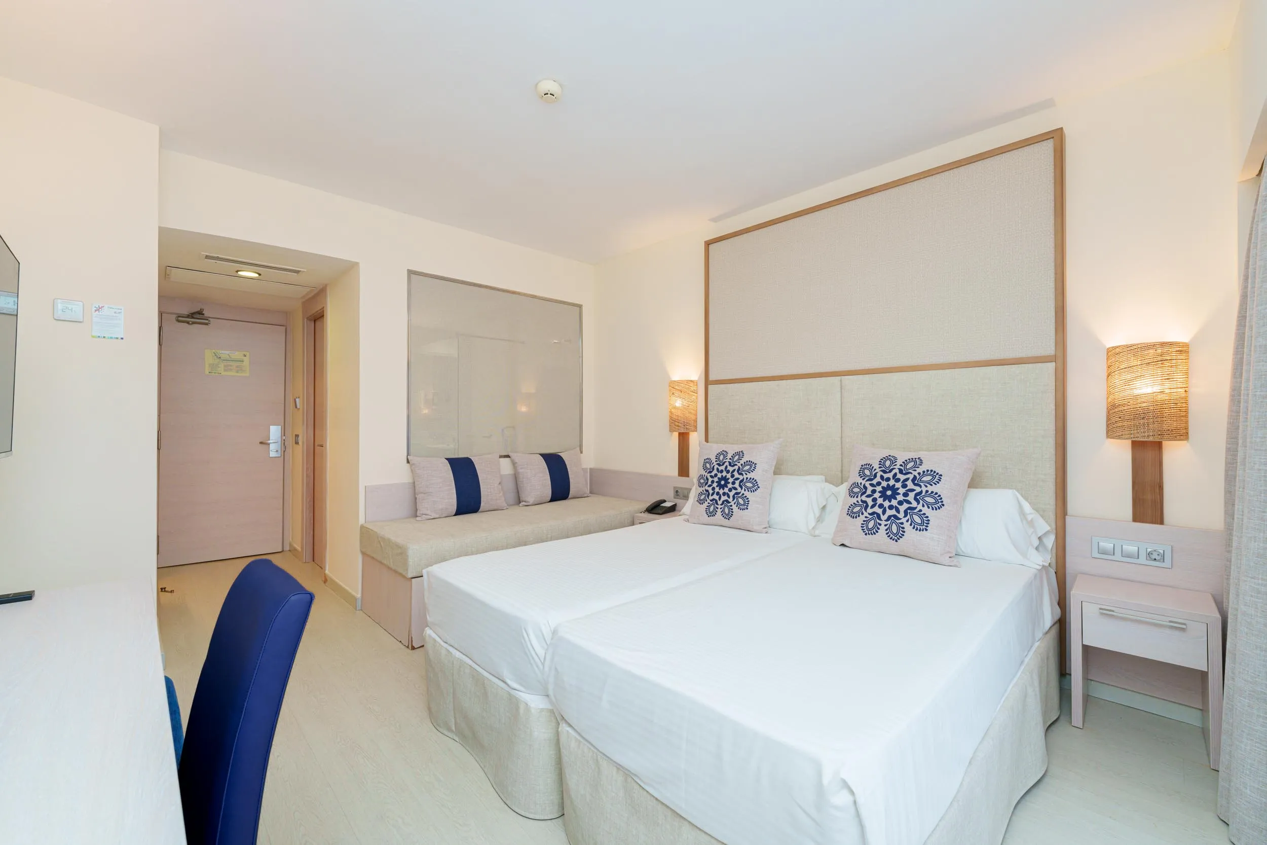 This hotel is situated only 80 metres from the beach, with access to public transport and only a few minutes walk from the town centre, where there are numerous shops, bars, restaurants and nightclubs. The hotel is air-conditioned and has a total of 211 rooms and 22 flats in a building in front of the hotel. Facilities include a spa, a restaurant with high chairs for children, a games and TV room, and a bicycle rental and storage facility. There is also a children's playground and a kids' club. Wi-Fi access is also available. The rooms and flats have en suite bathrooms and other basic amenities. Outside, there are two swimming pools. One has a children's area and jacuzzi, while the other is a heated semi-Olympic pool. Guests can enjoy various treatments at the hotel's spa or take advantage of the many activities available. Location:2024 Year of most recent renovation; 233 Total number of rooms; 5 Number of floors (main building); 1 Annexe (s); 1 Number of floors (annexe); 21 Single rooms; 182 Double rooms; 22 Apartments; 8 Disability-friendly rooms Hotel type:hotel Methods of payment:EC; MasterCard; Visa; Maestro; Visa Electrón; Euro 6000 Distances (in meters):Beach (80); Golf course (12000) Room facilities (Standard room):1 Bathroom; Shower; Hairdryer; Toiletries; Make-up mirror; Direct dial telephone; TV; 220V power supply; Mini fridge; Tea and coffee making facilities ; Safe (Extra Fee); Wake-up service; Smoking rooms; Cot on demand Facilities:Wheelchair-accessible; Car park; 24-hour reception; Check-in hour; Check-out hour; Late Check-out (Extra Fee); Wired Internet (Extra Fee); Wi-fi; Car hire (Extra Fee); Transfer service (Extra Fee); Airport Shuttle (Extra Fee); Laundry service; Launderette; Medical service (Extra Fee); Bicycle hire service (Extra Fee); Multilingual staff; Air conditioning in public areas; Hotel safe (Extra Fee); Cloakroom; Lift access; Garden; Terrace; Bicycle storage; Partner’s bike shop/workshop (Extra Fee); Concierge; Sun terrace; Gym; Newspapers; Luggage room; 1 Dining area; 1 Clothes dryer; Electric kettle; Towels and bed linen Catering:Café; Bar; 1 Restaurant; Non-smoking area; Show cooking; Air conditioning in Restaurant Business:1 Conference room; 1 Meeting room; Projector; Printer (Extra Fee) Entertainment:2 Outdoor freshwater pool; 1 Children’s swimming area; Sun loungers; Parasols; Children playground; Kids’ club; Entertainment programme for adults; Entertainment programme for children; TV lounge; Game room Health:Sauna; Steam bath; Hot tub; Turkish bath (hamam); Solarium ; Massage (Extra Fee); Spa treatments; Spa centre Green Programmes - Worldwide:Travelife for Accommodation