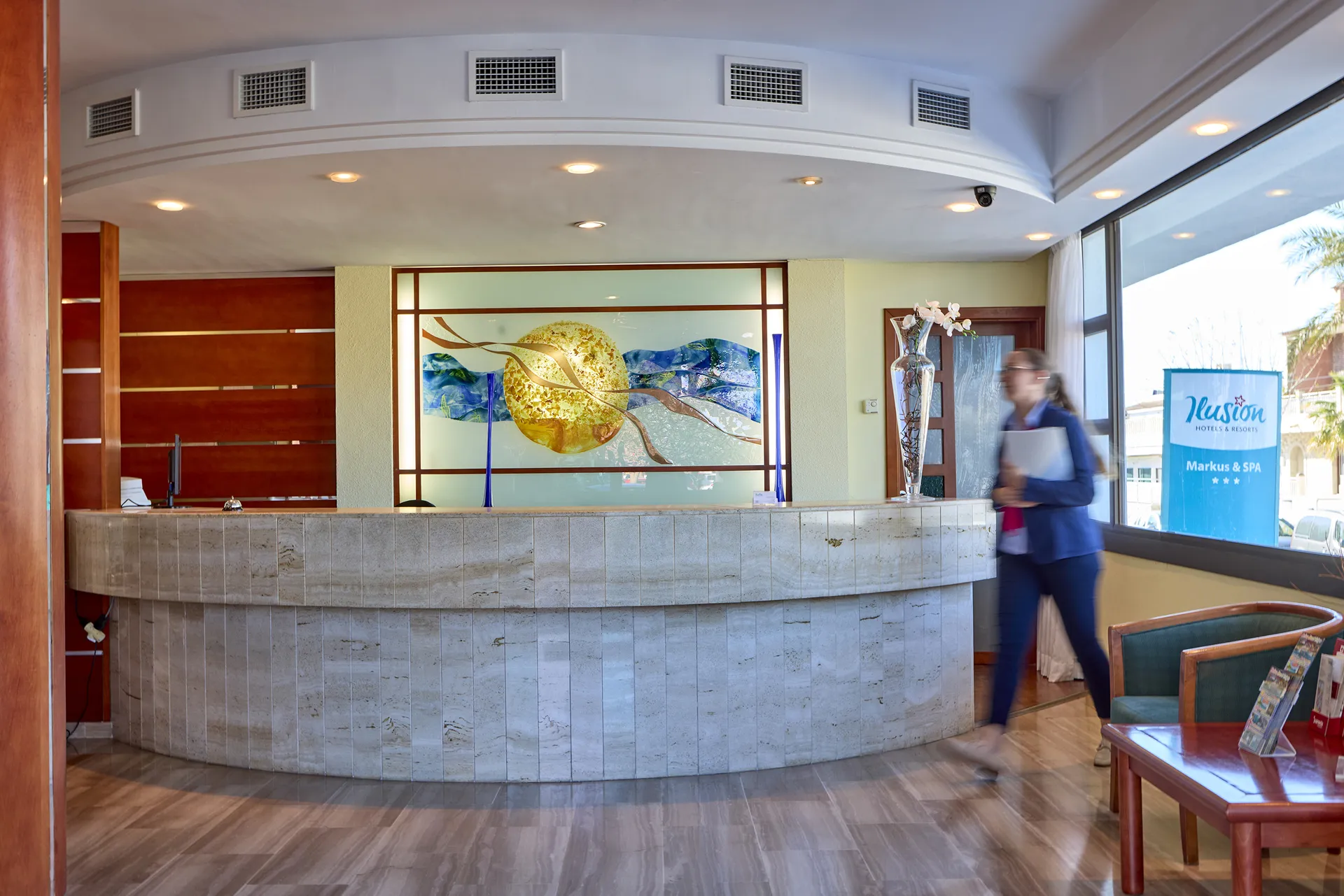 The hotel Hotel Ilusion Markus & Spa is located approximately 250 m from a beach. The nearest restaurants and bars can be found within 200 m. The old town is around 25 km away. The nearest shops you can reach within around 200 m, a supermarket is just a few metres away from the hotel. Nearby there is a disco which offers entertainment in high season. On the beach are beach towels available. The seasonally air-conditioned, GPS-verified hotel is equipped with a 24h reception (check-in is possible around the clock), a lobby bar, Wi-Fi, internet access, 2 lifts, a jacuzzi, showers and changing rooms, a first aid kit as well as a TV lounge with satellite TV. In the outdoor area of the property you will find a seasonally heated and supervised pool that is open seasonally, where sun loungers, sun umbrellas and pool towels are available for free. There is also a separate children's pool with a non-swimming area. Furthermore, you can relax outdoors on a terrace. Inside the hotel you can use a heated indoor pool. You can store your valuables in the safe (extra fee), and your luggage in the hotel`s storage room. In addition, the hotel Hotel Ilusion Markus & Spa is video-monitored 24h a day. For your entertainment, the hotel offers a library/reading room. For very young guests, kid`s chairs, highchairs and cots can be provided. For the smallest children prams can be rented in the hotel. There is also a laundry service available at an additional cost to customers as well as an ironing service. Ironing equipment can also be borrowed at the hotel. If necessary, you can contact the medical centre at any time (for a fee). Guests at the accommodation can get a wake-up call from the hotel personnel. The energy supply is 220 and 240 Volts. If you want to explore the holiday region, you can use the car rental service close to the hotel (extra fee). At the reception, tickets are offered for excursions in the area. For guests on their honeymoon, the hotel has special offers such as champagne, sparkling wine or a basket of fruit in the room. In your hotel, a lot of focus is placed on sustainability. This includes the hotel`s own recycling bins, the provision of soap and shampoo dispensers, organic food and ecological meals, a central room air-conditioning and environmentally-friendly cleaning. That is why the hotel Hotel Ilusion Markus & Spa was also awarded a sustainability certificate. The hotel requires that all guests pay a deposit upon arrival. American Express, Euro/Master Card and Visa are accepted as means of payment. Due to its barrier-free facilities , such as a sliding door in the entrance area, an automatic hotel door, a hotel door that can be opened manually, barrier-free entrances, wheelchair accessible rooms, a wheelchair accessible lift and wheelchair-accessible bathrooms, the hotel is also suitable for wheelchair users. Catering As catering services the hotel offers all-inclusive, half board, full board and breakfast only. Breakfast is offered continental or from the buffet. Lunch and dinner are also served from the buffet with starters, salads and desserts. Half board includes breakfast and dinner. When booking half board plus, selected imported spirits (limited) are included. All Inclusive Light includes local alcoholic beverages. As part of the all-inclusive service, water (24h) as well as coffee and tea (24h) are available at no extra charge. For the meals, there are a buffet restaurant (gluten-free and vegetarian dishes) and a bar as well as the cafeteria. The drinks menu of the hotel includes water, soft drinks, coffee and tea, beer and wine. For dinner, guests are asked to wear appropriate clothing in the restaurant. Distances