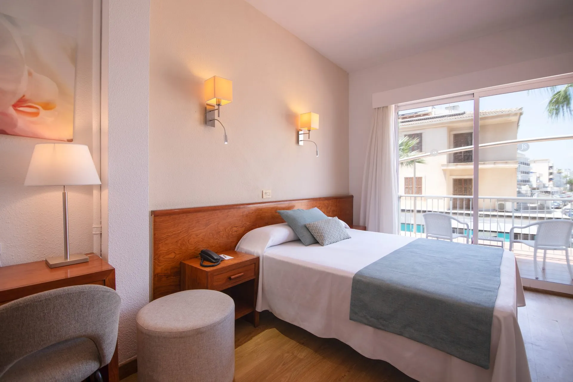 About 25 m from a sandy beach is located the hotel JS Sol de Can Picafort - Adults Only. Near the beach there is a promenade where you can go for a stroll. The air-conditioned hotel has a 24h reception, a lobby bar, Wi-Fi, a jacuzzi as well as a TV lounge. In the outdoor area of the property you will find a pool that is open seasonally, where sun loungers and sun umbrellas are available for free. Furthermore, outside you can find a terrace. There is also a laundry service. If necessary, you can contact the medical centre. If you want to explore the holiday region, you can use the car rental service close to the hotel (extra fee). Catering As catering services the hotel offers half board and breakfast only. Breakfast is offered from the buffet. Dinner is also served as a buffet. For the meals, there are a buffet restaurant (Mediterranean dishes) and the cafeteria as well as the pool bar. Sports & Leisure To keep your fitness up on holiday, there is a gym for guests to use. A tennis court can also be used by hotel guests. Furthermore, various water sports such as diving are offered in the area. A sauna awaits you for relaxation. The hotel also offers massages. Additional information The hotel has a total of 100 rooms.
