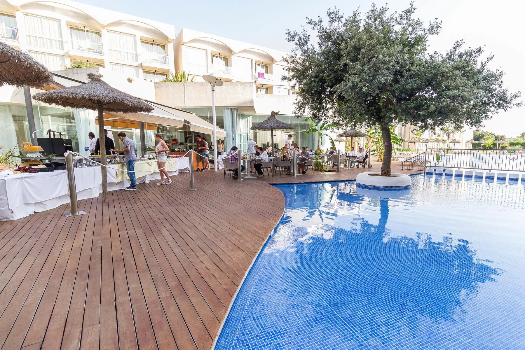 Descriere generală Hotelul Zafiro Alzinar Mar (doar pentru adulți) este situat la cca. 500 m de Can Picafort (Pto Alcudia cca. 10 km, Palma De Mallorca cca. 65 km). Cea mai apropiată plajă, o plajă cu nisip se află la cca. 450 m distanță. Centrul turistic al stațiunii se află la aprox. 2 km. Veți găsi un supermarket la cca. 800 m. Cele mai apropiate baruri și restaurante sunt la cca. 500 m distanță. O discotecă aflată la aprox. 1 km vă invită la dans. Următoarele atracții pot fi accesate de la hotel: Parc Natural S'Albufera (cca. 6 km), Hidropark (cca. 11 km) și Ciudad Romana Pollentia (cca. 12 km). Locul de cazare are la dispoziție mașini de închiriat. Aeroportul (PMI) se află la aprox. 65 km. Facilități Hotelul, care a fost renovat parțial în 2025, dispune de 3 etaje și peste 133 camere repartizate între o clădire principală și de 2 clădiri secundare. Hotelul are recepție deschisă 24h (check-in de la 14:00, check out până la 12:00), lobby, 3 lifturi, aer condiționat și birou de schimb valutar. Pentru a servi masa aveți la dispoziție 2 restaurante cu aer condiționat și un snackbar. Accesul la internet WiFi este disponibil gratuit pentru oaspeții hotelului. Pentru oaspeții cu dizabilități fizice, unitatea de cazare oferă acces fără bariere. Serviciul de menaj este gratuit. Spălătorie, călcat și serviciul medical sunt disponibile la un cost suplimentar. Piscină În grădinile acestui hotelul decorat în stil mediteranean există 2 piscine cu apă dulce (deschise din iunie până în septembrie). Acolo sunt disponibile gratuit șezlonguri și umbrele de soare. La barul de la piscină sunt disponibile băuturi răcoritoare. Catering Mic dejun bufet suedez. Demipensiunea include micul dejun și cina. All Inclusive: micul dejun, prânzul și cina. Apă, aperitive și cocktailuri. Băuturi răcoritoare (11:00 - 23:00), cafea și ceai (11:00 - 23:00), bere (11:00 - 23:00), vin (11:00 - 23:00) și băuturi alcoolice naționale (11:00 - 23:00). Sport/Leisure Oferte pentru sport și divertisment: Biliard (contra cost), fitness, aerobic și tenis (posibil contra cost, la cca. 50 m distanță). Există serviciu de închiriere de biciclete. Oferte de wellness: Saună și hamam gratuite. Masaje contra cost. Divertisment pentru adulți: program de animație cu spectacole de seară. Informații suplimentare Pentru anumite facilități sau activități se pot aplica taxe suplimentare. Unele servicii depind de anotimp și de condițiile climatice locale. Limbi de serviciu: engleză, germană și spaniolă. Carduri de credit: Euro/MasterCard și Visa. JuniorSuite (Balkon oder Terrasse): Cameră cu living, pat twin, o canapea extensibilă ca pat suplimentar, parchet, încălzire controlată centralizat, balcon sau terasă, acces la internet (gratuit), seif (contra cost) și TV prin satelit precum și aer condiționat controlat central. Baie cu duș. Lenjeria de pat de 2 ori pe săptămână. Dimensiune: 35 m². JuniorSuite (Balkon oder Terrasse Promotion): Dotate cu balcon. JuniorSuite (Privater Pool - Terrasse): Cameră cu living, pat twin, o canapea extensibilă ca pat suplimentar, parchet, piscină privată, încălzire controlată centralizat, balcon, acces la internet (gratuit), seif (contra cost) și TV prin satelit precum și aer condiționat controlat central. Baie cu duș. Lenjeria de pat de 2 ori pe săptămână. JuniorSuite (Privater Pool - Terrasse Promotion): Cameră cu balcon. JuniorSuite (Plunge Pool Promo): Dotate cu balcon. JuniorSuite (Poolblick, Balkon oder Terrasse): Dotate cu living, pat twin, o canapea extensibilă ca pat suplimentar, parchet, încălzire controlată centralizat, balcon sau terasă, acces la internet (gratuit), seif (contra cost) și TV prin satelit precum și aer condiționat controlat central. Baie cu duș. Lenjeria de pat de 2 ori pe săptămână. Dimensiune: 35 m². JuniorSuite (Poolblick, Balkon oder Terrasse Promotion): Dotate cu balcon. Einzelbelegung JuniorSuite (Balkon oder Terrasse): Cameră cu balcon. Einzelbelegung JuniorSuite (Balkon oder Terrasse Promotion): Dotate cu balcon. Einzelbelegung JuniorSuite (Poolblick, Balkon oder Terrasse): Dotate cu balcon. Einzelbelegung JuniorSuite (Poolblick, Balkon oder Terrasse Promotion): Cameră cu balcon. Royal JuniorSuite (Plunge Pool): Dotate cu living, pat twin, o canapea extensibilă ca pat suplimentar, parchet, încălzire controlată centralizat, balcon, acces la internet (gratuit), seif (contra cost) și TV prin satelit precum și aer condiționat controlat central. Baie cu duș. Lenjeria de pat de 2 ori pe săptămână. Dimensiune: 35 m². Standard JuniorSuite (Poolblick, Balkon oder Terrasse): Cameră cu balcon. Doppel Standard JuniorSuite (Balkon oder Terrasse): Dotate cu balcon. Einzelbelegung Standard JuniorSuite (Balkon oder Terrasse): Dotate cu balcon. Einzelbelegung Standard JuniorSuite (Poolblick, Balkon oder Terrasse): Dotate cu balcon. Doppel Zimmer (Poolblick, Balkon oder Terrasse Promotion): Dotate cu balcon. Doppel Royal Zimmer (Plunge Pool Promo): Cameră cu balcon. Standard Zimmer (Poolblick, Balkon oder Terrasse): Cameră cu balcon. Einzelbelegung Standard Zimmer (Poolblick, Balkon oder Terrasse): Cameră cu balcon.