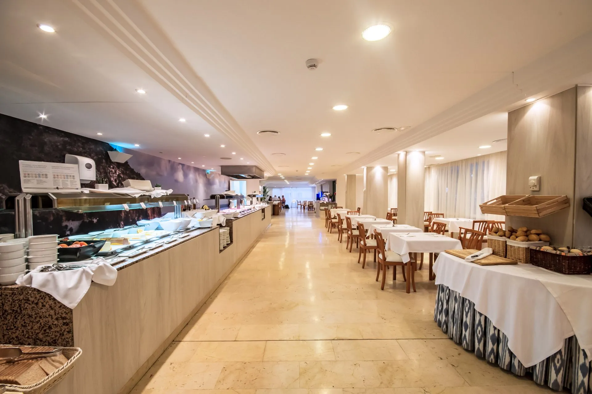 Around 50 m from a public sandy beach is located the 4 star accommodation Canyamel Classic & Spa. The nearest bars and restaurants are located directly next to the building. The old town is around 12 km away. A supermarket is around 280 m away. There is a 24h shuttle service between the hotel and the airport (for a fee) 24h a day. The beach is patrolled by a lifeguard. Here, there are sun umbrellas and beach towels for a fee available. The seasonally air-conditioned, GPS-verified hotel has a 24h reception (check-in is possible around the clock), a lobby, Wi-Fi, internet access, 4 lifts, a first aid kit, parking spaces (for a fee) as well as a TV lounge with satellite TV. In the outdoor area of the property you will find a garden as well as a supervised pool (open from May to November), where you can rent pool towels for a fee and sun loungers and sun umbrellas are available for free. Furthermore, outside you can find a sun terrace. You can store your valuables in the safe, and your luggage in the hotel`s storage room. In addition, the hotel Canyamel Classic & Spa is video-monitored 24h a day. For your entertainment, the hotel offers a library/reading room. Ironing equipment can be rented at the hotel for a fee. For your comfort there is a concierge service. If necessary, you can contact the medical centre at any time (for a fee). Guests at the accommodation can get a wake-up call from the hotel personnel. The energy supply is 220, 230 and 240 Volts. If you want to explore the holiday region, you can use the car and motorbike rental service close to the hotel (extra fee). At the hotel reception, tickets are offered for excursions in the area. For guests on their honeymoon, the hotel has special offers such as champagne or sparkling wine in the room. In your hotel, a lot of focus is placed on sustainability. This includes ecological meals, a central room air-conditioning and environmentally-friendly cleaning. Euro/Master Card, Visa and EC cards are accepted as means of payment. Due to its barrier-free facilities , such as an automatic hotel door, barrier-free entrances, wheelchair accessible rooms, a wheelchair accessible lift, a handrail in the elevator and wheelchair-accessible bathrooms, the hotel is also suitable for wheelchair users. Catering As catering services the hotel offers all-inclusive, all-inclusive light, half board, half board plus and breakfast only. Breakfast is offered continental, from the buffet or as brunch (extras on request). Enjoy your lunch from the buffet or à la carte with starters, salads and desserts (extras on request). Dinner is also served as a buffet with starters, salads and desserts (extras on request). Half board includes breakfast and dinner. When booking half board plus, breakfast, lunch, beverages during meals and selected imported spirits (limited) are included. All Inclusive Light includes coffee & tea, cake & pastries, beer, wine as well as local and international alcoholic beverages. When booking all-inclusive, one welcome drink is included. As part of the all-inclusive service, water (24h), international alcoholic beverages (unlimited) as well as international alcoholic beverages (limited) are available at no extra charge. For the meals, there are a buffet restaurant with terrace (Mediterranean, calorie-reduced and gluten-free dishes) and a bar, the cafeteria as well as the pool bar. The drinks menu of the hotel includes water, soft drinks, coffee and tea, beer and wine. A picnic bench can be used by guests for self-catering. Appropriate clothing is required for lunch and dinner. Distances