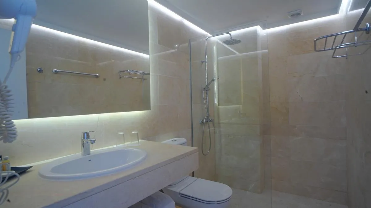 Partially renovated in 2024, the 3-storey hotel has 174 rooms, and spread over one main building and one adjoining building. It offers its guests a 24h reception (check-in from 14:00, check-out until 12:00), a lobby with bar, 2 lifts and air conditioning. For the meals, there is a restaurant and a snack bar. You can relax in good company in the hotel bar. WiFi is available for free. Laundry / ironing service is available for a fee. Pool: In the outdoor area of the mediterranean-style hotel you will find one fresh water pool (open from May to October). Here, there are sun loungers and sun umbrellas for free available. At the pool bar you can get refreshing beverages.