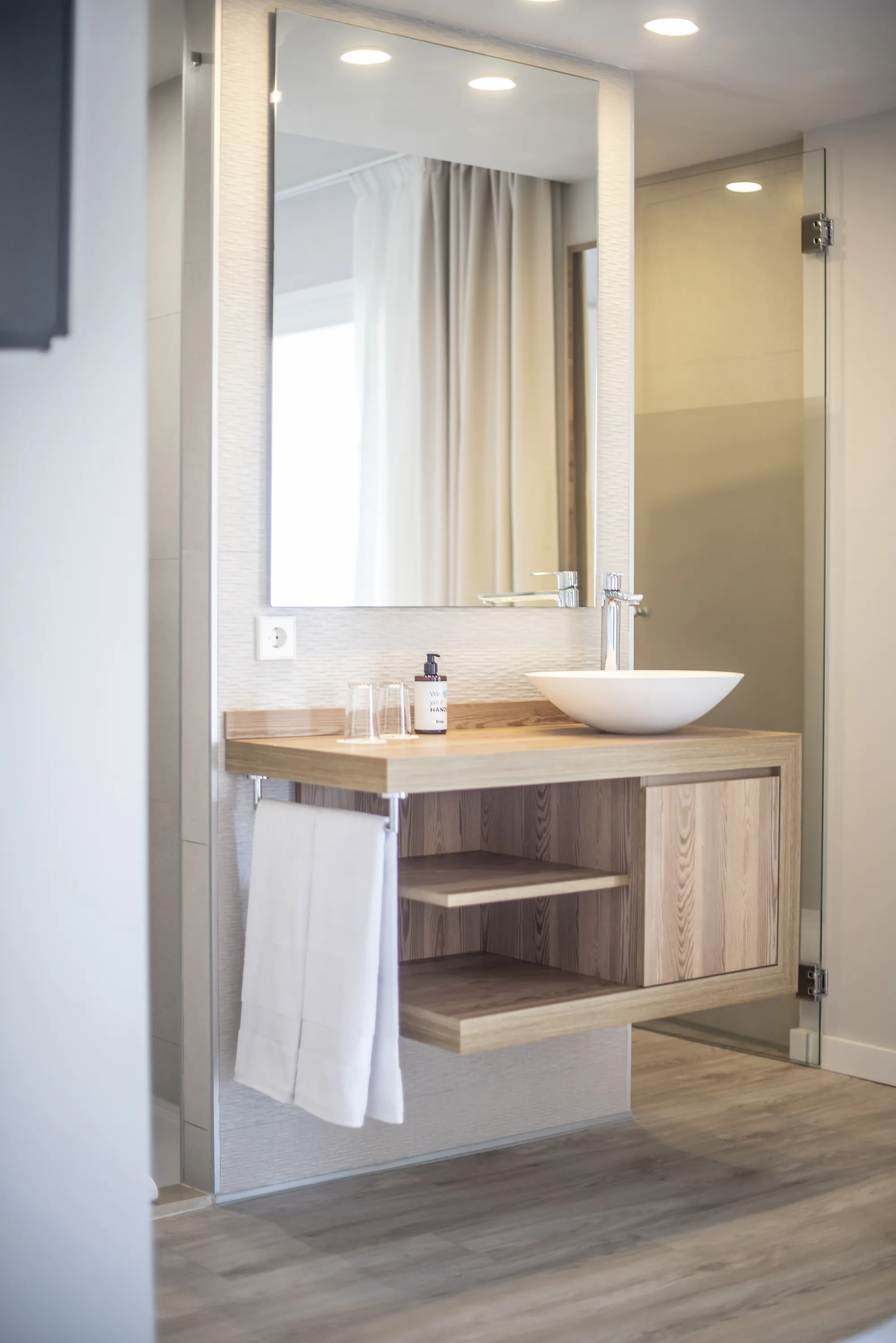 Featuring a modern design, all rooms and suites are equipped with the necessary amenities for relaxation and relaxation: bathroom with shower, television, minibar, air conditioning, balcony or terrace. On the ground floor, the hotel offers garden suites, ideal for those traveling with their families and looking for more space.