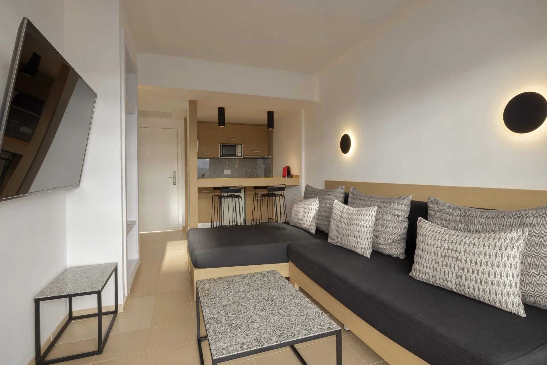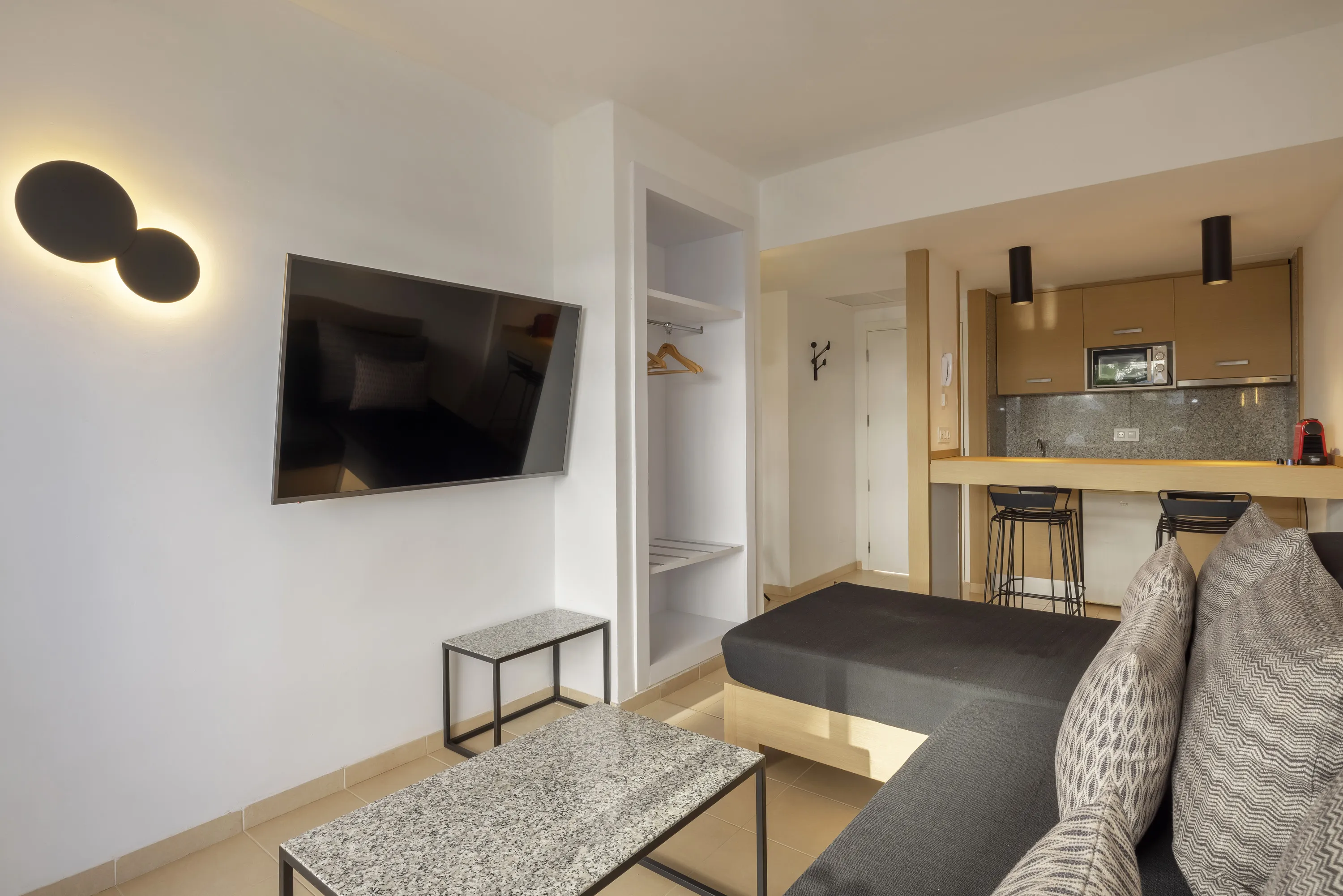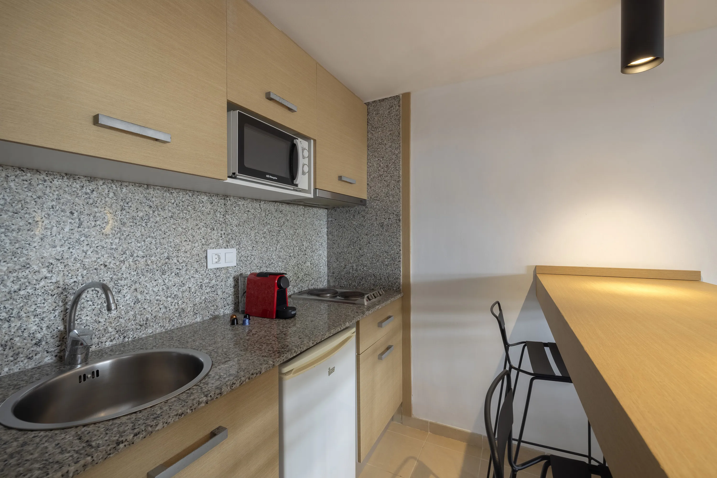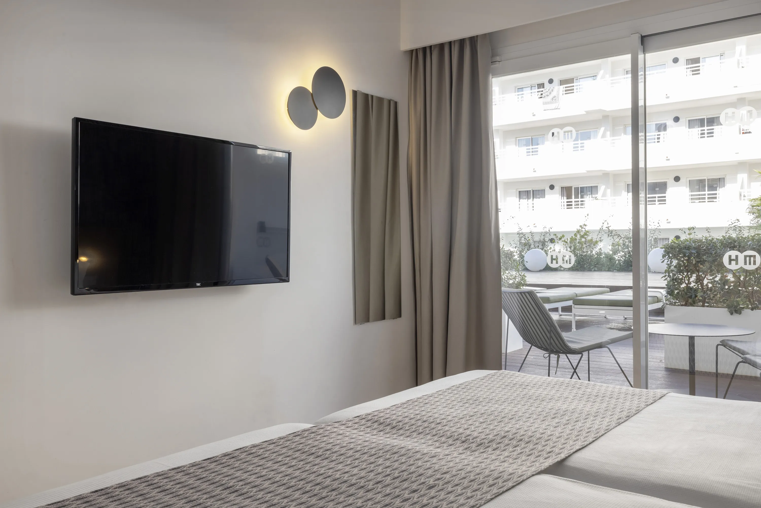 The apart hotel APARTHOTEL HM MARTINIQUE is located approx. 500 m from a sandy beach. There is a shuttle service between the hotel and the airport. In the surrounding a disco (approx. 300 m away) and a golf course (approx. 5 km) offer entertainment for holidaymakers. Near the beach there is a promenade where you can go for a stroll. The air-conditioned hotel has a 24h reception, a lobby bar as well as Wi-Fi. In the outdoor area of the property you will find a seasonally open, heated pool, where sun loungers and sun umbrellas are available for free. There is also a children's pool. Furthermore, outside you can find a terrace. Inside the hotel you can use an indoor pool. Your valuables can be stored in the hotel safe (extra fee). For very young guests, cots can also be provided. To clean your clothes there is a laundry service (extra fee). If necessary, you can contact the medical centre (for a fee). For conventions and other business meetings, the hotel offers a conference area. If you want to explore the holiday region, you can use the car rental service close to the hotel. In addition, the hotel sells tickets excursions. Due to its barrier-free facilities , such as barrier-free entrances, the hotel is also suitable for wheelchair users. Catering As catering services the hotel offers all-inclusive, half board and breakfast only. Breakfast is offered from the buffet. Lunch and dinner are also served from the buffet. For the meals, there are a buffet restaurant with terrace and the pool bar. Distances