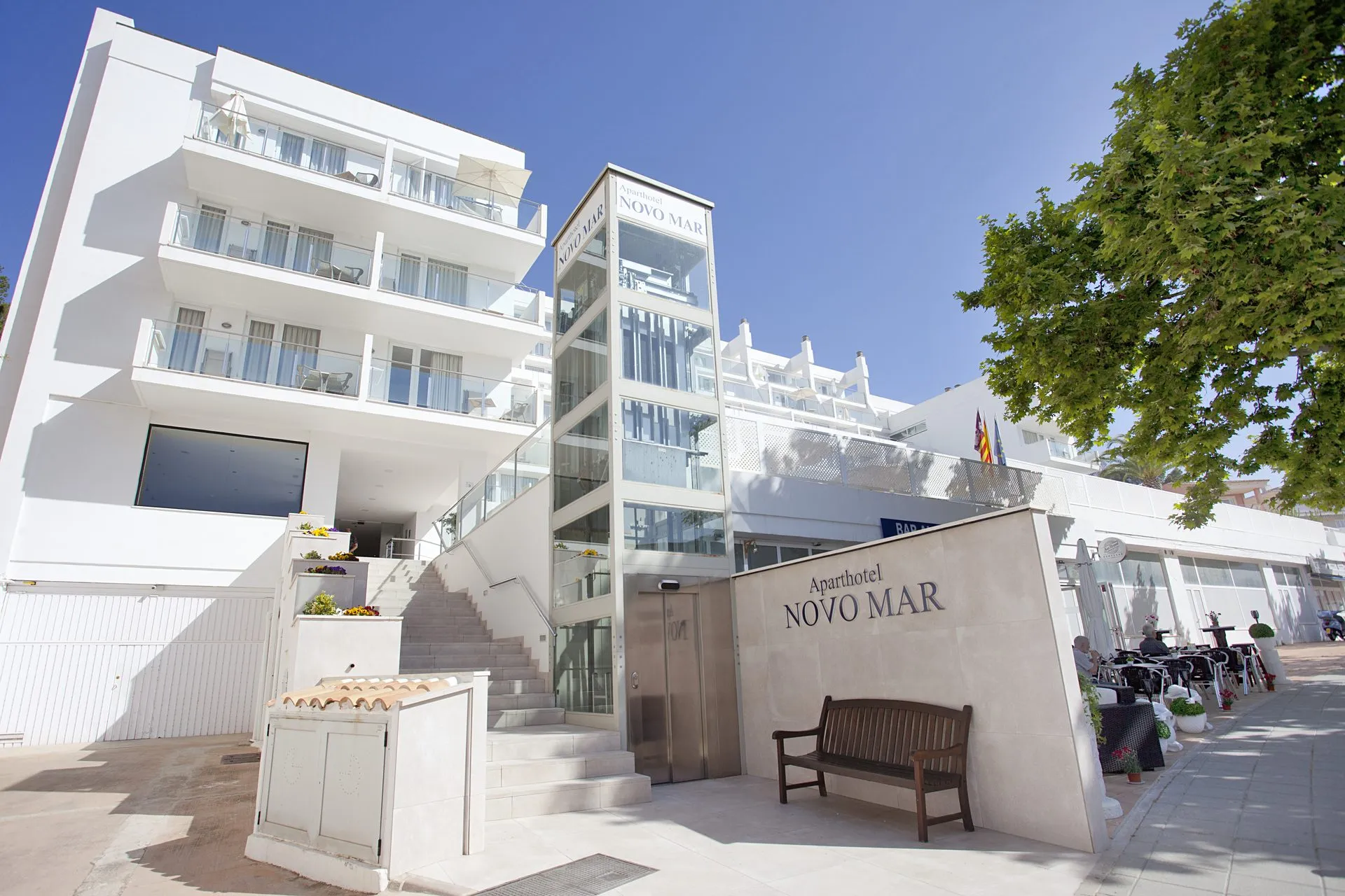 Around 100 m from a public sandy/rocky beach is located the accommodation Aparthotel Novo Mar. The nearest restaurants and bars can be reached in a few minutes on foot. The old town is also just a a few steps away. Shops are right on your doorstep, a supermarket is also just a few metres away from the hotel. There is a shuttle between the hotel and the airport (for a fee). The beach is patrolled by a lifeguard and awarded a blue flag, pets are allowed. Here, there are cushions and sun umbrellas available. Near the beach there is a promenade where you can go for a stroll. The air-conditioned, GPS-verified hotel has a 24h reception (check-in is possible around the clock), a lobby bar, Wi-Fi, internet access, 2 lifts, a boutique, showers and changing rooms, a first aid kit, parking spaces (limited and for a fee) as well as a TV lounge with satellite TV. In the outdoor area you will find a garden as well as a pool that is open seasonally (open from May to October), where sun loungers are available for free. There is also an integrated children's pool. Furthermore, you can relax outdoors on a terrace. You can store your valuables in the safe, and your luggage in the hotel`s storage room. In addition, the hotel Aparthotel Novo Mar is video-monitored 24h a day. For your entertainment, the hotel offers a library/reading room. For very young guests, kid`s chairs, highchairs and cots can be provided. There is also a laundry and ironing service. For your comfort there is a concierge service. If necessary, you can contact the medical centre at any time. If you want to explore the holiday region, you can use the car and motorbike rental service close to the hotel. At the hotel reception, tickets are offered for excursions in the area. Pets like cats and dogs up to 10 kg are allowed in the hotel (for a fee). In your hotel, a lot of focus is placed on sustainability. This includes the hotel`s own recycling bins, organic food and ecological meals, a central room air-conditioning and environmentally-friendly cleaning. The hotel requires that all guests pay a deposit upon arrival. Euro/Master Card and EC cards are accepted as means of payment. Due to its barrier-free facilities , such as an automatic hotel door, a hotel door that can be opened manually, barrier-free entrances, wheelchair accessible rooms, a wheelchair accessible lift, a handrail in the elevator and wheelchair-accessible bathrooms, the hotel is also suitable for wheelchair users. Catering As catering services the hotel offers half board and breakfast only. Breakfast is offered continental or from the buffet. Dinner is also served as a buffet (extras on request). For the meals, there are a restaurant (calorie-reduced and gluten-free dishes) and a bar, the cafeteria as well as the pool bar. The drinks menu of the hotel includes 24h international alcoholic beverages. For dinner, guests are asked to wear appropriate clothing in the restaurant. Distances