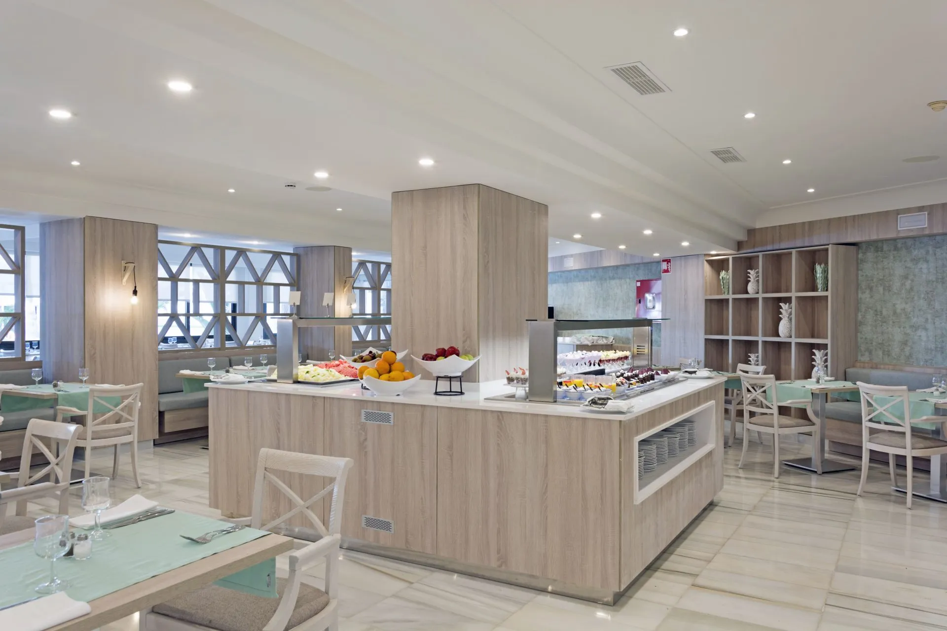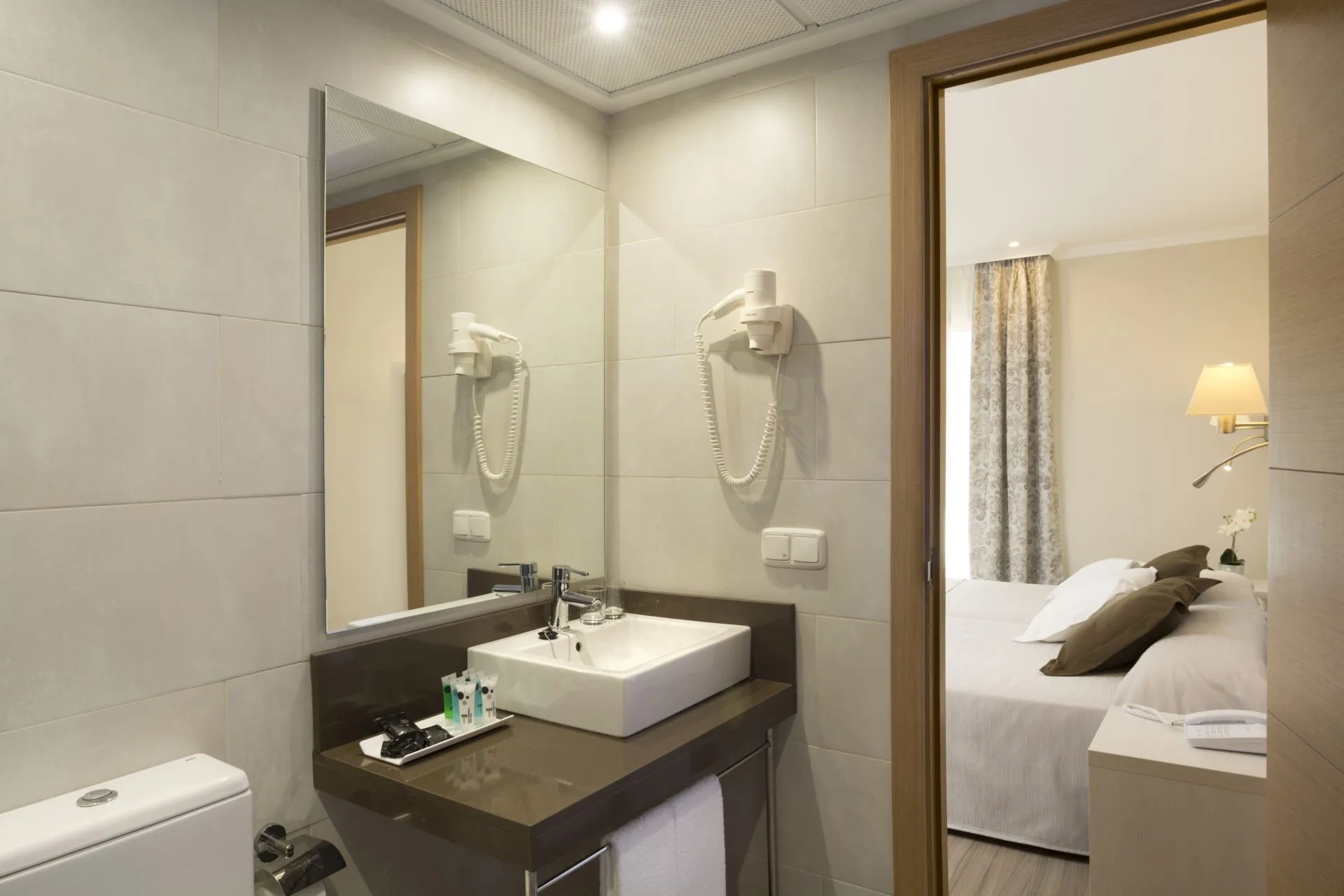 Around 150 m from a public sandy beach lies the hotel Ona Palmira Paguera. The nearest restaurants and bars can be found within 300 m. The city centre is around 500 m away. The nearest shops you can reach within around 200 m, a supermarket is around 150 m away. There is a 24h shuttle service between the hotel and the airport (for a fee) 24h a day. The beach is patrolled by a lifeguard. Here, there are cushions for a fee as well as beach towels available. Near the beach there is a promenade where you can go for a stroll. The air-conditioned, GPS-verified hotel is equipped with a 24h reception (check-in is possible around the clock), a lobby bar, Wi-Fi, internet access, 3 lifts, showers and changing rooms, a first aid kit, parking spaces (for a fee) as well as a TV lounge with satellite TV. In the outdoor area you will find a garden as well as a supervised pool (open all year), where sun loungers, sun umbrellas and pool towels are available for free. For children there is also a separate children's pool. Furthermore, you can relax outdoors on a terrace. Inside the hotel you can use an indoor pool. You can store your valuables in the safe (extra fee), and your luggage in the hotel`s storage room. For your entertainment, the hotel offers a library/reading room. For the young hotel guests there is a playground. For very young guests, kid`s chairs and cots can also be provided. For the smallest children prams can be rented in the hotel. There is also a laundry service available at an additional cost to customers. For your comfort there is a concierge service. If necessary, you can contact the medical centre at any time (for a fee). The energy supply is 220 Volts. If you want to explore the holiday region, you can use the car and motorbike rental service close to the hotel (extra fee). In addition, the hotel sells tickets for excursions. For guests on their honeymoon, the hotel has special offers such as champagne in the room. In your hotel, a lot of focus is placed on sustainability. This includes the provision of soap and shampoo dispensers and a central room air-conditioning. Euro/Master Card and Visa are accepted as means of payment. Due to its barrier-free facilities , such as a sliding door in the entrance area, an automatic hotel door, barrier-free entrances, wheelchair accessible rooms and a handrail in the elevator, the hotel is also suitable for wheelchair users. Catering As catering services the hotel offers half board and breakfast only. Breakfast is offered from the buffet. Enjoy your lunch à la carte. Dinner is also served as a buffet with starters, salads and desserts (extras on request). Half board includes breakfast and dinner. For the meals, there are a buffet restaurant with terrace (calorie-reduced and gluten-free dishes) and a bar, the cafeteria as well as the pool bar. The drinks menu of the hotel includes water, soft drinks, coffee and tea, beer and wine. For dinner, guests are asked to wear appropriate clothing in the restaurant. Distances