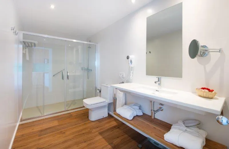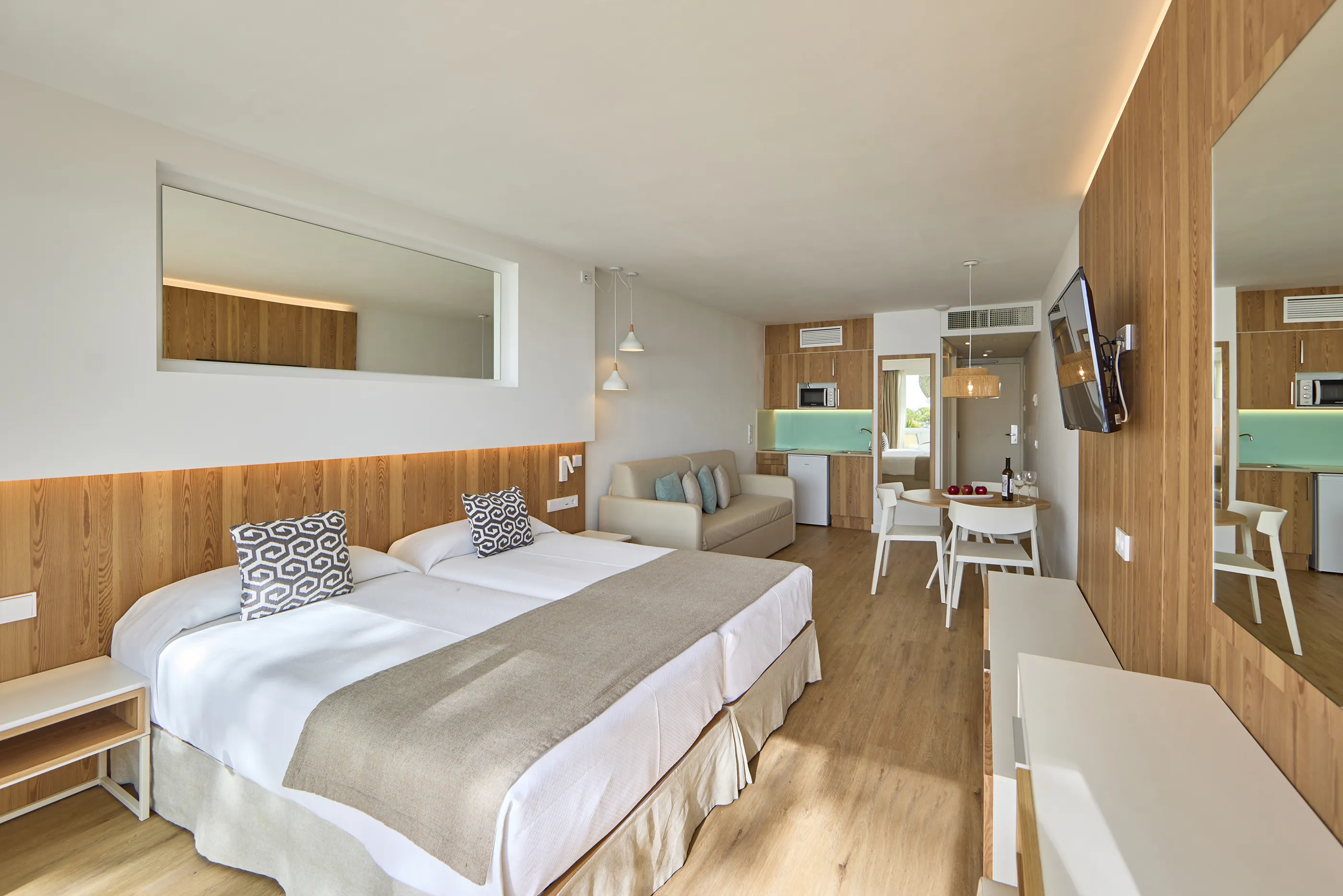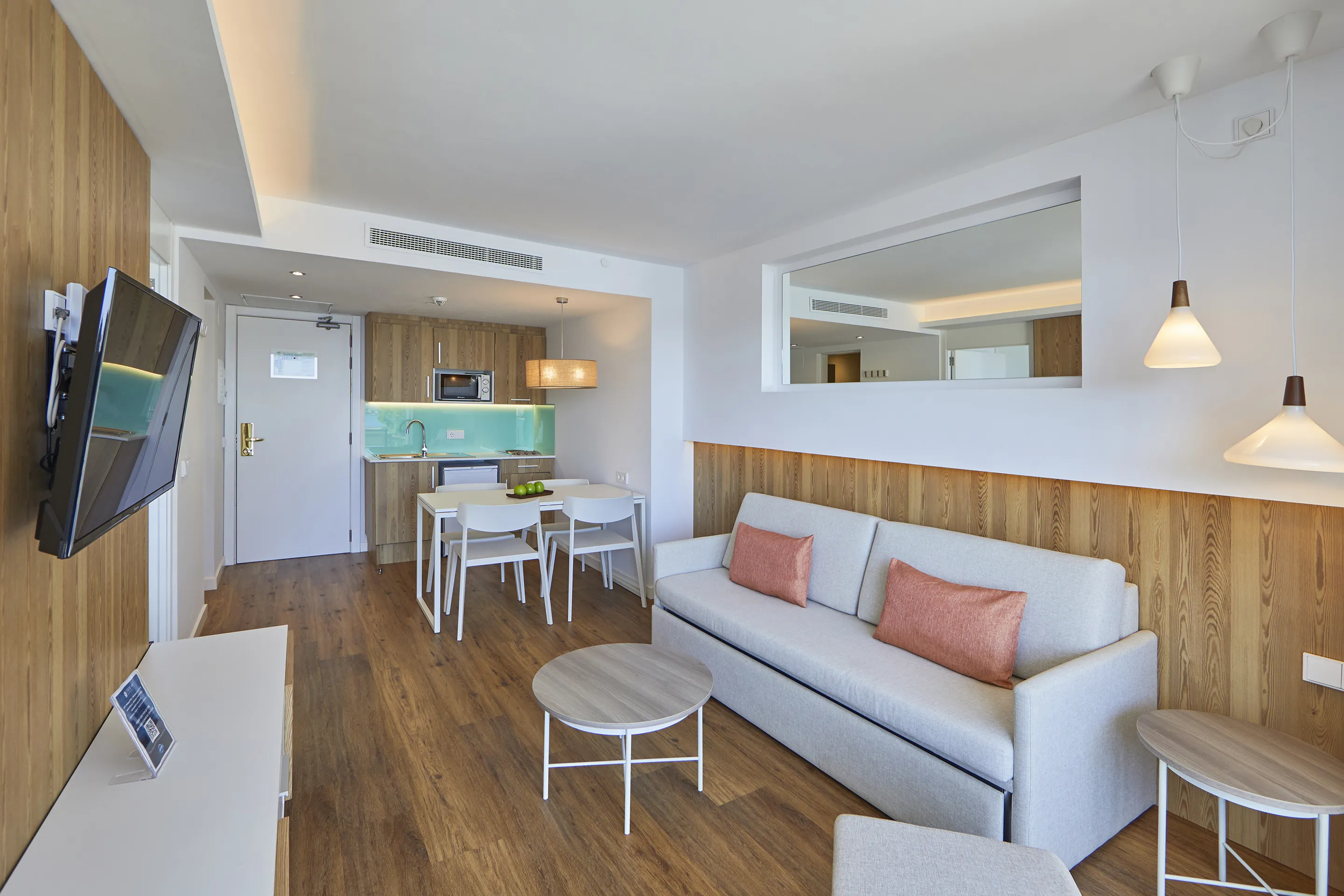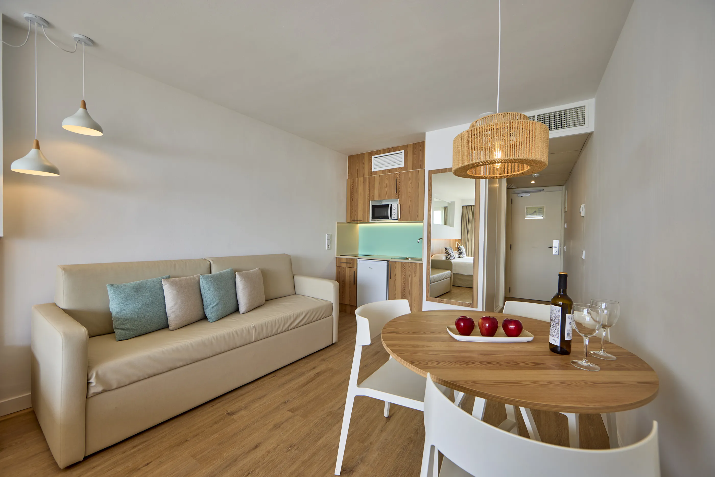 Overlooking the sea, this hotel boasts a spectacular setting. Amidst the beautiful cliffs of Mallorca's south coast, guests will find themselves enchanted by the movements of the sea and the breath-taking panoramic view of the coastline. Just 200 metres to the pristine white-sand beach and only 250 metres to the town centre, guests will discover an array of opportunities to enjoy. The airport is at 25 km away. This hotel combines comfort and modernity like no other. Rooms are equipped with a balcony or terrace and leave ample space for guests to work or relax in. Comprising a garden complex, relaxing bar, indoor pool and gym, this hotel ensures a holiday to remember. Guests can also enjoy free access to the hotel's spa with both family friendly and adult only opening times. The hotel restaurant serves a delectable breakfast, sure to energize each guest for an enjoyable stay. Guests may also enjoy an a la carte meal at the hotel's Amura restaurant both for lunch and dinner. Guests will be sure to love the weekly live shows at the Cielo pool bar on the hotel's roof top terrace. Location:2017 Year of most recent renovation; 189 Total number of rooms; 8 Number of floors (main building) Hotel type:aparthotel Methods of payment:American Express; Diners Club; MasterCard; Visa; Maestro Distances (in meters):City centre (200); Nearest Bus / Metro Stop (10000); Beach (200); Golf course (5000) Facilities:Wheelchair-accessible; Car park; 24-hour reception; Check-in hour; Check-out hour; Wired Internet (Extra Fee); Wi-fi (Extra Fee); Airport Shuttle; Room service; Laundry service (Extra Fee); Launderette; Medical service (Extra Fee); Bicycle hire service; Multilingual staff; Air conditioning in public areas; Hotel safe (Extra Fee); Currency exchange facilities; Cloakroom; Lift access; Supermarket; Shop; Garden; Terrace; Bicycle storage; Concierge; Sun terrace; Gym; 1 Toaster; 2 Dining area; Clothes dryer Catering:Café; Bar; 2 Restaurant; Non-smoking area; Smoking area; Highchairs; Poolside snack bar; Show cooking; Air conditioning in Restaurant; Breakfast room Business:Conference room; Meeting room; Projector (Extra Fee); Printer (Extra Fee); Business centre Entertainment:1 Indoor freshwater pool; 2 Outdoor freshwater pool; 1 Children’s swimming area; Sun loungers; Parasols; Children playground; Kids’ club; Entertainment programme for adults; Entertainment programme for children Health:Sauna (Extra Fee); Steam bath; Turkish bath (hamam); Massage (Extra Fee); Spa treatments (Extra Fee); Beauty salon (Extra Fee); Spa centre
