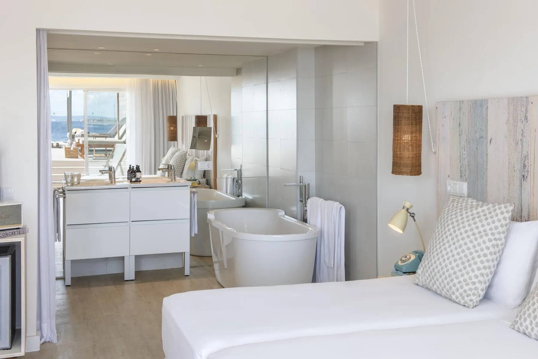 American Express, Euro / MasterCard, Diners Club and Visa. Junior Suite (Terrace): The rooms with living room are equipped with king size bed or twin bed, kettle (for free), minibar (for a fee), internet (for free), safe (for free) and sat TV as well as centrally controlled air conditioning (from June to September). Bathroom with shower (room size: 50 m²). Junior Suite (SeaView, Balcony): The rooms with living room are equipped with king size bed or twin bed, kettle (for free), minibar (for a fee), balcony, internet (for free), safe (for free) and sat TV as well as centrally controlled air conditioning (from June to September). Bathroom with shower (room size: 45 m²). Room (Private Jacuzzi Terrace): The rooms are equipped with king size bed or twin bed, extra bed (sofa bed), kettle (for free), minibar (for a fee), capsule coffee machine (for free), jacuzzi, internet (for free), safe (for free) and sat TV as well as centrally controlled air conditioning (from June to September). Bathroom with shower (room size: 80 m²). Premier Room (Balcony or Terrace): The rooms are equipped with king size bed or twin bed, kettle (for free), minibar (for a fee), balcony or terrace, internet (for free), safe (for free) and sat TV as well as centrally controlled air conditioning (from June to September). Bathroom with shower (room size: 32 m²). Premier Room (SeaView, Balcony or Terrace): The rooms are equipped with king size bed or twin bed, kettle (for free), minibar (for a fee), balcony or terrace, internet (for free), safe (for free) and sat TV as well as centrally controlled air conditioning (from June to September). Bathroom with shower (room size: 32 m²). Premier Room (SeaView, Balcony or Terrace Action): The rooms are equipped with king size bed or twin bed, kettle (for free), minibar (for a fee), balcony or terrace, internet (for free), safe (for free) and sat TV as well as centrally controlled air conditioning (from June to September). Bathroom with shower (room size: 32 m²). Premier Room (SeaView, Balcony or Terrace SpecialPackage): The rooms are equipped with king size bed or twin bed, kettle (for free), minibar (for a fee), balcony or terrace, internet (for free), safe (for free) and sat TV as well as centrally controlled air conditioning (from June to September). Bathroom with shower. SingleUse Premier Room (SeaView, Balcony or Terrace): The rooms are equipped with king size bed or twin bed, kettle (for free), minibar (for a fee), balcony or terrace, internet (for free), safe (for free) and sat TV as well as centrally controlled air conditioning (from June to September). Bathroom with shower (room size: 32 m²). SingleUse Premier Room (SeaView, Balcony or Terrace Action): The rooms are equipped with king size bed or twin bed, kettle (for free), minibar (for a fee), balcony or terrace, internet (for free), safe (for free) and sat TV as well as centrally controlled air conditioning (from June to September). Bathroom with shower (room size: 32 m²). Double Standard Room (Balcony or Terrace): The rooms are equipped with king size bed or twin bed, kettle (for free), minibar (for a fee), balcony or terrace, internet (for free), safe (for free) and sat TV as well as centrally controlled air conditioning (from June to September). Bathroom with shower (room size: 25 m²). Double Standard Room (Balcony or Terrace Action): The rooms are equipped with king size bed or twin bed, kettle (for free), minibar (for a fee), balcony or terrace, internet (for free), safe (for free) and sat TV as well as centrally controlled air conditioning (from June to September). Bathroom with shower (room size: 25 m²). SingleUse Standard Room (Balcony or Terrace): The rooms are equipped with king size bed or twin bed, kettle (for free), minibar (for a fee), balcony or terrace, internet (for free), safe (for free) and sat TV as well as centrally controlled air conditioning (from June to September). Bathroom with shower (room size: 25 m²). SingleUse Standard Room (Balcony or Terrace Action): The rooms are equipped with king size bed or twin bed, kettle (for free), minibar (for a fee), balcony or terrace, internet (for free), safe (for free) and sat TV as well as centrally controlled air conditioning (from June to September). Bathroom with shower (room size: 25 m²). ** ADULTS recommended hotel