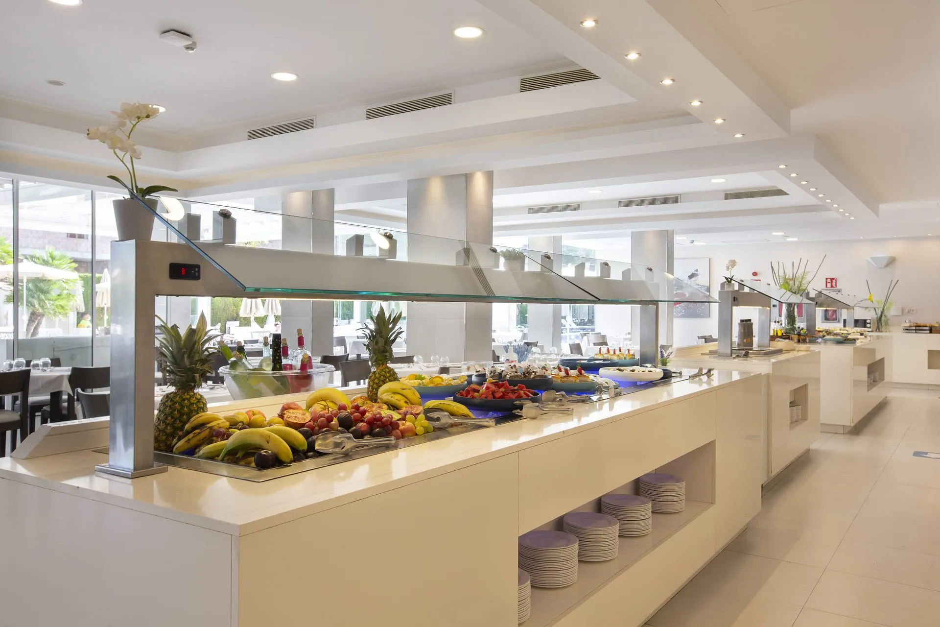 The 4 star accommodation Mar Hotels Playa de Muro Suites is located approximately 100 m from a sandy beach and about 200 m from the sea. The nearest restaurants and bars can be found within 500 m. A supermarket and other shops you reach after around 200 m. There is a shuttle between the hotel and the airport (for a fee). The beach is patrolled by a lifeguard. Here, there are beach towels for a fee available. Near the beach there is a promenade where you can go for a stroll. The air-conditioned hotel has a 24h reception (check-in is possible around the clock), a lobby bar, Wi-Fi, 2 lifts, a first aid kit, parking spaces as well as a TV lounge with satellite TV. In the outdoor area you will find a garden as well as a pool that is open seasonally (open all year), where you can rent pool towels for a fee and sun loungers and sun umbrellas are available for free. There is also a children's pool with a water slide (type open slide) as well as 3 children`s slides. Furthermore, you can relax outdoors on the sun terrace. You can store your valuables in the safe (extra fee), and your luggage in the hotel`s storage room. For your entertainment, the hotel offers a theatre. For the young hotel guests there is a playground. For very young guests, kid`s chairs can also be provided. Kid`s chairs are available for a fee. For the smallest children prams can be rented in the hotel. There is also a laundry service available at an additional cost to customers as well as an ironing service. Ironing equipment can also be rented at the hotel for a fee. For your comfort there is a concierge service. Guests at the accommodation can get a wake-up call from the hotel personnel. For conventions and other business meetings, the hotel offers a (auditorium-style) conference area with a total of 130 seats, overhead projector as well as a catering service. If you want to explore the holiday region, you can use the car and motorbike rental service close to the hotel (extra fee). In addition, the hotel sells tickets for excursions. In your hotel, a lot of focus is placed on sustainability. This includes among others the hotel`s own recycling bins. That is why the hotel Mar Hotels Playa de Muro Suites was also awarded a sustainability certificate. Due to its barrier-free facilities , such as barrier-free entrances and wheelchair accessible rooms, the hotel is also suitable for wheelchair users. Catering As catering services the hotel offers all-inclusive. Breakfast is offered from the buffet. Lunch and dinner are also served from the buffet. For the meals, there are a buffet restaurant with terrace (Mediterranean, gluten-free and vegetarian dishes) and several bars, the cafeteria as well as the pool bar. The drinks menu of the hotel includes wine. Distances