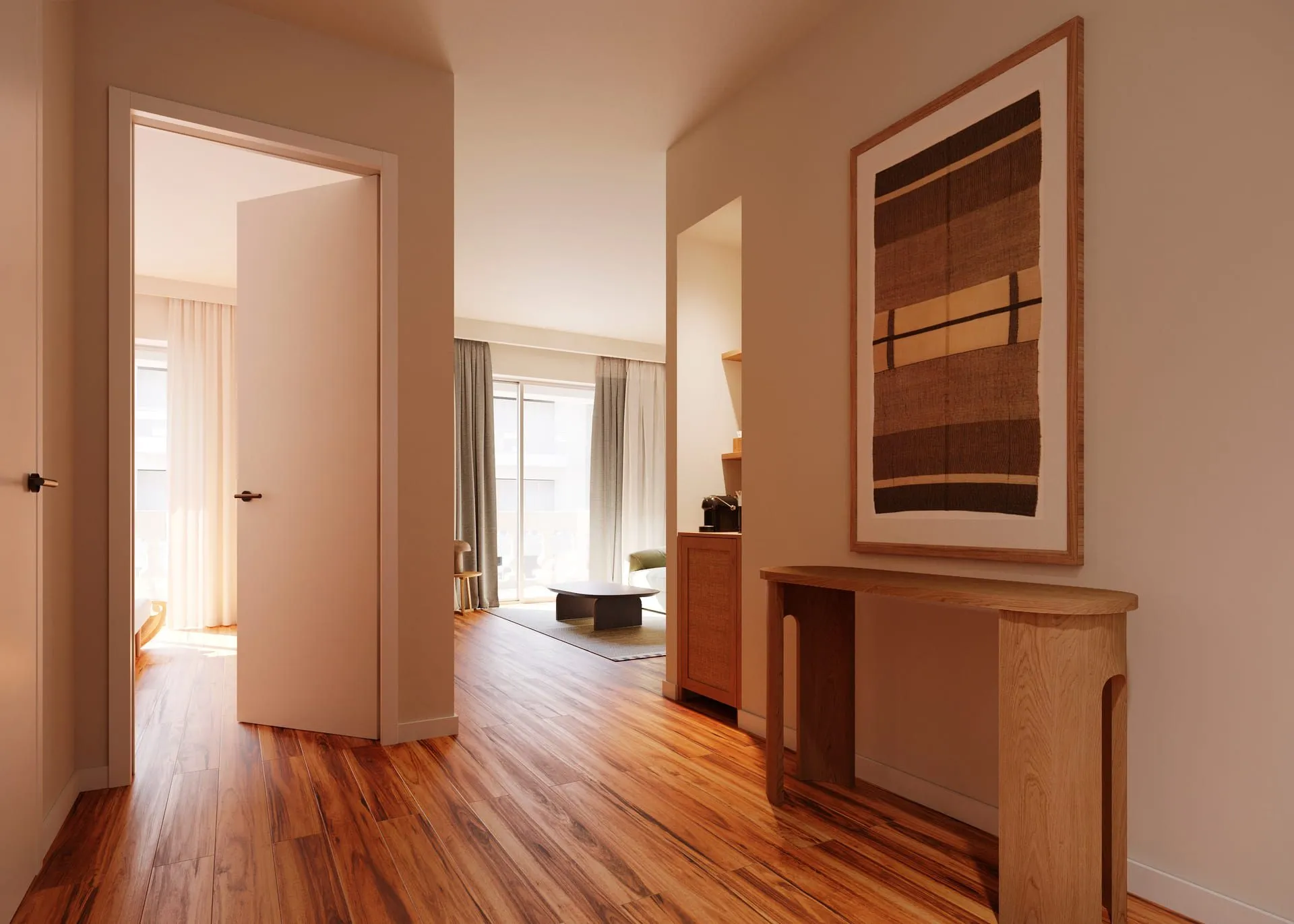 The 5 star hotel Sarena DE MURO RESORT MALLORCA is located in the vicinity of a sandy beach. The hotel has a 24h reception, a lobby bar, Wi-Fi, internet access as well as parking spaces. In the outdoor area of the property you will find a supervised pool, where sun loungers, sun umbrellas and pool towels are available for free. For children there is also a children's pool. Furthermore, you can relax outdoors on the sun terrace. You can store your valuables in the safe, and your luggage in the hotel`s storage room. There is also an ironing service. Dogs up to 10 kg are the only pets allowed in the hotel (for a fee). American Express, Euro/Master Card and Visa are accepted as means of payment. Due to its barrier-free facilities , such as wheelchair accessible rooms, the hotel is also suitable for wheelchair users. Catering Breakfast is offered from the buffet. Dinner is also served as a buffet. For the meals, there are a buffet restaurant (Mediterranean dishes) and the pool bar. Appropriate clothing is required for lunch and dinner. Distances