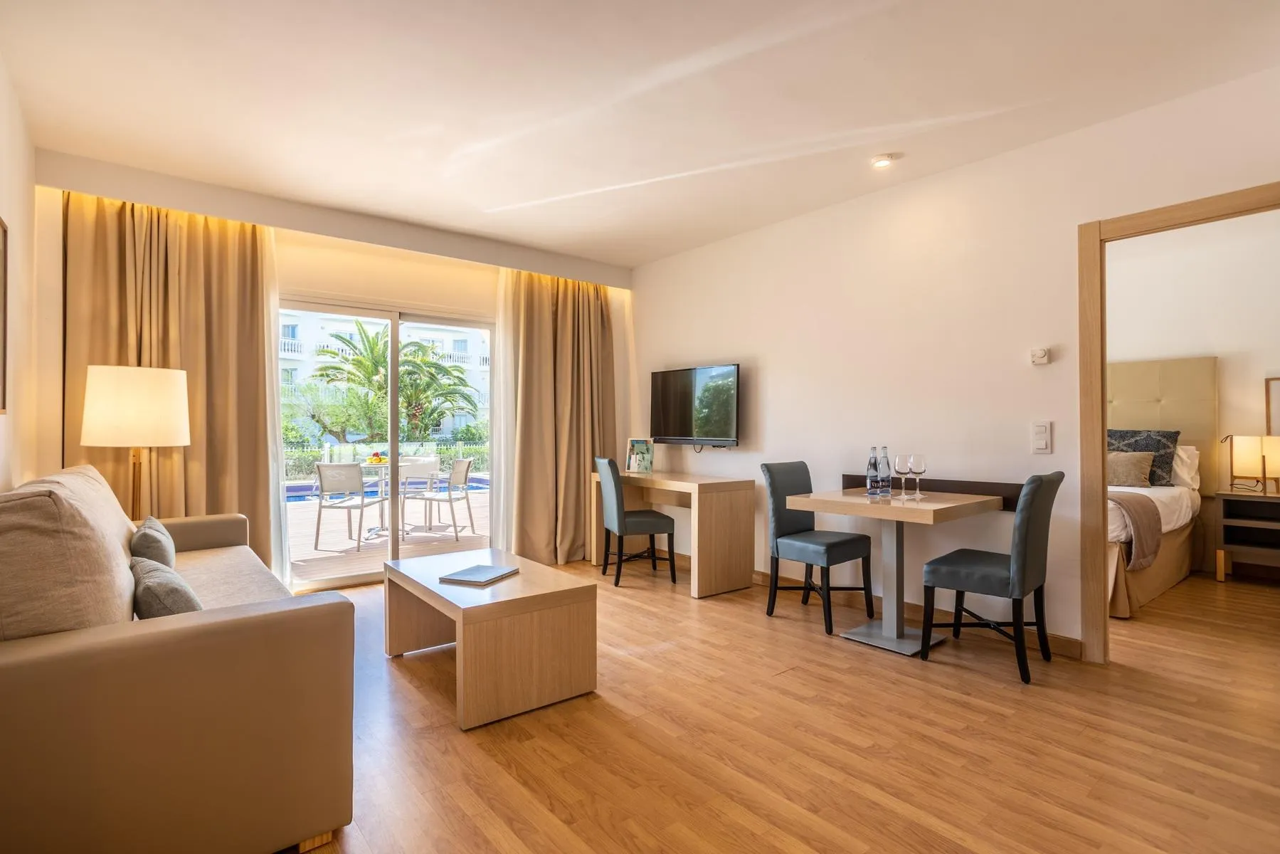 Descriere generală Hotelul Zafiro Bahia este situat direct pe o plajă cu nisip. Pe plajă sunt disponibile umbrele de soare și șezlonguri la un cost suplimentar. Centrul turistic al stațiunii se află la aprox. 4 km. Orașul Port D'Alcudia este la aprox. 8 km (Alcudia cca. 10 km, Palma De Mallorca cca. 64 km). Chiar lângă hotel este un magazin alimentar. Cele mai apropiate baruri și restaurante sunt la cca. 2 km distanță. Următoarele atracții pot fi accesate de la hotel: Parque S'Albufera (cca. 3 km), Hidropark (cca. 8 km) și Ruinas Romanas Pollentia (cca. 9 km). Există posibilitatea de a închiria mașini și motociclete. De asemenea, aveți în apropiere o stație de autobuz și o stație de taxi (cca. 750 m) cea ce vă garantează mobilitatea pe insulă. Aeroportul (PMI) se află la aprox. 60 km. Facilități Resortul dispune de 4 etaje și peste 289 camere repartizate între o clădire principală și de 4 clădiri secundare. Acesta oferă oaspeților săi recepție deschisă 24h, lobby, aer condiționat, minimarket, alte magazine și birou de schimb valutar. Pentru a servi masa aveți la dispoziție 3 restaurante cu aer condiționat și un snackbar. Accesul la internet WiFi este disponibil gratuit pentru oaspeții hotelului. Pentru evenimente de afaceri, hotelul oferă o zonă de conferințe cu un total de 70 de locuri. Pentru oaspeții care depind de un scaun cu rotile, hotelul oferă un lift accesibil pentru scaune cu rotile și acces fără bariere. Spălătorie, călcat și serviciul medical sunt disponibile la un cost suplimentar. Piscină Zona exterioară a hotelului decorat în stil mediteranean include o piscină precum și o piscină pentru copii și un tobogan de apă. Acolo sunt disponibile gratuit șezlonguri și umbrele de soare. Catering Mic dejun bufet suedez. Demipensiunea include micul dejun și cina. All Inclusive: micul dejun, prânzul și cina. Apă. Băuturi răcoritoare (10:30 - 23:30), cafea și ceai (10:30 - 23:30), prăjituri și produse de patiserie (10:30 - 23:30), bere (10:30 - 23:30), vin (10:30 - 23:30) și băuturi alcoolice naționale (10:30 - 23:30). Sport/Leisure Este disponibil: Darts (gratuit), volei, minigolf, fotbal, tenis (contra cost), tenis de masă (gratuit), biliard (contra cost), aerobic, baschet și fitness. La cca. 12 km de hotel este un teren de golf. Există serviciu de închiriere de biciclete. Oferte de wellness: Saună și jacuzzi gratuite. Masaje contra cost. Divertisment pentru adulți: program de animație. Copiii vor găsi un loc de joacă în exteriorul hotelului. Îngrijirea copiilor: program de animație pentru copii. Informații suplimentare Pentru anumite facilități sau activități se pot aplica taxe suplimentare. Unele servicii depind de anotimp și de condițiile climatice locale. Limbi de serviciu: engleză, germană și spaniolă. Carduri de credit: Euro/MasterCard și Visa. 1 Schlafzimmer Penthouse Suite (Terrasse): Cameră cu pat twin, o canapea extensibilă ca pat suplimentar, pat pentru bebeluși (contra cost), chicinetă, jacuzzi, încălzire controlată centralizat, ceainic (gratuit), acces la internet (gratuit), seif (contra cost) și TV prin satelit precum și aer condiționat controlat central. Baie cu duș. 1 Schlafzimmer Penthouse Suite (Terrasse Promotion): Cameră cu pat twin, o canapea extensibilă ca pat suplimentar, pat pentru bebeluși (contra cost), chicinetă, jacuzzi, încălzire controlată centralizat, ceainic (gratuit), acces la internet (gratuit), seif (contra cost) și TV prin satelit precum și aer condiționat controlat central. Baie cu duș. Studio (Balkon oder Terrasse): Dotate cu pat twin, pat pentru bebeluși (contra cost), chicinetă, încălzire controlată centralizat, ceainic (gratuit), acces la internet (gratuit), seif (contra cost) și TV prin satelit precum și aer condiționat controlat central. Baie cu duș. Studio (Balkon oder Terrasse Promotion): Dotate cu pat twin, pat pentru bebeluși (contra cost), chicinetă, încălzire controlată centralizat, ceainic (gratuit), balcon sau terasă, acces la internet (gratuit), seif (contra cost) și TV prin satelit precum și aer condiționat controlat central. Baie cu duș. Einzelbelegung Studio (Balkon oder Terrasse): Cameră cu pat twin, chicinetă, încălzire controlată centralizat, ceainic (gratuit), balcon sau terasă, acces la internet (gratuit), seif (contra cost) și TV prin satelit precum și aer condiționat controlat central. Baie cu duș. 1 Schlafzimmer Suite (Balkon oder Terrasse): Dotate cu pat twin, o canapea extensibilă ca pat suplimentar, pat pentru bebeluși (contra cost), chicinetă, încălzire controlată centralizat, ceainic (gratuit), balcon sau terasă, acces la internet (gratuit), seif (contra cost) și TV prin satelit precum și aer condiționat controlat central. Baie cu duș. 1 Schlafzimmer Suite (Balkon oder Terrasse Promotion): Cameră cu pat twin, o canapea extensibilă ca pat suplimentar, pat pentru bebeluși (contra cost), chicinetă, încălzire controlată centralizat, ceainic (gratuit), balcon sau terasă, acces la internet (gratuit), seif (contra cost) și TV prin satelit precum și aer condiționat controlat central. Baie cu duș. 1 Schlafzimmer Suite (Privater Pool - Terrasse): Dotate cu pat twin, o canapea extensibilă ca pat suplimentar, pat pentru bebeluși (contra cost), chicinetă, piscină privată, încălzire controlată centralizat, ceainic (gratuit), acces la internet (gratuit), seif (contra cost) și TV prin satelit precum și aer condiționat controlat central. Baie cu duș. 1 Schlafzimmer Suite (Privater Pool - Terrasse Promotion): Cameră cu pat twin, o canapea extensibilă ca pat suplimentar, pat pentru bebeluși (contra cost), chicinetă, piscină privată, încălzire controlată centralizat, ceainic (gratuit), acces la internet (gratuit), seif (contra cost) și TV prin satelit precum și aer condiționat controlat central. Baie cu duș. 1 Schlafzimmer Suite (Seit