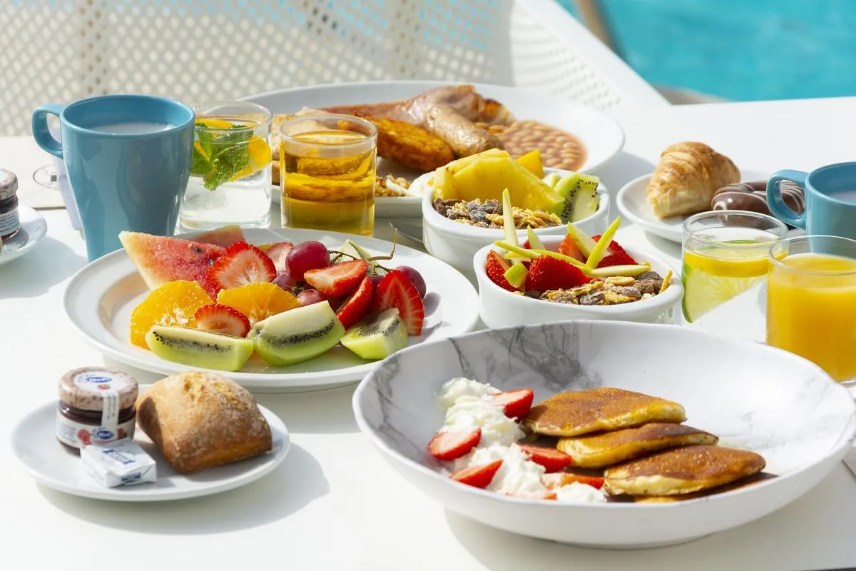 Breakfast (from 08:00 - 13:30) from the buffet.