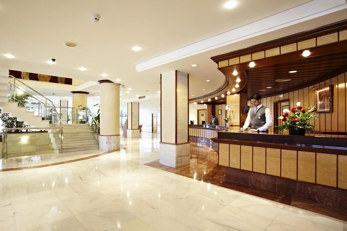 The 10-storey hotel has 341 rooms in total. It is equipped with a 24h reception (check-in from 14:00, check-out until 12:00), a lobby with bar, 4 lifts, an air conditioning, a safe (for a fee), a parking area (for free) as well as a money changing facility. For the meals, there is a restaurant (air-conditioned). You will be warmly welcomed in both the hotel’s bars. WiFi is available for free. For guests dependent on a wheelchair the accommodation provides a barrier-free access and a wheelchair accessible lift. Laundry / ironing service and medical service are available for a fee. Pool: In the outdoor area of the mediterranean-style hotel you will find one heatable pool (approx. 249 m²) with a separate children´s pool (open from June to October). Here, there are sun umbrellas and sun loungers for free available. Refreshing beverages can be consumed directly at the pool bar (open from 10:00 - 00:00).