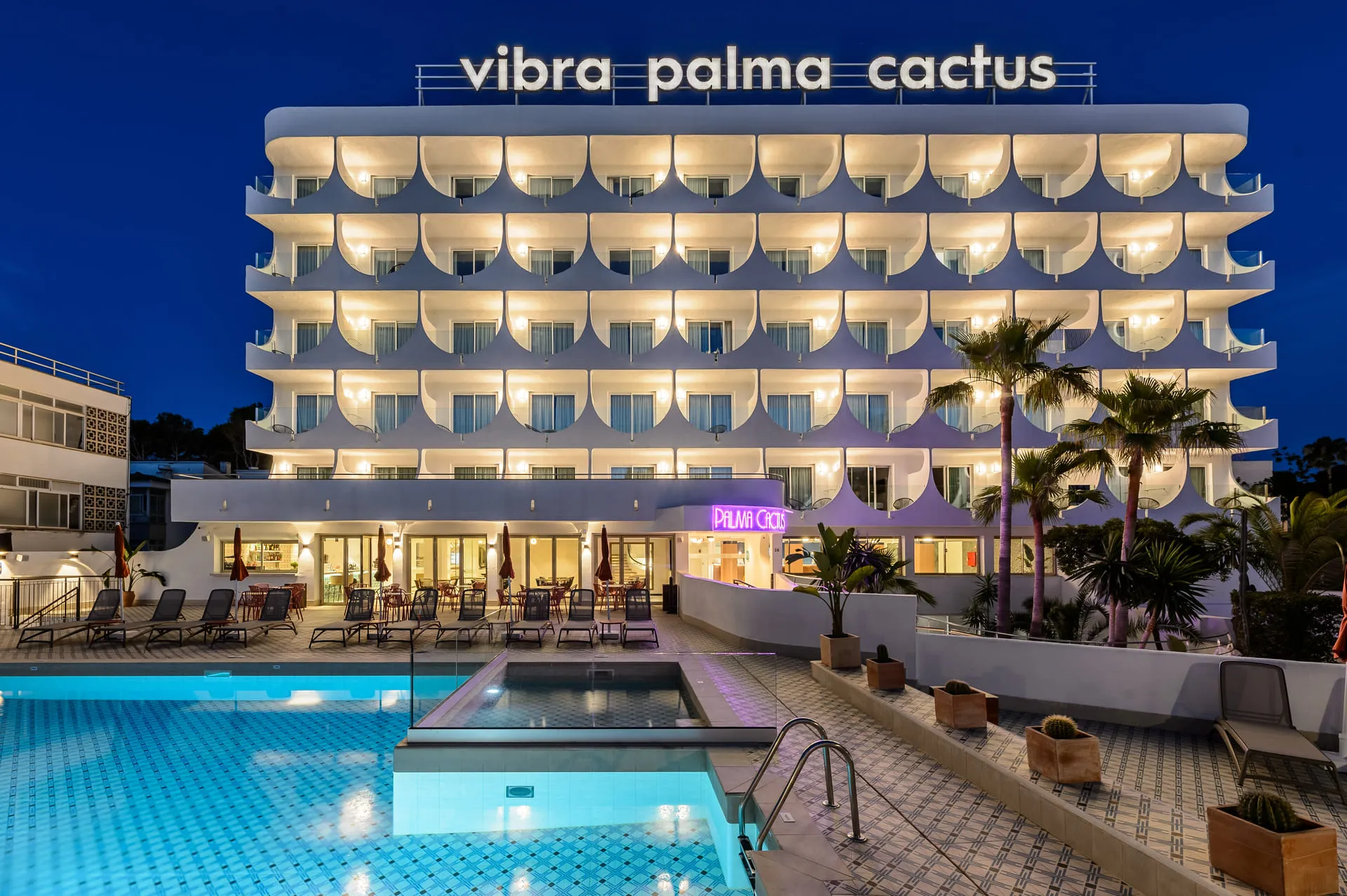The hotel Hotel Vibra Palma Cactus is located approximately 300 m from a beach. The hotel is equipped with a 24h reception, Wi-Fi, a lift, showers and changing rooms, parking spaces (for a fee) as well as a TV lounge. In the outdoor area of the property you will find a pool (open all year). You can store your luggage in the hotel's storage room. There is also a laundry service available at an additional cost to customers. Guests at the accommodation can get a wake-up call from the hotel personnel. If you want to explore the holiday region, you can use the car and motorbike rental service close to the hotel (extra fee). In addition, the hotel sells tickets for excursions. In your hotel, a lot of focus is placed on sustainability. This includes among others the provision of soap and shampoo dispensers. American Express, Euro/Master Card and Visa are accepted as means of payment. Due to its barrier-free facilities , such as barrier-free entrances, the hotel is also suitable for wheelchair users. Catering As catering services the hotel offers half board. Breakfast is offered from the buffet. Dinner is also served as a buffet. Your physical well-being is catered for by a restaurant with terrace (gluten-free dishes) and the pool bar. Distances