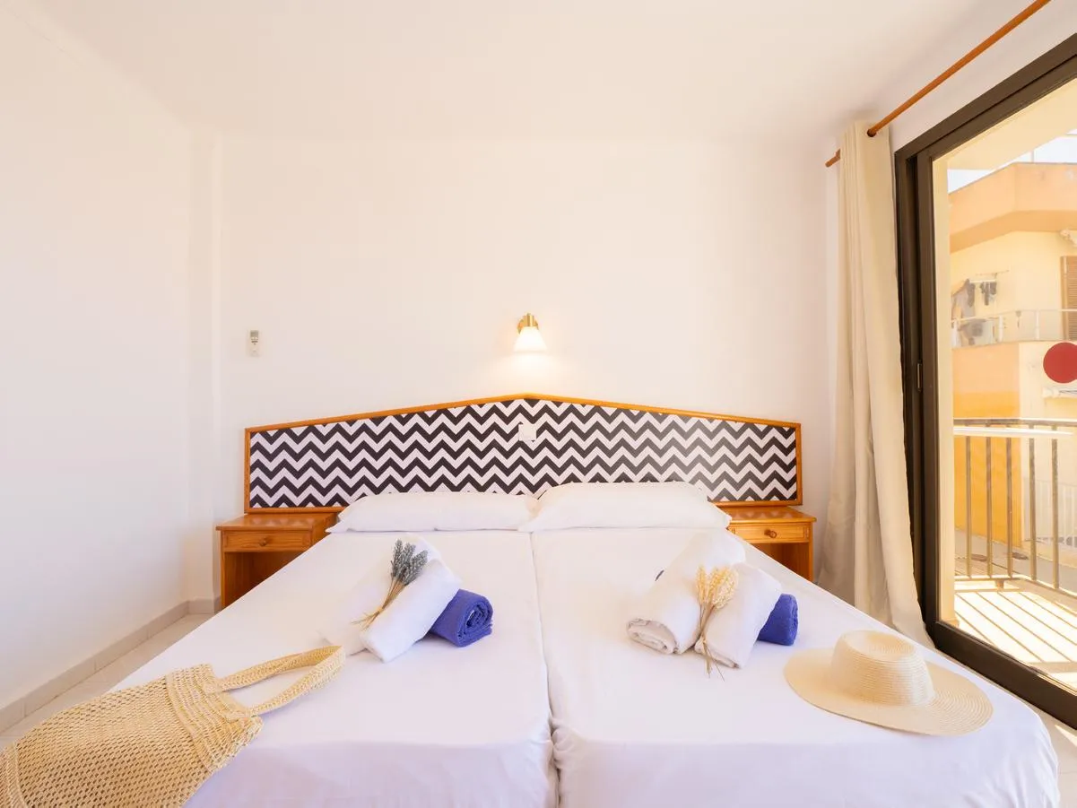 Approx. 600 m from beach is located the hotel Bella Maria Apartments. The airport (PMI) is approx. 65 km away.