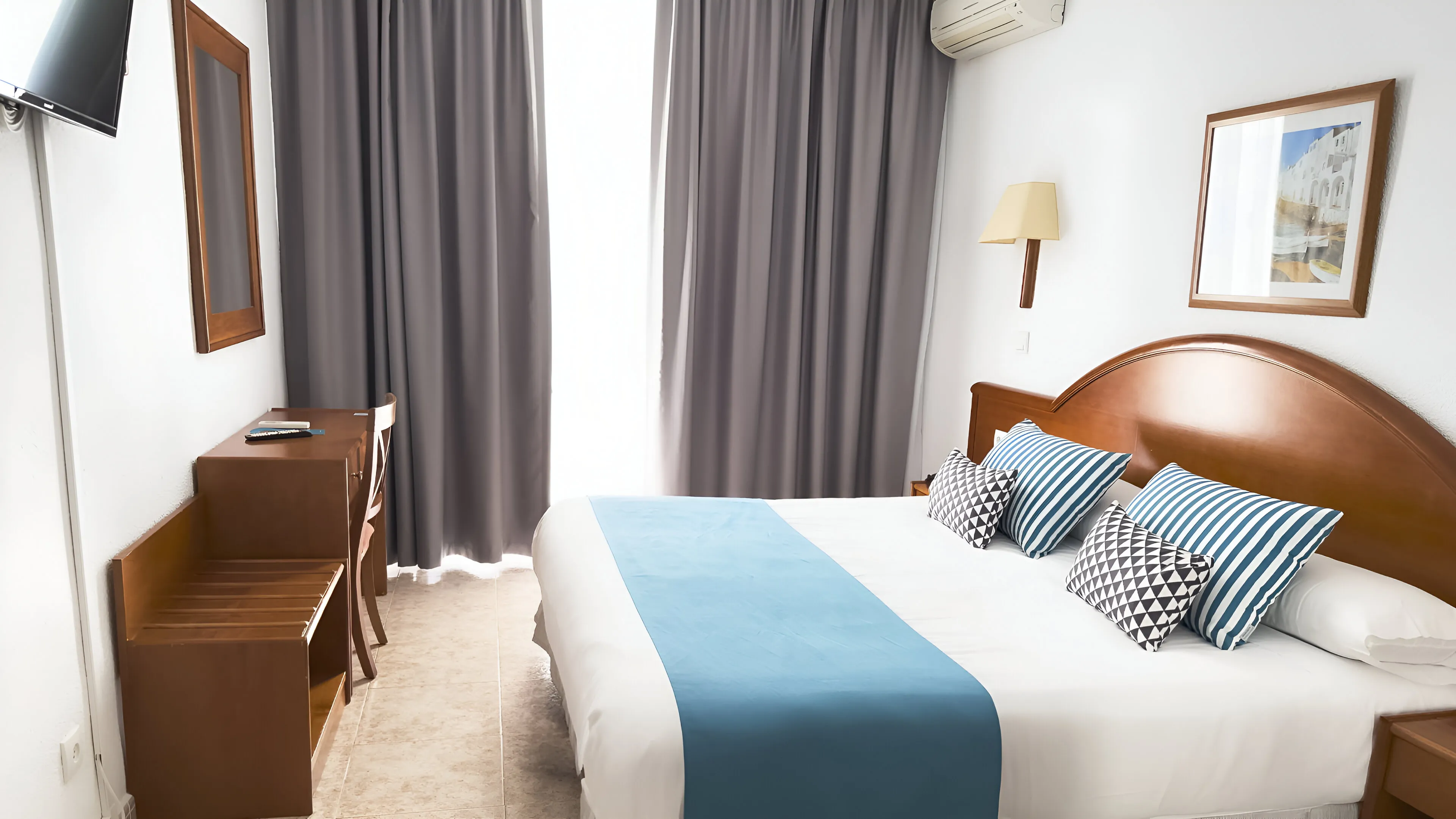 In the vicinity of the sandy beach is located the hotel BLUESEA Piscis - Adults Only. The hotel has a 24h reception, a lobby bar, Wi-Fi, a lift as well as a TV lounge. In the outdoor area you will find a pool that is open seasonally, where sun loungers, sun umbrellas and pool towels are available for free. There is also a children's pool. If necessary, you can contact the medical centre. If you want to explore the holiday region, you can use the car and motorbike rental service close to the hotel (extra fee). Due to its barrier-free facilities , such as barrier-free entrances, the hotel is also suitable for wheelchair users. Catering As catering services the hotel offers all-inclusive and half board. Breakfast is offered from the buffet. Lunch and dinner are also served from the buffet. For the meals, there are a buffet restaurant and the cafeteria as well as the pool bar. Distances