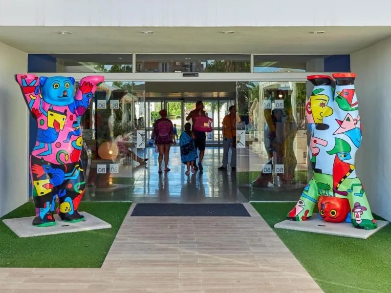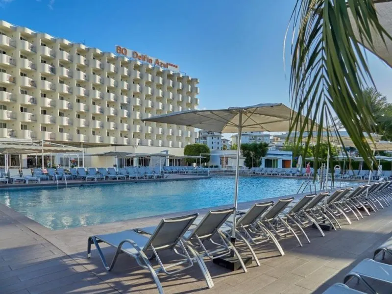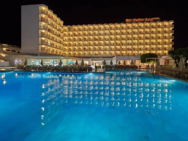 About 400 m from a public sandy beach is located the hotel BQ Delfin Azul Hotel. The nearest bars and restaurants can be found at a distance of around 100 m. The old town is around 1 km away. A supermarket and other shops you reach after around 200 m. The beach is to reach along the road and patrolled by a lifeguard. Here, there are cushions for a fee available. Directly next to the beach there is a promenade where you can take leisurely walks. The air-conditioned, GPS-verified hotel is equipped with a 24h reception (check-in is possible around the clock), a lobby bar, Wi-Fi, an internet corner, a lift, a first aid kit as well as a TV lounge with satellite TV. In the outdoor area of the property you will find a garden as well as a pool that is open seasonally, where you can rent pool towels for a fee and sun loungers are available for free. There is also a separate children's pool. You can store your valuables in the safe (extra fee), and your luggage in the hotel`s storage roomn. In addition, the hotel BQ Delfin Azul Hotel is video-monitored 24h a day. For the young hotel guests there is a playground. For very young guests, kid`s chairs, highchairs and cots can also be provided. For the smallest children prams can be rented in the hotel. There is also a laundry service available at an additional cost to customers as well as an ironing service. If necessary, you can contact the medical centre (for a fee). The energy supply is 220 Volts. If you want to explore the holiday region, you can use the car and motorbike rental service close to the hotel (extra fee). At the hotel reception, tickets are offered for excursions in the area. For guests on their honeymoon, the hotel has special offers such as a basket of fruit in the room. In your hotel, a lot of focus is placed on sustainability. This includes the provision of soap, shampoo and lotion dispensers, ecological meals, a central room air-conditioning, environmentally-friendly cleaning, the use of a closed-water circuit and environmentally-friendly transportation . That is why the hotel BQ Delfin Azul Hotel was also awarded a sustainability certificate. American Express, Euro/Master Card and EC cards are accepted as means of payment. Due to its barrier-free facilities , such as an automatic hotel door, barrier-free entrances, a wheelchair accessible lift, a handrail in the elevator and wheelchair-accessible bathrooms, the hotel is also suitable for wheelchair users. Catering As catering services the hotel offers half board, breakfast only and self-catering. Breakfast is offered from the buffet (extras on request). Enjoy your lunch à la carte. Dinner is also served as a buffet (extras on request). For the meals, there are a buffet restaurant with terrace (Mediterranean, calorie-reduced, gluten-free and vegetarian dishes) and the cafeteria as well as the pool bar. For dinner, guests are asked to wear appropriate clothing in the restaurant. Distances