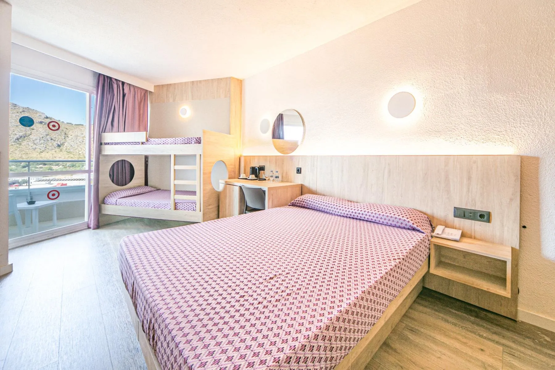 The hotel Club Mac is around 54 km from Palma De Mallorca (Alcudia around 2 km, Can Picafort around 10 km). A sandy beach is around 1,2 km from the hotel. At the beach, there are sun umbrellas and sun loungers for a fee. The nearest shopping facilities are located approx. 20 m from the hotel, and also a supermarket is in the vicinity of the hotel. There are restaurants and bars within a very short distance of the hotel. For evening dancing you will find a nightclub in a distance of approx. 400 m. For mobility during your holiday, there are a bus stop (approx. 25 m away), a car rental company and a motorcycle rental. For medical treatment in emergencies there is a hospital around 4 km away. The airport (PMI) is approx. 60 km away. To the next beach a shuttle service is available (charges may apply).