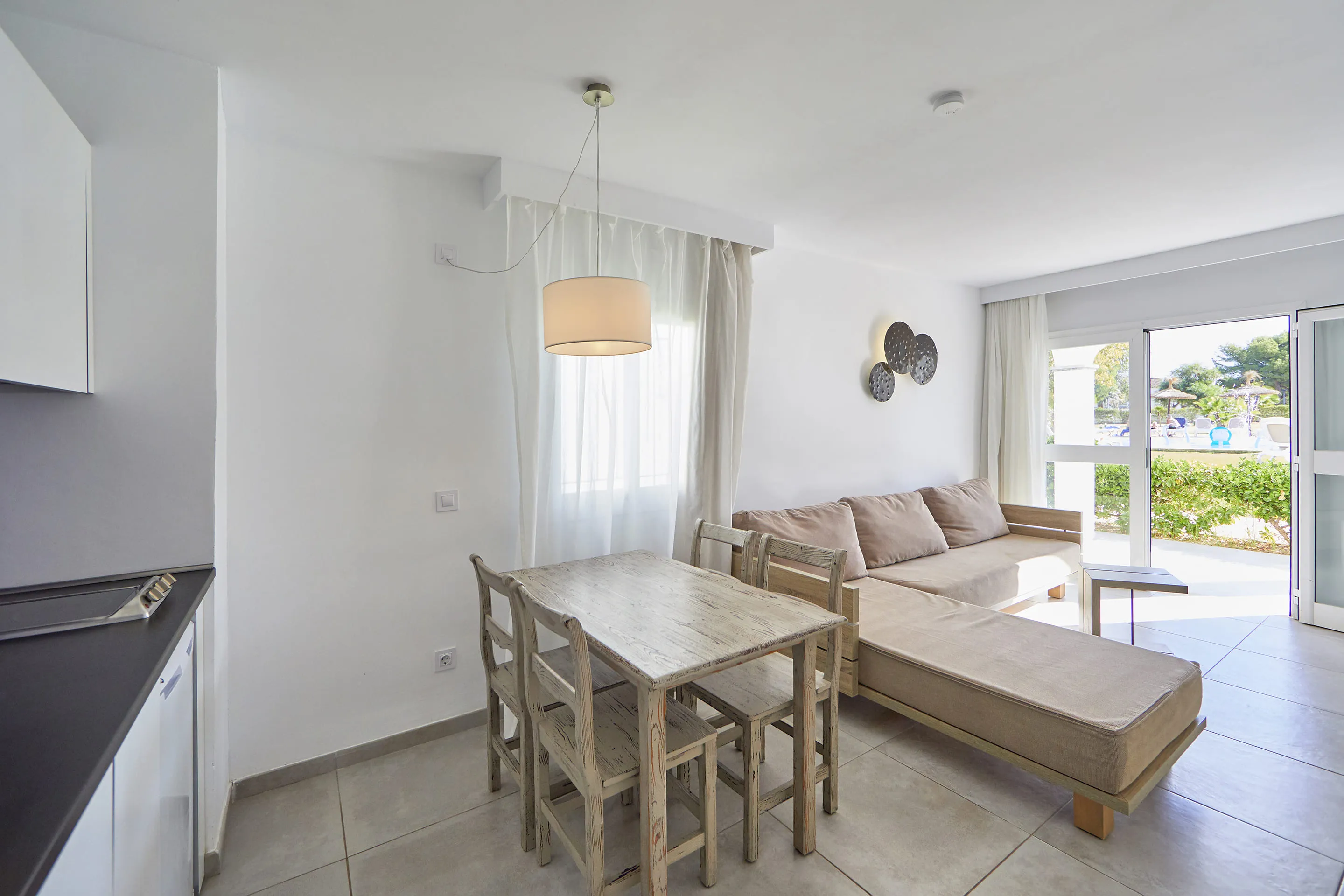 Around 400 m from a beach lies the aparthotel Seaclub Alcudia Mediterranean Resort. The hotel is equipped with a 24h reception, Wi-Fi as well as parking spaces. The hotel has Wi-Fi as well as parking spaces. In the outdoor area of the property you will find a garden as well as a pool that is open seasonally, where sun loungers, sun umbrellas and pool towels are available for free. For children there is also a children's pool. For very young guests, highchairs can be provided (for a fee). For the smallest children prams can be rented in the hotel. You can store your luggage in the hotel's storage room. If necessary, you can contact the medical centre (for a fee). Guests at the accommodation can get a wake-up call from the hotel personnel. If you want to explore the holiday region, you can use the car and motorbike rental service close to the hotel (extra fee). Due to its barrier-free facilities , such as barrier-free entrances and wheelchair accessible rooms, the hotel is also suitable for wheelchair users. Catering As catering services the hotel offers all-inclusive, half board, full board and breakfast only. Breakfast is offered from the buffet. Lunch and dinner are also served from the buffet. Your physical well-being is catered for by a buffet restaurant. Distances