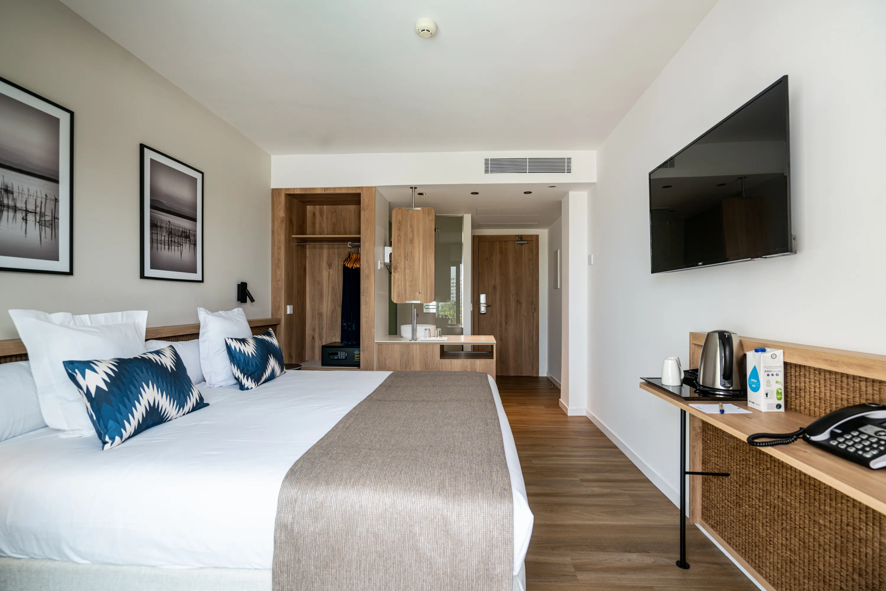 In the vicinity of the public sandy beach is located the hotel Hotel THB Bamboo Alcudia Adults Only. The city centre is around 2 km away. A supermarket is around 350 m away. The beach is awarded a blue flag. Here, there are cushions and beach towels available. Directly next to the beach there is a promenade where you can take leisurely walks. The air-conditioned, GPS-verified hotel has a 24h reception (check-in is possible around the clock), a lobby bar, Wi-Fi, 3 lifts, showers and changing rooms, a first aid kit as well as a TV lounge with satellite TV. In the outdoor area you will find a garden as well as a supervised salt water pool, where sun loungers, sun umbrellas and pool towels are available for free. Furthermore, you can relax outdoors on the sun terrace. You can store your valuables in the safe, and your luggage in the hotel`s storage room. There is also a laundry and ironing service. For your comfort there is a concierge service. If necessary, you can contact the medical centre at any time. At the reception, tickets are offered for excursions in the area. For guests on their honeymoon, the hotel has special offers such as special honeymoon packages. In your hotel, a lot of focus is placed on sustainability. This includes the provision of soap, shampoo and lotion dispensers and ecological meals. That is why the hotel Hotel THB Bamboo Alcudia Adults Only was also awarded a sustainability certificate. American Express, Euro/Master Card and Visa are accepted as means of payment. Due to its barrier-free facilities , such as wheelchair-accessible bathrooms, the hotel is also suitable for wheelchair users. Catering As catering services the hotel offers half board. Breakfast is offered continental or from the buffet. Dinner is also served as a buffet. For the meals, there are a buffet restaurant with terrace (calorie-reduced, gluten-free and vegetarian dishes) and a bar, the cafeteria as well as the pool bar. Distances