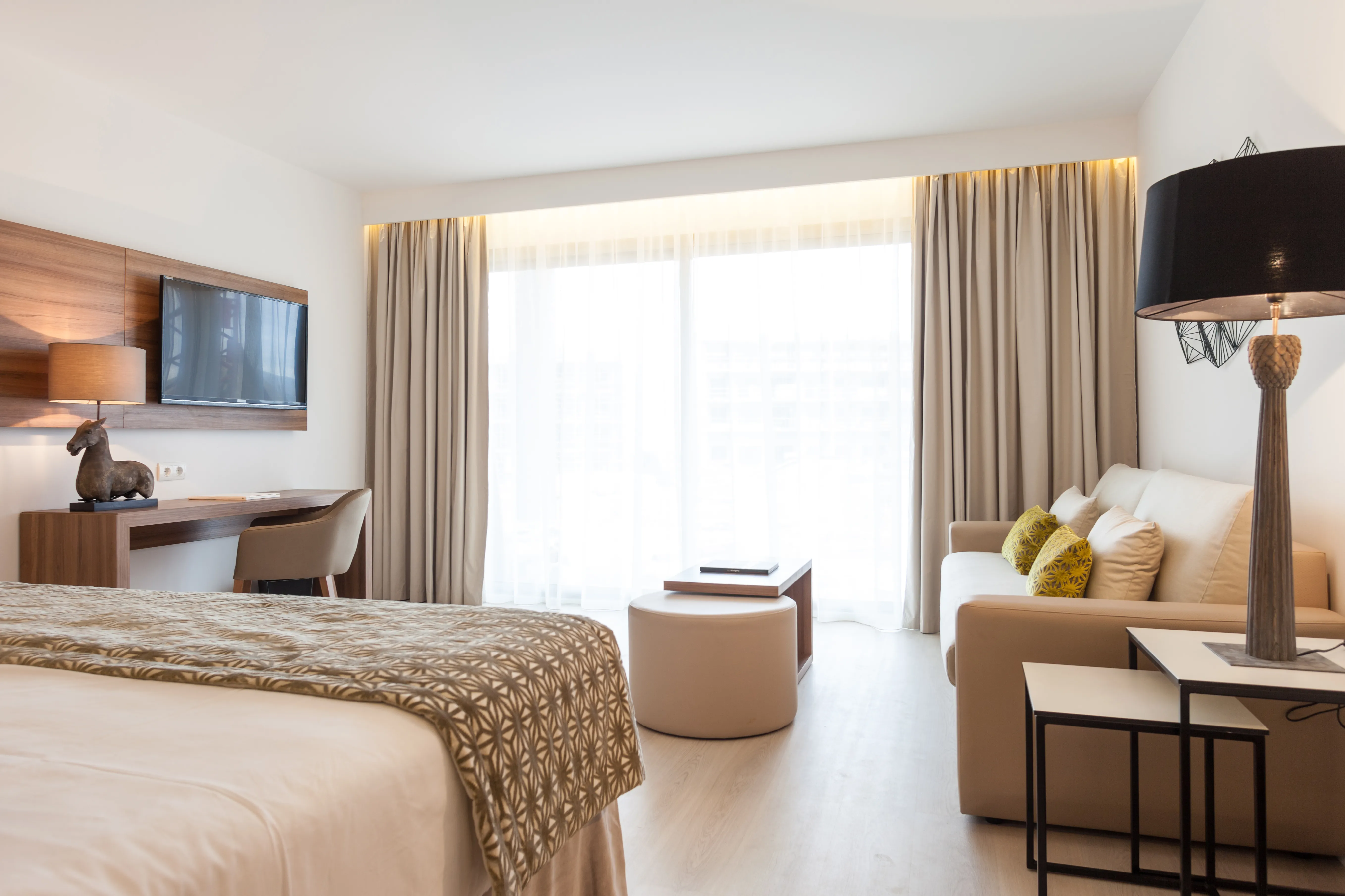A unique option in the Port of Alcudia. Its location, unbeatable. Quiet and centrally located at the same time. Just 300 meters from the beach, which can be reached by taking a stroll through the pedestrian streets of the center of Puerto de Alcudia, where there is a great offer of restaurants, bars and shops. Elegant, modern and charming. A few meters from the crystal clear waters of the Bay of Alcudia. In the spaciousness of the Zafiro Palace Alcudia you will find luxurious and comfortable suites, several swimming pools, a large solarium and many other leisure and leisure facilities to make the most of the wonderful climate of Mallorca. Each member of the family can enjoy their own experience according to their age thanks to our team of animation, our varied gastronomy, service, design and, above all, thanks to the hotel staff. Location:2015 Year of construction; 373 Total number of rooms; 4 Number of floors (main building); 361 Suites Hotel type:hotel Methods of payment:American Express; EC; Diners Club; MasterCard; Visa; Maestro; Visa Electrón; EuroCard Distances (in meters):Airport (6200); Beach (300) Facilities:Wheelchair-accessible; Car park; 24-hour reception; Check-in hour; Check-out hour; Mobile phone coverage; Wired Internet (Extra Fee); Wi-fi; Car hire; Laundry service; Medical service (Extra Fee); Bicycle hire service; Babysitting service (Extra Fee); Multilingual staff; Bellboy service; Air conditioning in public areas; Hotel safe; Lift access; Supermarket; Shop; Garden; Terrace; Bicycle storage; Concierge; Sun terrace; Gym; Newspapers; Luggage room; Clothes dryer; Towels and bed linen Catering:Café; Bar; 5 Restaurant; Highchairs; Poolside snack bar; Show cooking; Swim-up bar Business:4 Conference room; Projector; Printer; Photocopier; Fax Entertainment:2 Indoor freshwater pool; 9 Indoor heated pool; 10 Outdoor freshwater pool; 1 Children’s swimming area; Sun loungers; Parasols; Children playground; Kids’ club; Entertainment programme for adults; Entertainment programme for children; TV lounge Health:Sauna; Steam bath; Turkish bath (hamam); Massage (Extra Fee); Spa treatments (Extra Fee); Beauty salon