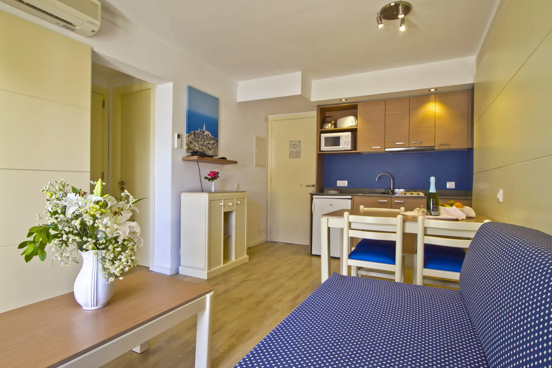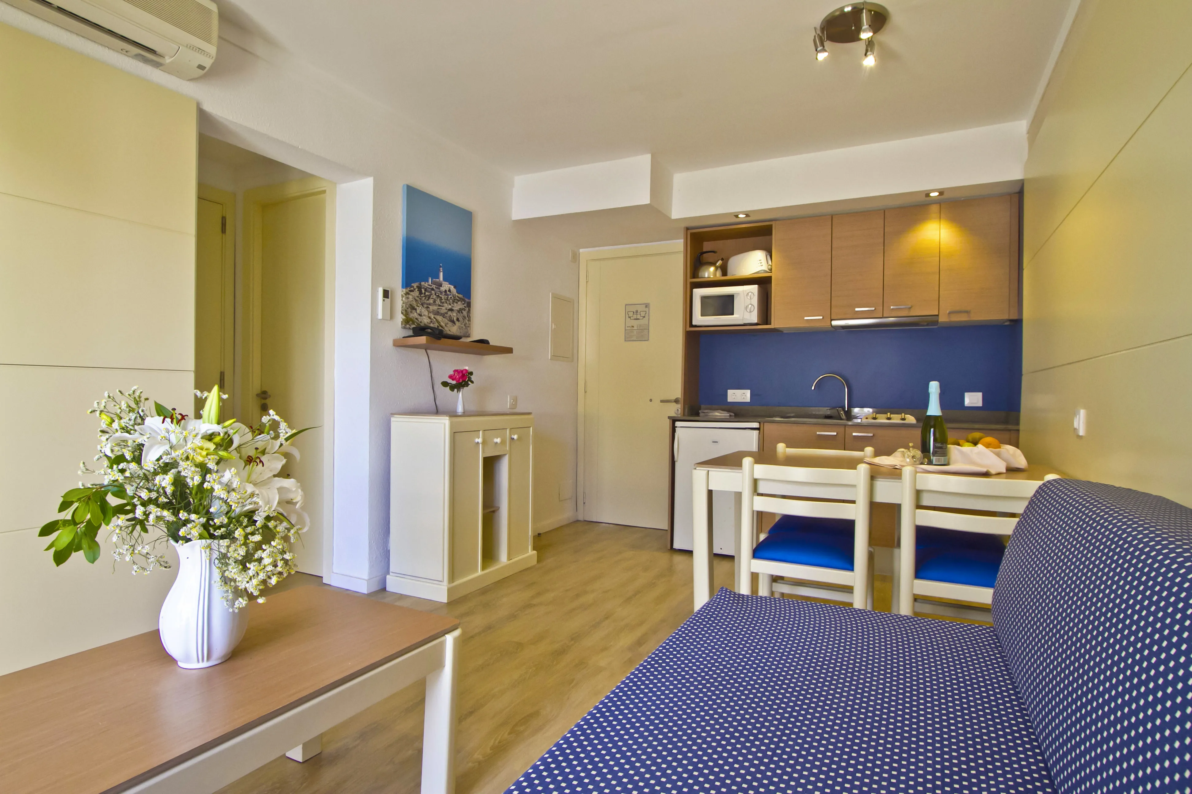 This pleasant and picturesque aparthotel offers all the conveniences and confort which are essential for a pleasant holiday. The complex consists of eight blocks with a total of 88 apartments surrounded by gardens and trees. The Aparthotel Flora is located in the northeast Pollensa of bay at only 100 metres from the beach and the town centre. This bay is located in the north cost of Majorca, is famous for its geographic placement at the foot of the Serra de Tramuntana. The guests will find in the Aparthotel Flora all the necessary infrastructure to enjoy a pleasant stay with their family or friends in a friendly atmosphere. Recently there has incorporated a Italian restaurant with a selected menu.