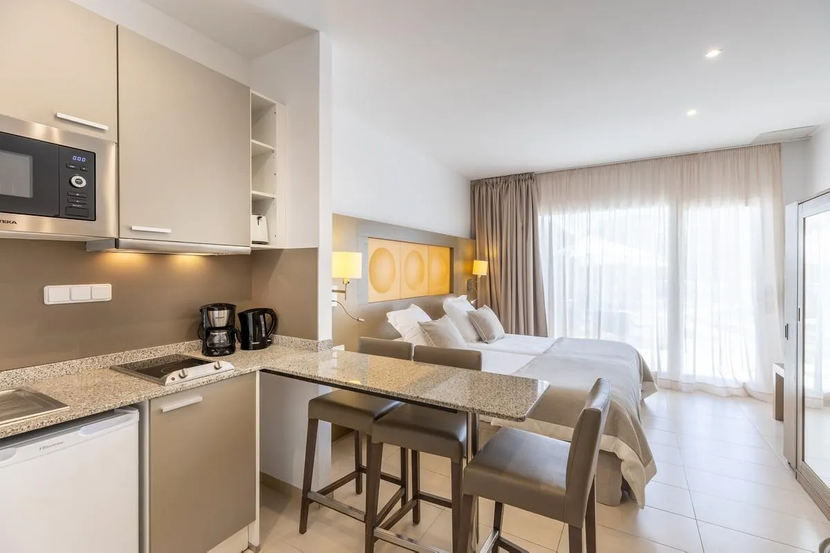 Descriere generală La cca. 150 m de o plajă cu nisip veți găsi hotelul Montelin Apartments Hoposa. Pe plajă sunt disponibile șezlonguri și umbrele de soare la un cost suplimentar. Un supermarket și alte magazine se găsesc la aprox. 150 m. La cele mai apropiate baruri și restaurante se poate ajunge, de asemenea, într-un timp foarte scurt. O discotecă aflată la aprox. 1 km vă invită la dans. Următoarele atracții pot fi accesate de la hotel: Mirador Es Colomer (cca. 6 km), Platja de Formentor (cca. 10 km) și Cap Formentor (cca. 21 km). Există posibilitatea de a închiria mașini și motociclete. De asemenea, aveți în apropiere o stație de autobuz (cca. 1 km) cea ce vă garantează mobilitatea pe insulă. Aeroportul (PMI) se află la aprox. 70 km. Facilități Hotelul dispune de un singur etaj și peste 24 camere. Acesta oferă oaspeților săi recepție deschisă 24h (check-in de la 14:00, check out până la 11:00), bar în hol, seif (contra cost) și birou de schimb valutar. Camerele au fost renovate în detaliu ultima dată în 2025. Pentru a servi masa vă stau la dispoziție un snackbar. Accesul la internet WiFi este disponibil gratuit pentru oaspeții hotelului. Serviciul de menaj este gratuit. Spălătorie, călcat și serviciul medical sunt disponibile la un cost suplimentar. Piscină Zona exterioară a hotelului decorat în stil mediteranean include o piscină cu apă dulce (deschisă din mai până în octombrie). Acolo sunt disponibile gratuit șezlonguri și umbrele de soare. La barul piscinei va puteți bucura de o băutura răcoritoare. Catering Mic dejun bufet suedez. Demipensiunea include micul dejun și cina. Sport/Leisure Este disponibil: Tenis de masă (contra cost), fitness și biliard (contra cost). La cca. 7 km de hotel este un teren de golf. Există serviciu de închiriere de biciclete. În plus parcare pentru biciclete (gratuit). Pentru distracția celor mici există un loc de joacă. Îngrijirea copiilor: babysitting (contra cost). Sală de jocuri. Informații suplimentare Pentru anumite facilități sau activități se pot aplica taxe suplimentare. Unele servicii depind de anotimp și de condițiile climatice locale. Limbi de serviciu: engleză, germană și spaniolă. Carduri de credit: Diners Club, Visa și Euro/MasterCard. Standard Studio (Balkon oder Terrasse): Dotate cu pat twin, o canapea extensibilă ca pat suplimentar, pardoseală cu gresie, chicinetă, încălzire controlată centralizat, balcon sau terasă, acces la internet (gratuit), seif (gratuit) și TV prin satelit precum și aer condiționat controlat central. Baie cu duș.