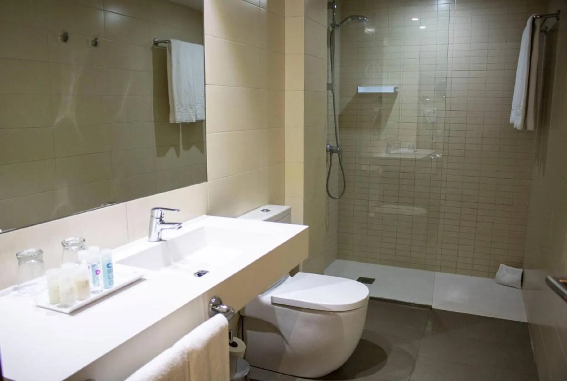 The aparthotel Hotel Hoposa Uyal is located next to a public sandy beach. The nearest bars and restaurants can be found at a distance of around 300 m. The old town is around 6 km away. A supermarket and other shops you also reach after approximately 300 m. There is a 24h shuttle service between the hotel and the airport (for a fee) 24h a day. On the beach are cushions for a fee available. The air-conditioned, GPS-verified hotel has a 24h reception (check-in is possible around the clock), a lobby bar, Wi-Fi, internet access, 2 lifts, a jacuzzi, showers and changing rooms, a first aid kit, parking spaces (limited) as well as a TV lounge with satellite TV. In the outdoor area of the property you will find a garden as well as a supervised pool, where sun loungers, sun umbrellas and pool towels are available for free. There is also an integrated children's pool with a non-swimming area. Furthermore, outside you can find a sun terrace. You can store your valuables in the safe, and your luggage in the hotel`s storage room. In addition, the hotel Hotel Hoposa Uyal is video-monitored 24h a day. For your entertainment, the hotel offers a library/reading room. For very young guests, kid`s chairs and cots can be provided. There is also a laundry service available at an additional cost to customers as well as an ironing service. For your comfort there is a concierge service. If necessary, you can contact the medical centre at any time (for a fee). The energy supply is 220 Volts. If you want to explore the holiday region, you can use the car and motorbike rental service close to the hotel. At the hotel reception, tickets are offered for excursions in the area. In your hotel, a lot of focus is placed on sustainability. This includes organic food and ecological meals, a central room air-conditioning and environmentally-friendly cleaning. That is why the hotel Hotel Hoposa Uyal was also awarded a sustainability certificate. The hotel requires that all guests pay a deposit upon arrival. American Express, Euro/Master Card and Visa are accepted as means of payment. Due to its barrier-free facilities , such as a sliding door in the entrance area, a hotel door that can be opened manually, barrier-free entrances and wheelchair accessible rooms, the hotel is also suitable for wheelchair users. Catering As catering services the hotel offers half board and breakfast only. Breakfast is offered from the buffet. Dinner is also served as a buffet with starters, salads and desserts (extras on request). Half board includes breakfast and lunch. For the meals, there are a restaurant (Mediterranean, calorie-reduced and gluten-free dishes) and a bar as well as the pool bar. The drinks menu of the hotel includes water, soft drinks, coffee and tea, beer and wine. Alcoholic beverages are not served in the hotel. Distances
