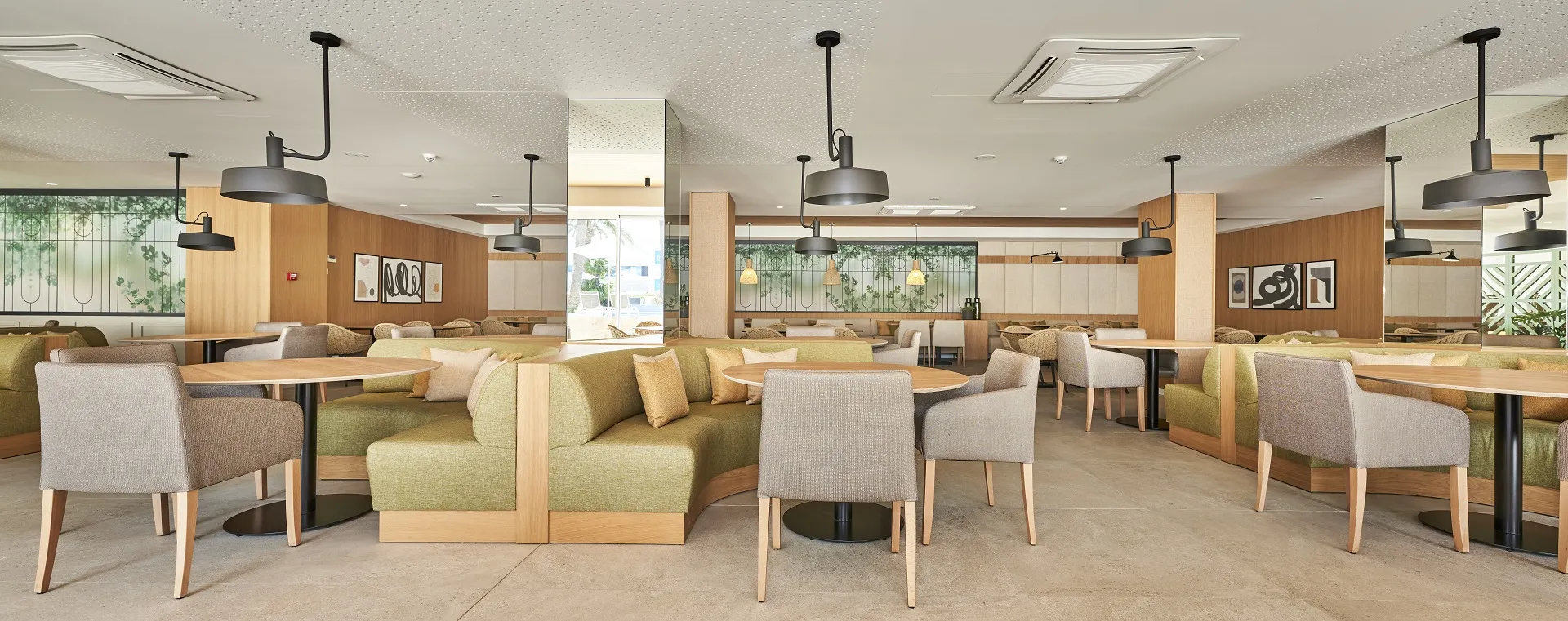 The aparthotel Hoposa Villaconcha Family & Sport is located approximately 50 m from a beach. The nearest bars and restaurants are located directly next to the building. The old town is around 7 km away. You can find a range of shops and a supermarket directly on your doorstep. There is a 24h shuttle service between the hotel and the airport (for a fee) 24h a day. Nearby there is a disco which offers entertainment in high season. The air-conditioned, GPS-verified hotel has a 24h reception (check-in is possible around the clock), a lobby bar, Wi-Fi, internet access, 2 lifts, a jacuzzi, showers and changing rooms, a first aid kit as well as a TV lounge with satellite TV. In the outdoor area of the property you will find a garden as well as a supervised pool, where sun loungers, sun umbrellas and pool towels are available for free. There is also a separate children's pool with 2 water slides (type twister/tunnel slide). Furthermore, you can relax outdoors on the sun terrace. You can store your valuables in the safe, and your luggage in the hotel`s storage room. In addition, the hotel Hoposa Villaconcha Family & Sport is video-monitored 24h a day. For the young hotel guests there is a playground. For very young guests, kid`s chairs and cots can also be provided. There is also a laundry service available at an additional cost to customers as well as an ironing service. For your comfort there is a concierge service. If necessary, you can contact the medical centre at any time (for a fee). The energy supply is 240 Volts. For conventions and other business meetings, the hotel offers a conference area with printer, overhead projector as well as internet access. If you want to explore the holiday region, you can use the car and motorbike rental service close to the hotel. At the hotel reception, tickets are offered for excursions in the area. In your hotel, a lot of focus is placed on sustainability. This includes waste segregation in the rooms, the hotel`s own recycling bins, organic food and ecological meals and environmentally-friendly cleaning. That is why the hotel Hoposa Villaconcha Family & Sport was also awarded a sustainability certificate. For water may incur extra charges at the hotel. The hotel requires that all guests pay a deposit upon arrival. American Express, Euro/Master Card and Visa are accepted as means of payment. Due to its barrier-free facilities , such as a sliding door in the entrance area, a hotel door that can be opened manually, barrier-free entrances, wheelchair accessible rooms, a handrail in the elevator and wheelchair-accessible bathrooms, the hotel is also suitable for wheelchair users. Catering As catering services the hotel offers half board, breakfast only and self-catering. Breakfast is offered from the buffet. Enjoy your lunch with starters and desserts as well as salads à la carte (extras on request). Dinner is also served as a buffet with starters, salads and desserts. Half board includes breakfast and lunch. For the meals, there are a buffet restaurant with terrace (Mediterranean, gluten-free and vegetarian dishes) and a bar, the cafeteria as well as the pool bar. The drinks menu of the hotel includes water, soft drinks, coffee and tea, beer and wine. Alcoholic beverages are not served in the hotel. Distances