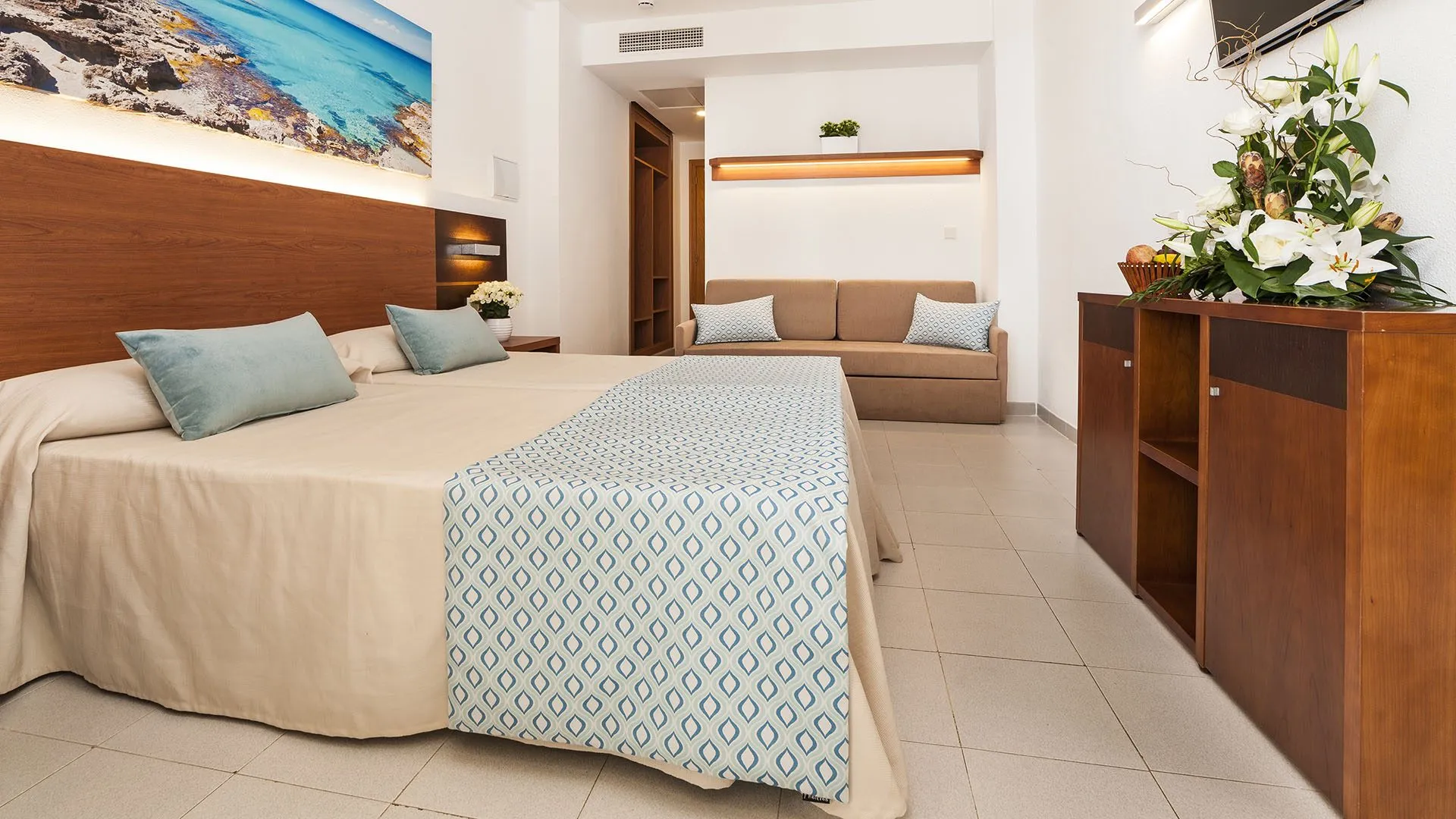 The accommodation Globales Bouganvilla is located approximately 1,3 km from a beach. The hotel is equipped with a 24h reception, a lobby bar, Wi-Fi, a supermarket and other shops as well as a boutique. In the outdoor area you will find a garden as well as a pool that is open seasonally, where sun loungers and sun umbrellas are available for free. For children there is also a separate children's pool. Furthermore, outside you can find a terrace. For the young hotel guests there is a playground. There is also a laundry service available at an additional cost to customers. If necessary, you can contact the medical centre (for a fee). The energy supply is 220 Volts. If you want to explore the holiday region, you can use the car rental service close to the hotel (extra fee). Euro/Master Card and Visa are accepted as means of payment. Catering As catering services the hotel offers all-inclusive. Breakfast is offered continental. Lunch and dinner are served from the buffet. For the meals, there are a buffet restaurant and the pool bar. The drinks menu of the hotel includes water, soft drinks and wine. Distances