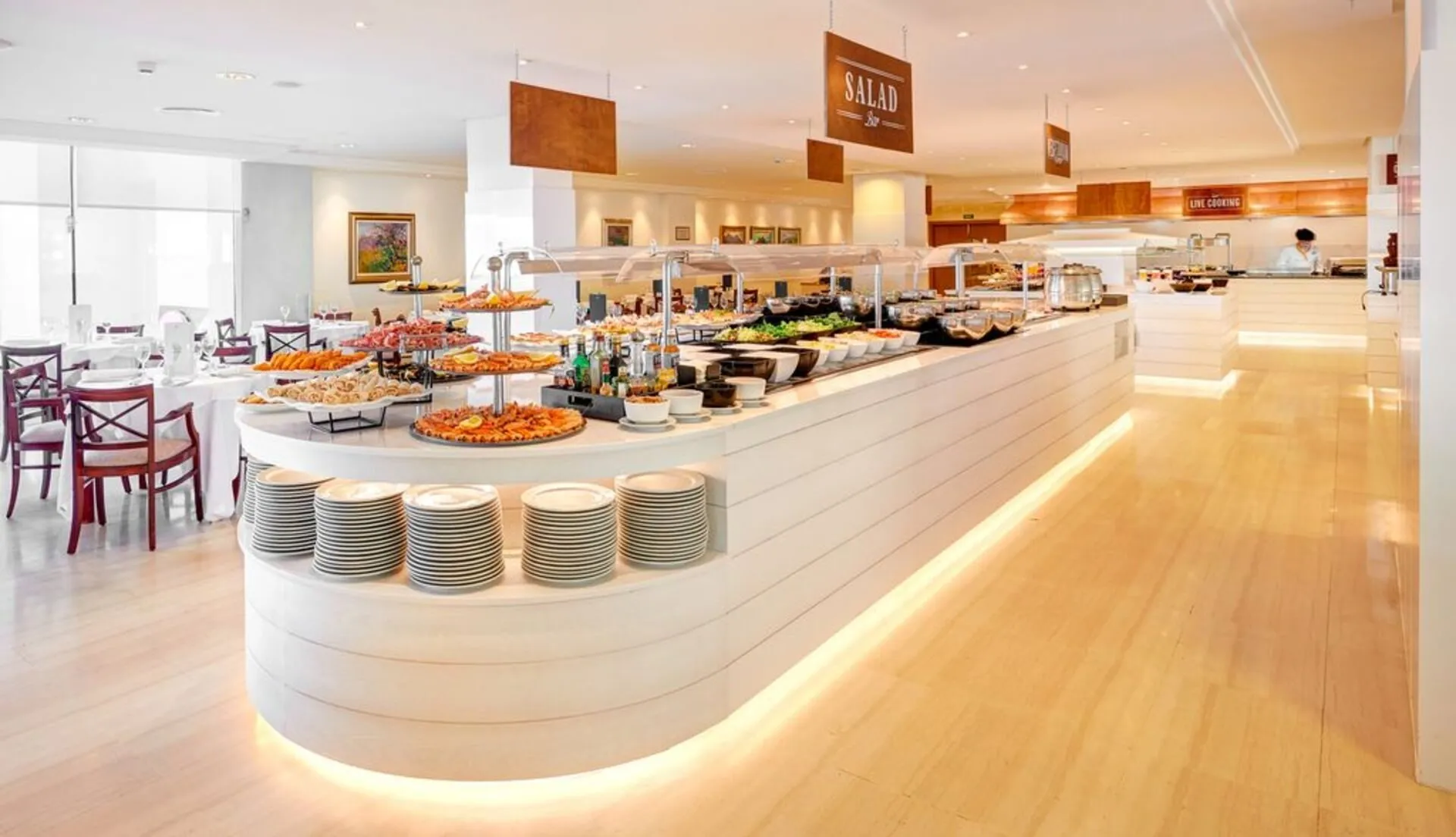 About 150 m from a beach lies the accommodation Hipotels Coma Gran. Shops are right on your doorstep. There is a shuttle between the hotel and the airport (for a fee). On the beach are cushions and sun umbrellas for a fee available. Cold drinks are served at the bar on the beach. The air-conditioned hotel has a 24h reception, a lounge, a lobby bar, Wi-Fi, 5 lifts as well as a first aid kit. In the outdoor area you will find a garden as well as a pool that is open seasonally, where sun loungers, sun umbrellas and pool towels are available for free. There is also a children's pool with a water slide (type open/tunnel slide). Furthermore, you can relax outdoors on a terrace. Inside the hotel you can use an indoor pool. For the young hotel guests there is a playground. You can store your luggage in the hotel's storage room. There is also a laundry service available at an additional cost to customers as well as an ironing service. Ironing equipment can also be rented at the hotel for a fee. The energy supply is 220 Volts. For conventions and other business meetings, the hotel offers a conference area. If you want to explore the holiday region, you can use the car rental service close to the hotel (extra fee). Euro/Master Card and Visa are accepted as means of payment. Due to its barrier-free facilities , such as barrier-free entrances and wheelchair-accessible bathrooms, the hotel is also suitable for wheelchair users. Catering Breakfast is offered from the buffet. Lunch and dinner are also served from the buffet. For the meals, there are a restaurant (gluten-free and vegetarian dishes) and the pool bar. Distances