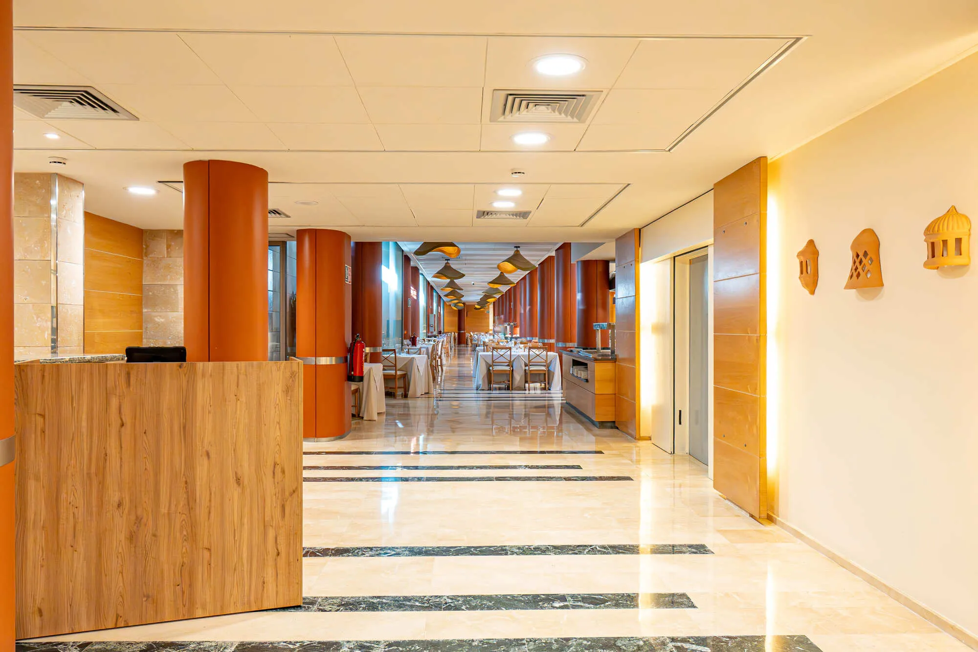 The hotel Hotel Intelier Rosella is located approximately 500 m from a public sandy beach. The nearest bars and restaurants can be found at a distance of around 300 m. The old town is around 800 m away. A supermarket and other shops you reach after around 600 m. Nearby there is a golf course which offers entertainment in high season. Directly next to the beach there is a promenade where you can take leisurely walks. The air-conditioned, GPS-verified hotel has a 24h reception (check-in is possible around the clock), a lobby bar, Wi-Fi, internet access, 2 lifts, showers and changing rooms, a first aid kit, parking spaces (limited) as well as a TV lounge with satellite TV. In the outdoor area you will find a garden as well as a supervised pool, where sun loungers, sun umbrellas and pool towels are available for free. For children there is also an integrated children's pool with a non-swimming area. Furthermore, outside you can find a sun terrace. You can store your valuables in the safe, and your luggage in the hotel`s storage room. In addition, the hotel Hotel Intelier Rosella is video-monitored 24h a day. For the young hotel guests there is a playground. For very young guests, cots can also be provided. There is also a laundry service. Ironing equipment can be borrowed at the hotel. For your comfort there is a concierge service. The energy supply is 220 Volts. If you want to explore the holiday region, you can use the car and motorbike rental service close to the hotel. In addition, the hotel sells tickets for excursions. In your hotel, a lot of focus is placed on sustainability. This includes the provision of soap and shampoo dispensers, organic food and ecological meals, a central room air-conditioning and environmentally-friendly cleaning. That is why the hotel Hotel Intelier Rosella was also awarded a sustainability certificate. American Express, Euro/Master Card and Visa are accepted as means of payment. Due to its barrier-free facilities , such as a sliding door in the entrance area, an automatic hotel door, barrier-free entrances, wheelchair accessible rooms, a wheelchair accessible lift, a handrail in the elevator and wheelchair-accessible bathrooms, the hotel is also suitable for wheelchair users. Catering As catering services the hotel offers half board and full board. Breakfast is offered from the buffet. Enjoy your lunch à la carte with starters, salads and desserts. Dinner is also served as a buffet with starters, salads and desserts. For the meals, there are a buffet restaurant with terrace (Mediterranean, calorie-reduced, gluten-free and vegetarian dishes) and 2 bars, the cafeteria as well as the pool bar. The drinks menu of the hotel includes water, soft drinks, coffee and tea, beer and wine. A picnic bench can be used by guests for self-catering. Appropriate clothing is required for lunch and dinner. Distances