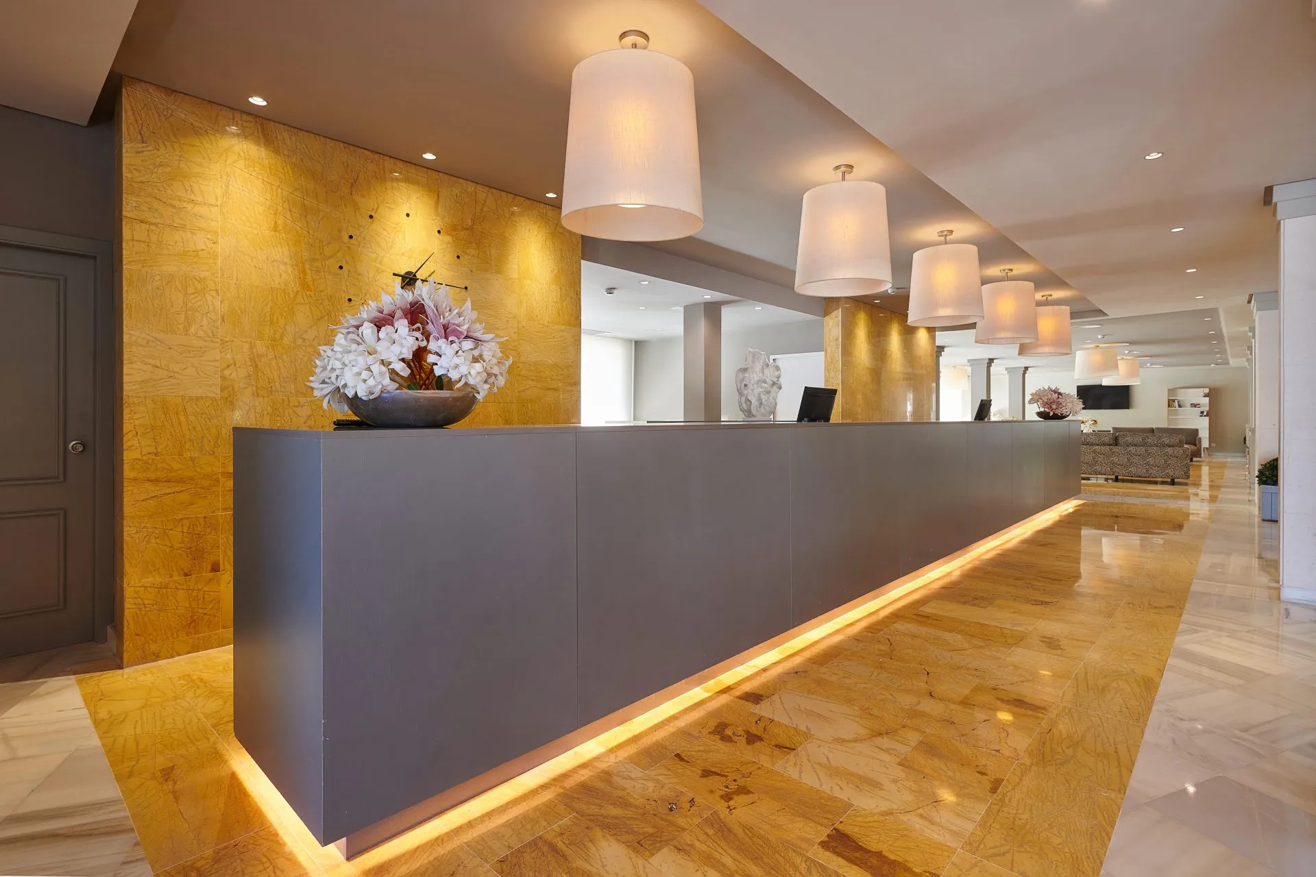 Around 350 m from a public sandy beach lies the aparthotel Protur Badia Park Aparthotel. The nearest restaurants and bars can be reached in a few minutes on foot. You can find a range of shops and a supermarket directly on your doorstep. There is a shuttle between the hotel and the airport (for a fee). Nearby there is a disco which offers entertainment in high season. The beach is awarded a blue flag. Here, there are beach towels available. Directly next to the beach there is a promenade where you can take leisurely walks. The air-conditioned, GPS-verified hotel has a 24h reception (check-in is possible around the clock), a lobby bar, Wi-Fi, internet access, a lift, showers and changing rooms, a first aid kit as well as a TV lounge with satellite TV. In the outdoor area of the property you will find a garden as well as a supervised pool, where sun loungers and pool towels are available for free. There is also a children's pool with a water slide (type open slide). Furthermore, outside you can find a sun terrace. Inside the hotel you can use a heated indoor pool. You can store your valuables in the safe, and your luggage in the hotel`s storage room. In addition, the hotel Protur Badia Park Aparthotel is video-monitored 24h a day. For the young hotel guests there is a playground. For very young guests, kid`s chairs, highchairs and cots can also be provided. For the smallest children prams can be rented in the hotel. For your comfort, in addition to the concierge service the hotel page will ensure you are looked after. If necessary, you can contact the medical centre at any time (for a fee). The energy supply is 220 Volts. If you want to explore the holiday region, you can use the car and motorbike rental service close to the hotel (extra fee). In addition, the hotel sells tickets for excursions. Because of its environmentally friendly management, the hotel Protur Badia Park Aparthotel has been awarded a sustainability certificate. Euro/Master Card and Visa are accepted as means of payment. Due to its barrier-free facilities , such as an automatic hotel door, barrier-free entrances, wheelchair accessible rooms and wheelchair-accessible bathrooms, the hotel is also suitable for wheelchair users. Catering As catering services the hotel offers all-inclusive. Breakfast is offered from the buffet. Dinner is also served as a buffet. For the meals, there are a restaurant with terrace (Italian dishes) and a bar, the cafeteria as well as the pool bar. Distances