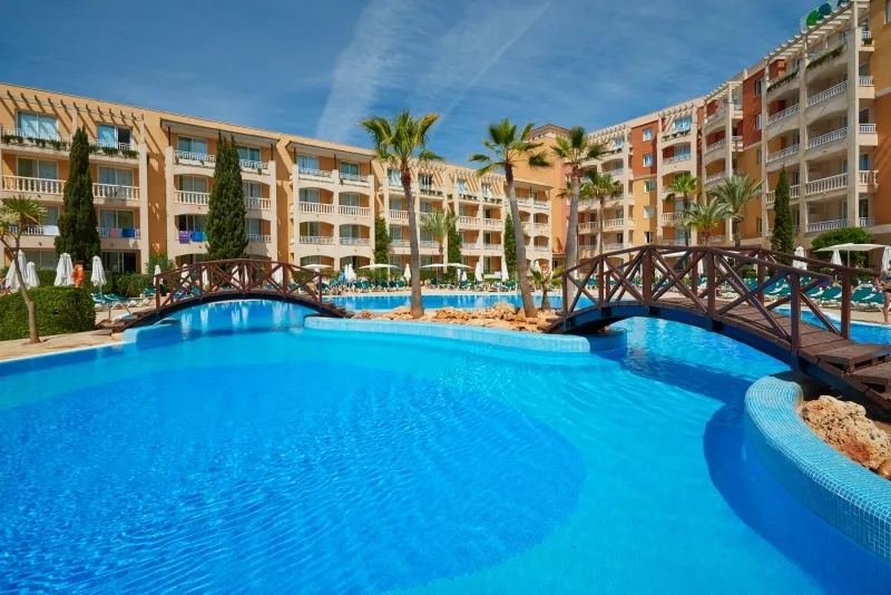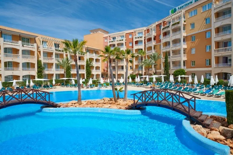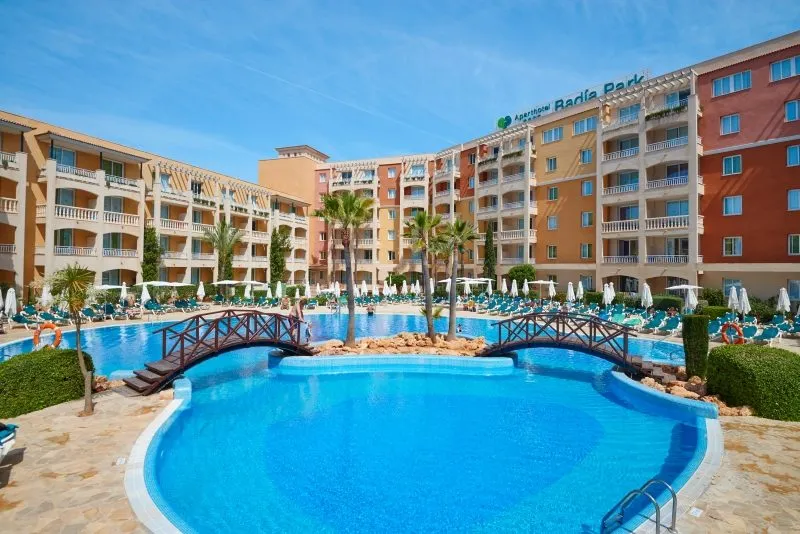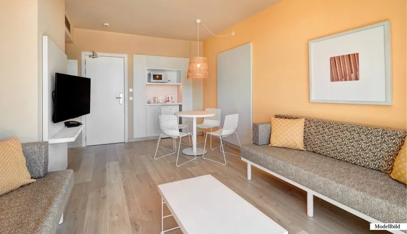 About 350 m from a beach lies the apart hotel Protur Vista Badía Aparthotel. The city centre is around 1 km away. There is a shuttle between the hotel and the airport (for a fee). The air-conditioned hotel has a lobby bar, Wi-Fi, an internet corner, a lift, a jacuzzi, parking spaces as well as a TV lounge. In the outdoor area of the property you will find a garden as well as a heated pool that is open seasonally (open all year), where you can rent pool towels for a fee. For children there is also a children's pool. Furthermore, outside you can find a terrace. Inside the hotel you can use a heated indoor pool. You can store your valuables in the safe (extra fee), and your luggage in the hotel`s storage roomn. For the young hotel guests there is a playground. There is also a laundry service available at an additional cost to customers. If necessary, you can contact the medical centre (for a fee). Guests at the accommodation can get a wake-up call from the hotel personnel. If you want to explore the holiday region, you can use the car rental service close to the hotel (extra fee). Due to its barrier-free facilities , such as barrier-free entrances and wheelchair-accessible bathrooms, the hotel is also suitable for wheelchair users. Catering As catering services the hotel offers all-inclusive and breakfast only. Breakfast is offered from the buffet. Lunch and dinner are also served from the buffet. For the meals, there are a buffet restaurant (Italian dishes) and the pool bar. For dinner, guests are asked to wear appropriate clothing in the restaurant. Distances