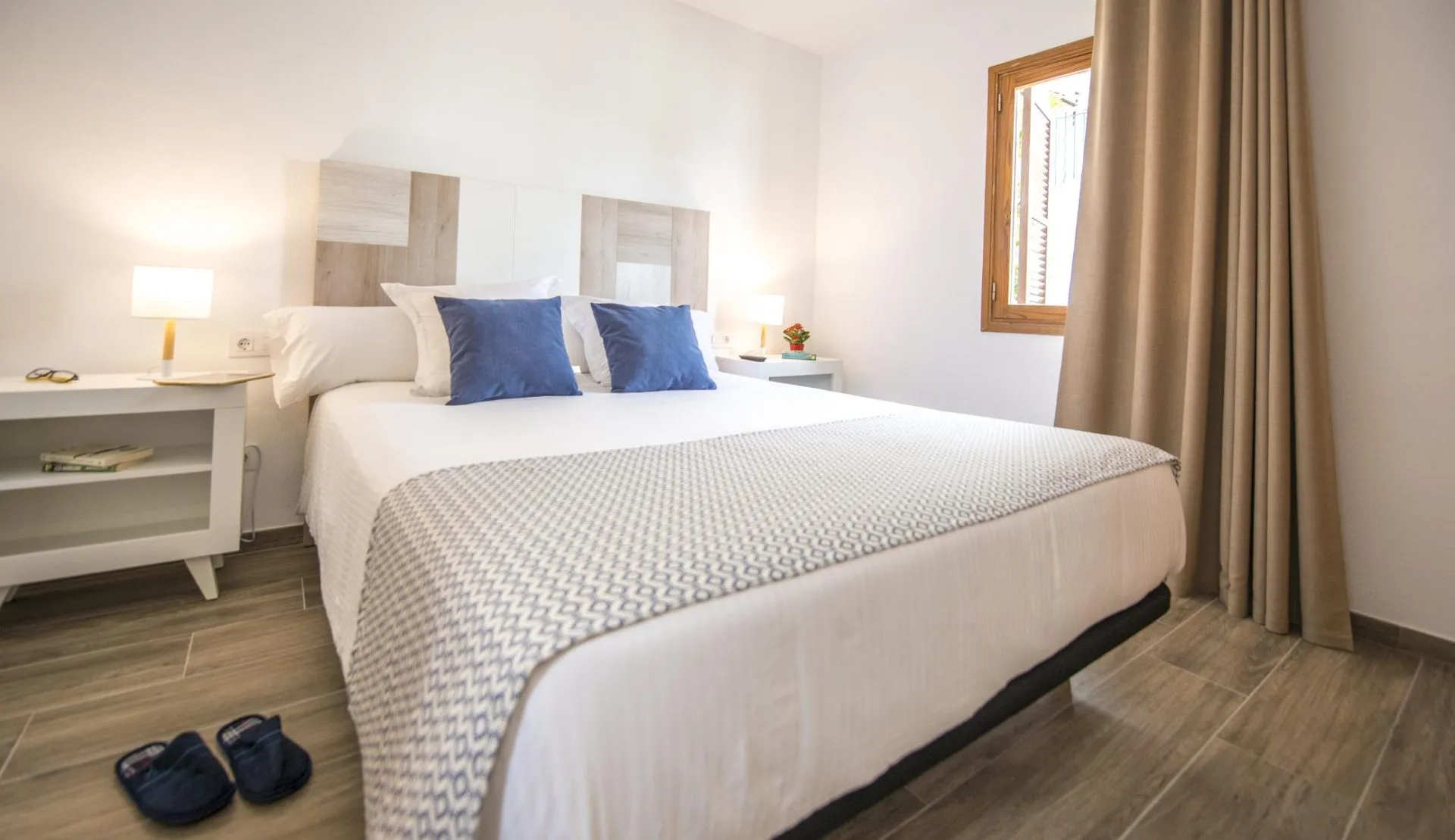 Descriere generală La cca. 100 m de o plajă cu nisip veți găsi hotelul FlipFlop Surfing Playa Apartments. Pe plajă sunt disponibile umbrele de soare și șezlonguri la un cost suplimentar. Orașul Peguera este la aprox. 5 km (Calvia cca. 5 km, Palma de Mallorca cca. 17 km). Un supermarket este la cca. 300 m. La cele mai apropiate baruri și restaurante se poate ajunge într-un timp foarte scurt. O discotecă aflată la aprox. 300 m vă invită la dans. Următoarele atracții pot fi accesate de la hotel: Jungle Park (cca. 800 m), Western Water Park (cca. 7 km) și Marina Port Adriano. Hotelul dispune de serviciu de rentacar. De asemenea, aveți în apropiere o stație de autobuz (direct la hotel) cea ce vă garantează mobilitatea pe insulă. Aeroportul (PMI) se află la aprox. 30 km. Facilități Hotelul, care a fost renovat parțial în 2024, dispune de 4 etaje și peste 74 camere repartizate între o clădire principală și un total de 6 clădiri secundare. Acesta oferă oaspeților săi recepție (check-in de la 15:00, check out până la 12:00), lobby cu bar, aer condiționat, seif (contra cost) și parcare (contra cost). Pentru a servi masa aveți la dispoziție un restaurant cu aer condiționat și un snackbar. Accesul la internet WiFi este disponibil gratuit pentru oaspeții hotelului. Serviciul de menaj este gratuit. Spălătorie și serviciul medical sunt disponibile la un cost suplimentar. Piscină În grădinile acestui hotelul decorat în stil mediteranean există o piscină cu apă dulce precum și o piscină separată pentru copii (deschisă din mai până în octombrie). La piscină sunt disponibile gratuit șezlonguri și umbrele de soare. Catering Mic dejun bufet suedez. Sport/Leisure La cca. 4 km de hotel este un teren de golf. Există serviciu de închiriere de biciclete. Informații suplimentare Pentru anumite facilități sau activități se pot aplica taxe suplimentare. Unele servicii depind de anotimp și de condițiile climatice locale. Limbi de serviciu: engleză, germană și spaniolă. Carduri de credit: Visa și Euro/MasterCard. 1 Schlafzimmer Standard Apartment (Balkon oder Terrasse): Cameră cu living, pat dublu, o canapea extensibilă ca pat suplimentar, pat pentru bebeluși (gratuit), chicinetă, încălzire controlată centralizat, ceainic (gratuit), balcon sau terasă, acces la internet (gratuit), seif (contra cost) și TV prin satelit precum și aer condiționat controlat central. Baie cu duș. Prosoapele și lenjeria de pat se schimbă de 2 ori pe săptămână. Dimensiune: 37 m². 1 Schlafzimmer Standard Apartment (Poolblick, Balkon oder Terrasse): Dotate cu living, pat dublu, o canapea extensibilă ca pat suplimentar, pat pentru bebeluși (gratuit), chicinetă, încălzire controlată centralizat, ceainic (gratuit), balcon sau terasă, acces la internet (gratuit), seif (contra cost) și TV prin satelit precum și aer condiționat controlat central. Baie cu duș. Prosoapele și lenjeria de pat se schimbă de 2 ori pe săptămână. Dimensiune: 37 m². 1 Schlafzimmer Standard Apartment (Meerblick, Balkon oder Terrasse): Dotate cu living, pat dublu, o canapea extensibilă ca pat suplimentar, pat pentru bebeluși (gratuit), chicinetă, încălzire controlată centralizat, ceainic (gratuit), balcon sau terasă, acces la internet (gratuit), seif (contra cost) și TV prin satelit precum și aer condiționat controlat central. Baie cu duș. Prosoapele și lenjeria de pat se schimbă de 2 ori pe săptămână. Dimensiune: 37 m². 1 Schlafzimmer Terrace Apartment: Cameră cu living, pat dublu, o canapea extensibilă ca pat suplimentar, pat pentru bebeluși (gratuit), chicinetă, încălzire controlată centralizat, ceainic (gratuit), acces la internet (gratuit), seif (contra cost) și TV prin satelit precum și aer condiționat controlat central. Baie cu duș. Prosoapele și lenjeria de pat se schimbă de 2 ori pe săptămână. Dimensiune: 37 m².