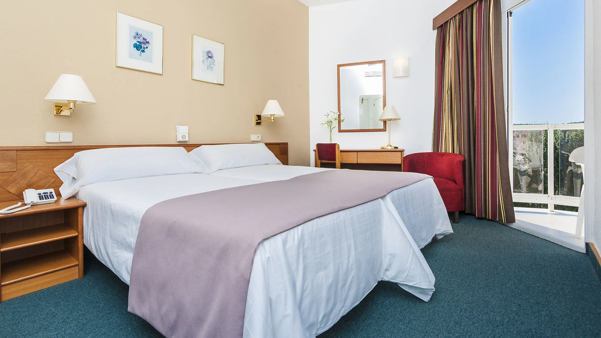 Around 200 m from a beach is located the hotel Hotel Globales Playa Santa Ponsa. The hotel has a 24h reception as well as a lobby bar. In the outdoor area of the property you will find a garden as well as a pool that is open seasonally, where sun loungers and sun umbrellas are available for free. There is also a separate children's pool. Furthermore, outside you can find a terrace. There is also a laundry service available at an additional cost to customers. If necessary, you can contact the medical centre (for a fee). The energy supply is 220 Volts. If you want to explore the holiday region, you can use the car rental service close to the hotel (extra fee). Euro/Master Card and Visa are accepted as means of payment. Catering As catering services the hotel offers all-inclusive. Breakfast is offered from the buffet. Lunch and dinner are also served from the buffet. The drinks menu of the hotel includes water, soft drinks, coffee and tea, beer and wine. Distances
