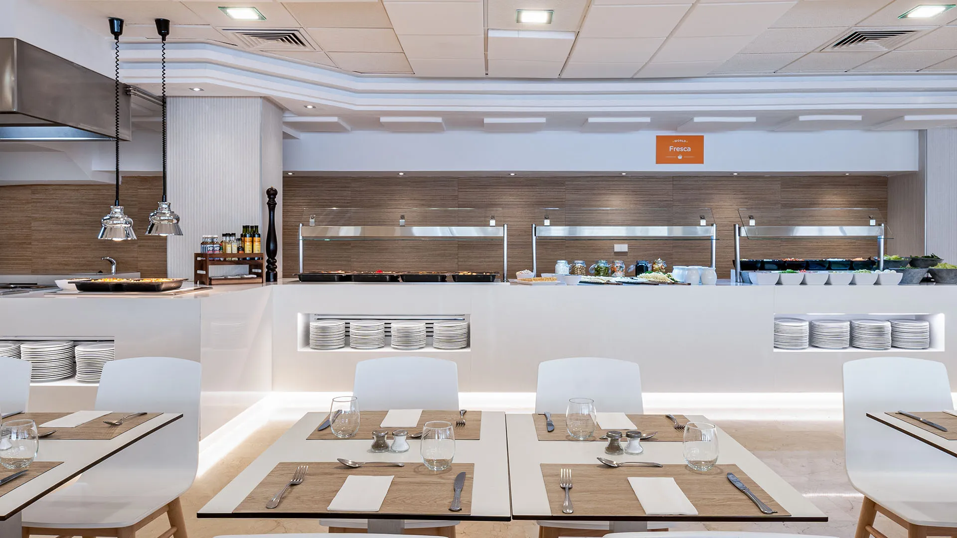 About 200 m from a beach is located the 4 star hotel Globales Santa Ponsa Park. The hotel is equipped with a 24h reception, Wi-Fi, 2 lifts as well as a TV lounge with satellite TV. In the outdoor area of the property you will find a seasonally heated pool, where sun loungers and sun umbrellas are available for free. There is also a children's pool. Furthermore, you can relax outdoors on a terrace. For the young hotel guests there is a playground. There is also a laundry service available at an additional cost to customers. If necessary, you can contact the medical centre (for a fee). The energy supply is 220 Volts. For conventions and other business meetings, the hotel offers a conference area. If you want to explore the holiday region, you can use the car rental service close to the hotel (extra fee). Euro/Master Card and Visa are accepted as means of payment. Due to its barrier-free facilities the hotel is also suitable for wheelchair users. Catering Breakfast is offered from the buffet. Lunch and dinner are also served from the buffet. For the meals, there are a buffet restaurant and the pool bar. Distances