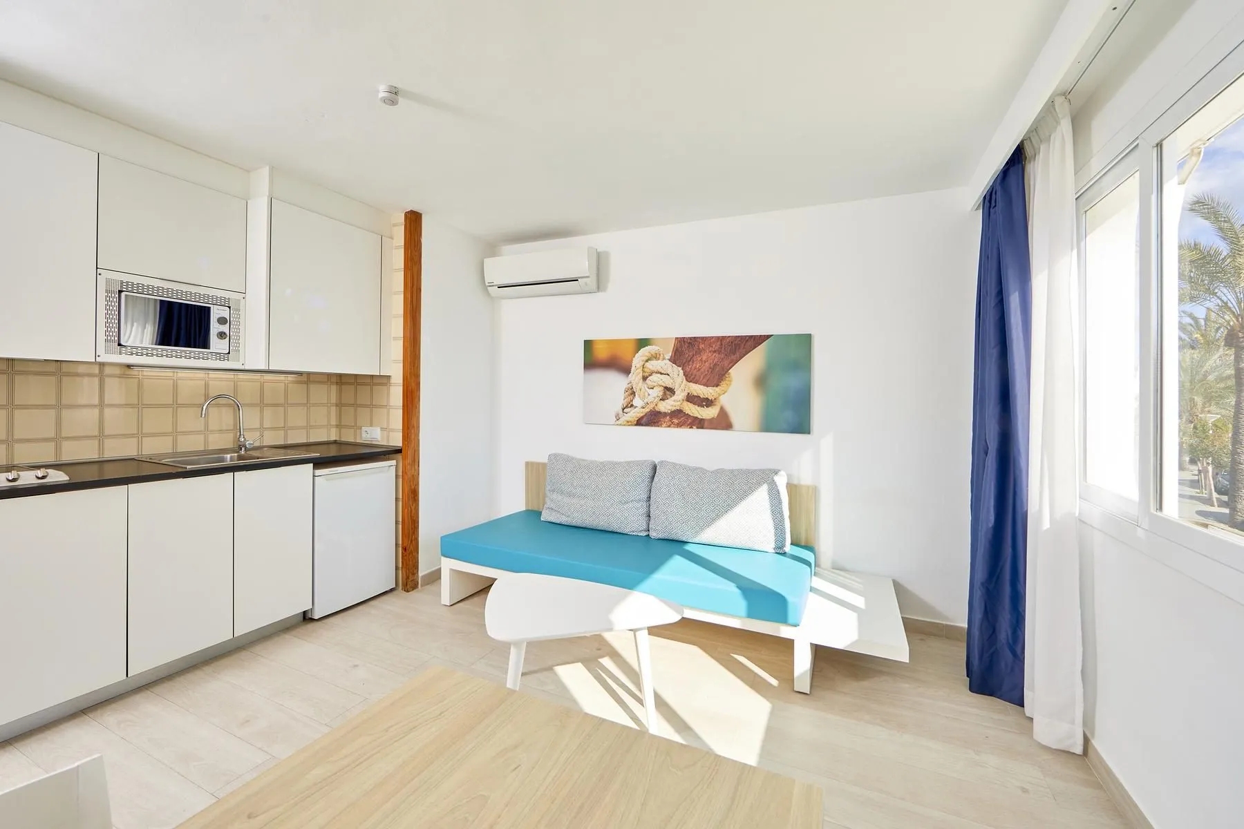 Descriere generală Hotelul Sun Beach Hotel este situat direct pe o plajă cu nisip. Pe plajă sunt disponibile umbrele de soare și șezlonguri la un cost suplimentar. Orașul PALMA este la aprox. 21 km. Cele mai apropiate magazine sunt chiar lângă hotel, și veți găsi un supermarket la cca. 100 m. Există posibilitatea de a închiria mașini și motociclete. De asemenea, aveți în apropiere o stație de autobuz (cca. 20 m) și o stație de taxi (direct la hotel) cea ce vă garantează mobilitatea pe insulă. Pentru îngrijiri medicale în caz de urgență, există un spital la cca. 21 km distanță. Aeroportul (PMI) se află la aprox. 30 km. Facilități Hotelul familiar dispune de 9 etaje și peste 106 camere repartizate între o clădire principală și de 2 clădiri secundare. Acesta oferă oaspeților săi recepție (check-in de la 15:00, check out până la 12:00), lobby cu bar, un total de 4 lifturi, aer condiționat, seif (contra cost), parcare (gratuită), sistem securizat de intrare și birou de schimb valutar. Accesul la internet WiFi este disponibil gratuit pentru oaspeții hotelului. Pentru oaspeții care depind de un scaun cu rotile, hotelul oferă acces fără bariere. Serviciul de menaj, călcat și serviciul de concierge sunt gratuite. Spălătorie este contra cost. Piscină Zona exterioară a hotelului decorat în stil mediteranean include o piscină cu apă dulce (deschisă din iunie până în septembrie). Acolo sunt disponibile gratuit șezlonguri și umbrele de soare. Un bar lângă piscină oferă oaspeților băuturi răcoritoare (deschis între orele 10:00 - 18:00). Sport/Leisure Oferte pentru sport și divertisment: Tenis (posibil contra cost, la cca. 300 m distanță). La cca. 40 m de hotel, sunt oferite sporturi nautice (unele de către furnizori locali). La cca. 4 km de hotel este un teren de golf. Există serviciu de închiriere de biciclete. Informații suplimentare Pentru anumite facilități sau activități se pot aplica taxe suplimentare. Unele servicii depind de anotimp și de condițiile climatice locale. Limbi de serviciu: engleză și olandeză. Carduri de credit: Euro/MasterCard și Visa. 1 Schlafzimmer Apartment (Meerblick, Balkon oder Terrasse): Camerele moderne cu living sunt echipate cu pat single, o canapea extensibilă ca pat suplimentar, pat pentru bebeluși (contra cost), pardoseală cu gresie, chicinetă, încălzire controlată centralizat, ceainic (gratuit), balcon sau terasă, acces la internet (gratuit), seif (contra cost), TV prin satelit și canale locale precum și aer condiționat controlat central (din mai până în septembrie). Baie cu duș. Prosoapele se schimbă de 3 ori pe săptămână, lenjeria de pat de 2 ori pe săptămână. 1 Schlafzimmer Standard Apartment (Balkon oder Terrasse): Camerele moderne cu living sunt echipate cu pat single, o canapea extensibilă ca pat suplimentar, pat pentru bebeluși (contra cost), pardoseală cu gresie, chicinetă, încălzire controlată centralizat, ceainic (gratuit), balcon sau terasă, acces la internet (gratuit), seif (contra cost), TV prin satelit și canale locale precum și aer condiționat controlat central (din mai până în septembrie). Baie cu duș. Prosoapele se schimbă de 3 ori pe săptămână, lenjeria de pat de 2 ori pe săptămână.