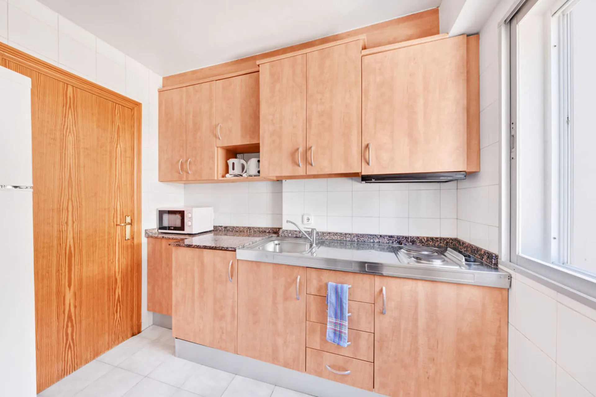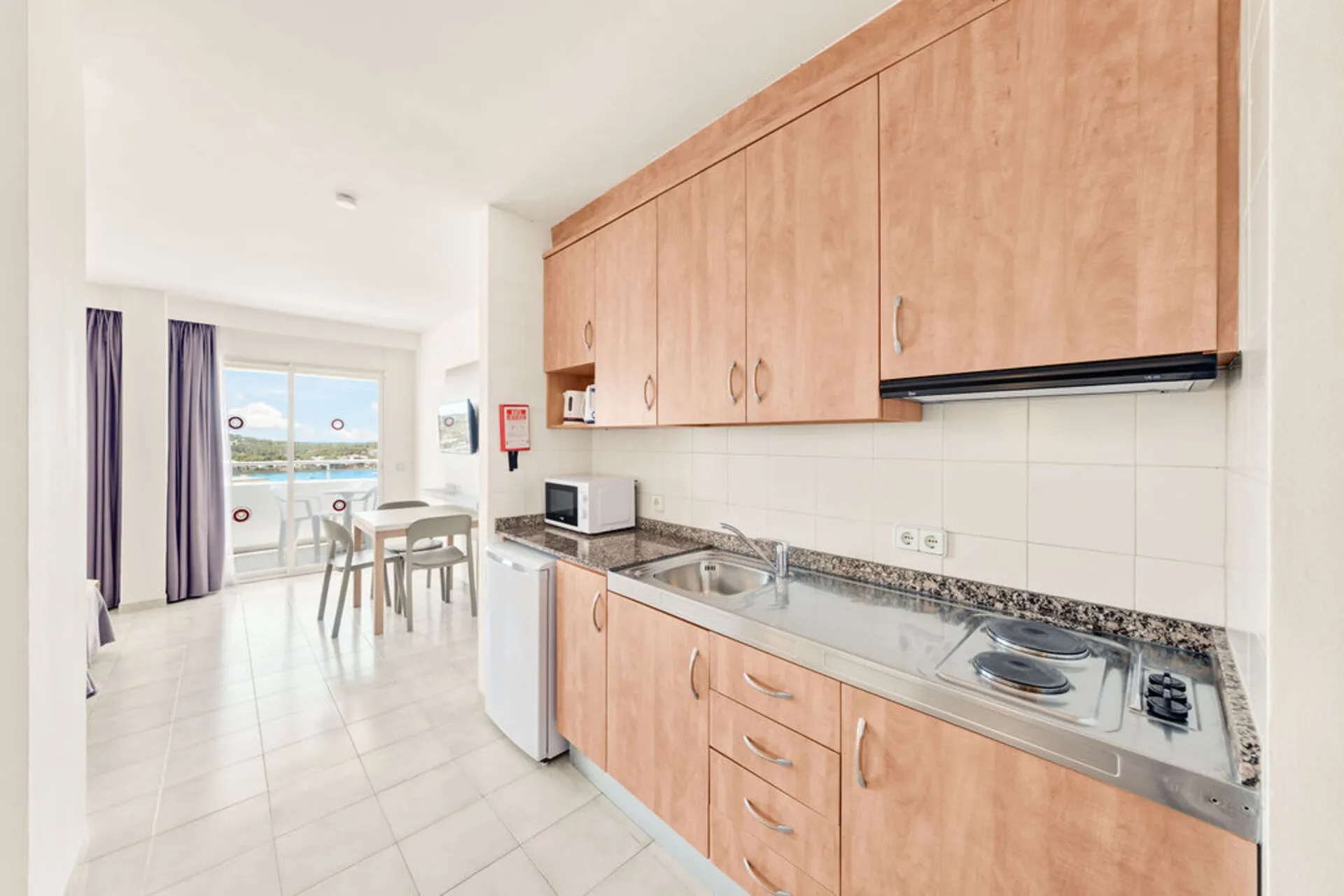 The apart hotel APARTAMENTOS VISTA CLUB is located approximately 300 m from a public sandy/rocky/stone beach. The nearest restaurants and bars can be found within 100 m. The city centre is only around 200 m away. A supermarket and other shops you also reach after approximately 100 m. There is a shuttle between the hotel and the airport (for a fee). Nearby there is a disco which offers entertainment in high season. The beach is patrolled by a lifeguard and awarded a blue flag, pets are allowed. Here, there are cushions for a fee available. Cold drinks are served at the bar on the beach. There is also a promenade here where you can go for a stroll. To reach the beach a shuttle is provided. The air-conditioned, GPS-verified hotel has a 24h reception (check-in is possible around the clock), a lobby, Wi-Fi, an internet corner, a lift, showers and changing rooms, a first aid kit as well as a TV lounge with satellite TV. In the outdoor area you will find a garden as well as a salt water pool that is open seasonally, where sun loungers and sun umbrellas are available for free. For children there is also a separate children's pool. Furthermore, outside you can find a sun terrace. You can store your valuables in the safe, and your luggage in the hotel`s storage room. In addition, the hotel APARTAMENTOS VISTA CLUB is video-monitored 24h a day. For very young guests, kid`s chairs, highchairs and cots can be provided. For the smallest children prams can be rented in the hotel. There is also an ironing service. For your comfort there is a concierge service. If necessary, you can contact the medical centre at any time. The energy supply is 220 and 240 Volts. If you want to explore the holiday region, you can use the car and motorbike rental service close to the hotel. At the reception, tickets are offered for excursions in the area. For guests on their honeymoon, the hotel has special offers such as champagne or sparkling wine in the room. In your hotel, a lot of focus is placed on sustainability. This includes a central room air-conditioning and environmentally-friendly cleaning. The hotel requires that all guests pay a deposit upon arrival. Euro/Master Card is accepted as means of payment. Catering As catering services the hotel offers self-catering. Breakfast is offered continental (extras on request). Enjoy your lunch as a set meal or à la carte. For the meals, there are a restaurant with terrace and the cafeteria as well as the pool bar. Distances
