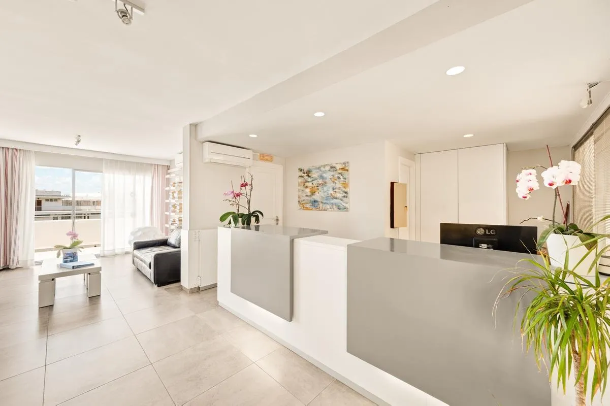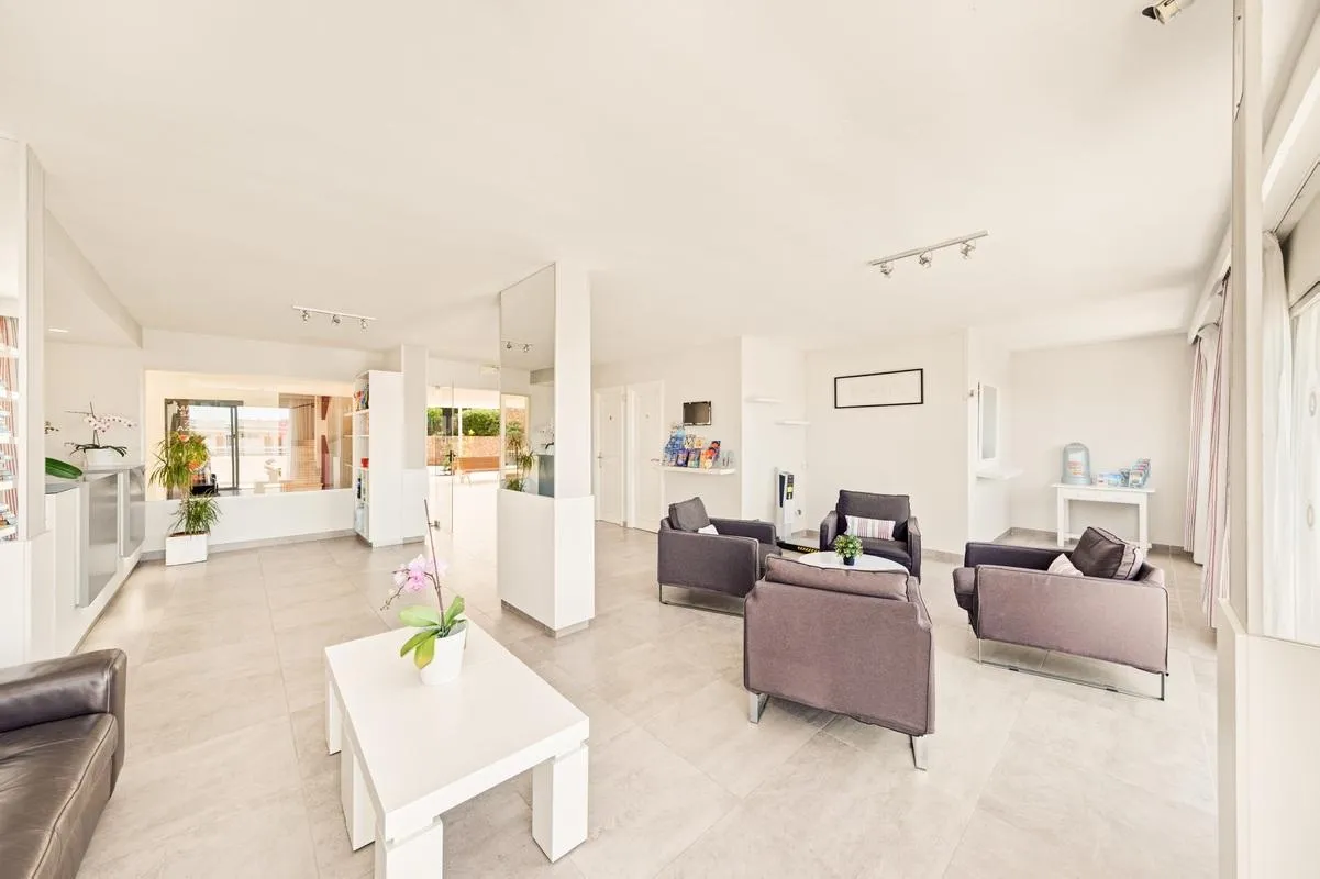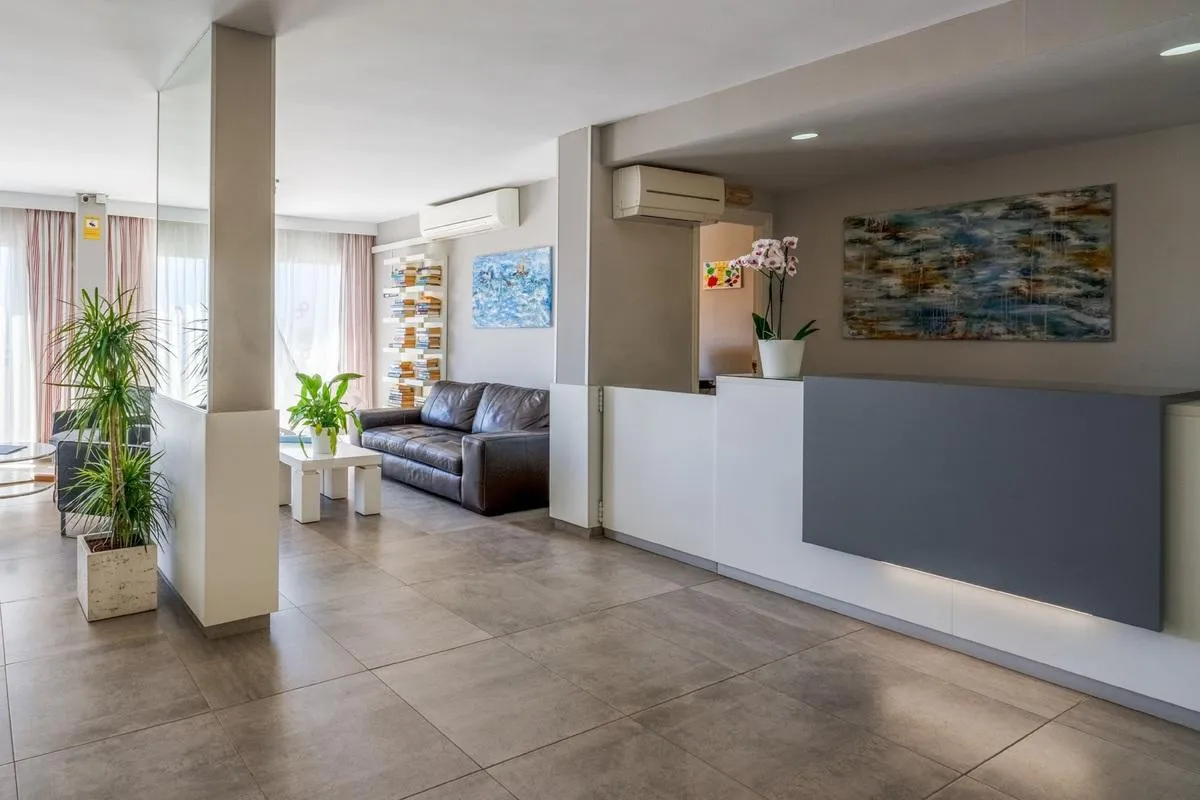 The 6-storey 2nd row beach hotel has 101 rooms in total. It offers its guests a 24h reception (check-in from 14:00, check-out until 12:00), 6 lifts, air conditioning, a safe (for a fee) and a money changing facility. For the meals, there is a snack bar. You will be warmly welcomed in both the hotel’s bars. WiFi is available for free. Room cleaning is free of charge. Medical service is available for a fee. Pool: In the outdoor area of the mediterranean-style hotel you will find 2 pools (open from June to September). Here, there are sun loungers for a fee as well as sun umbrellas for free available. A bar at the pool offers guests refreshing beverages.